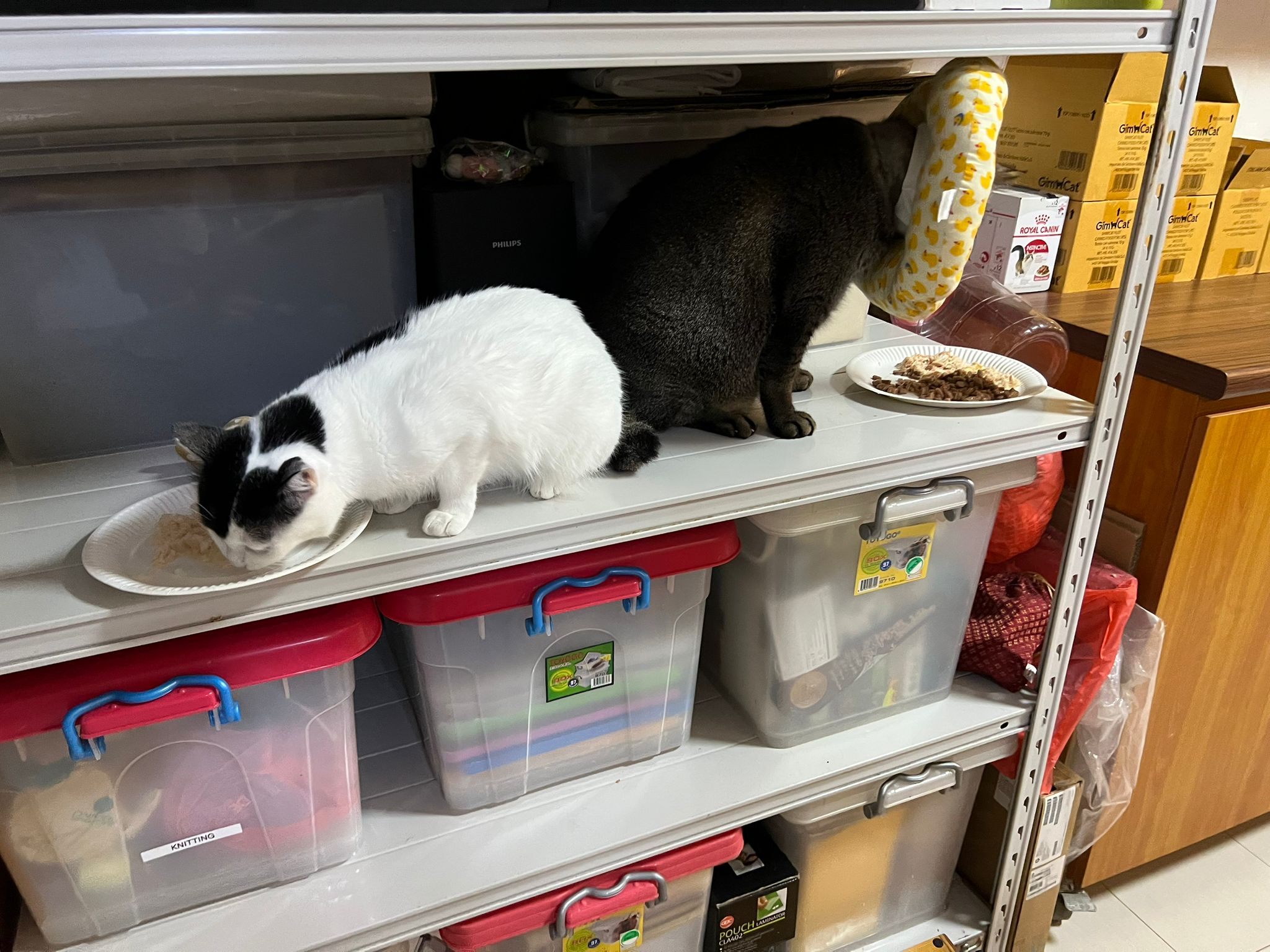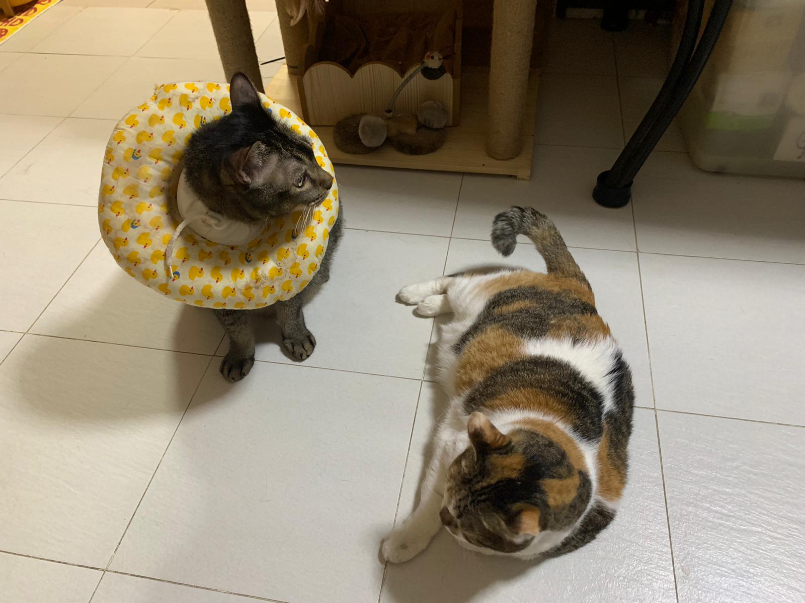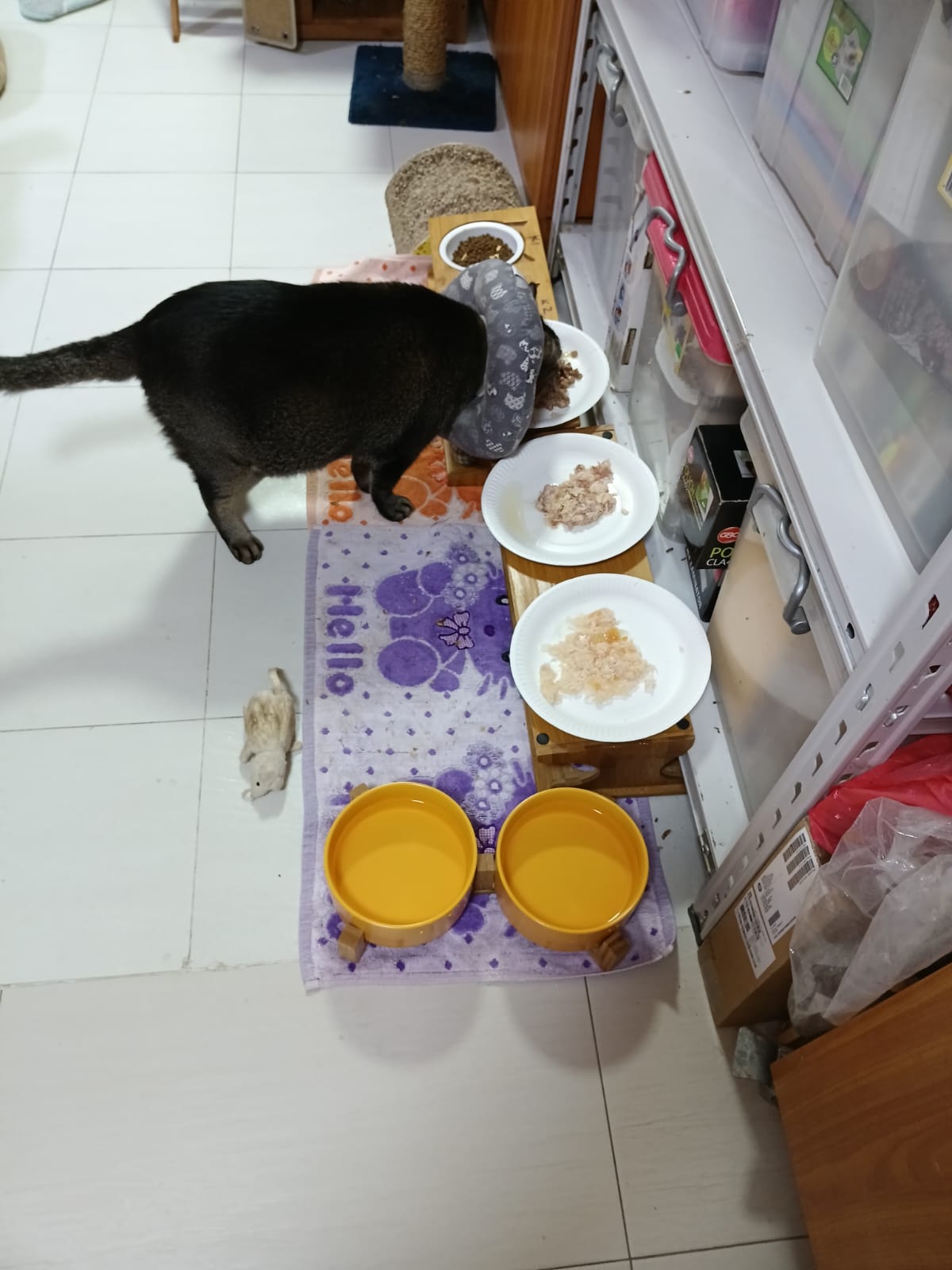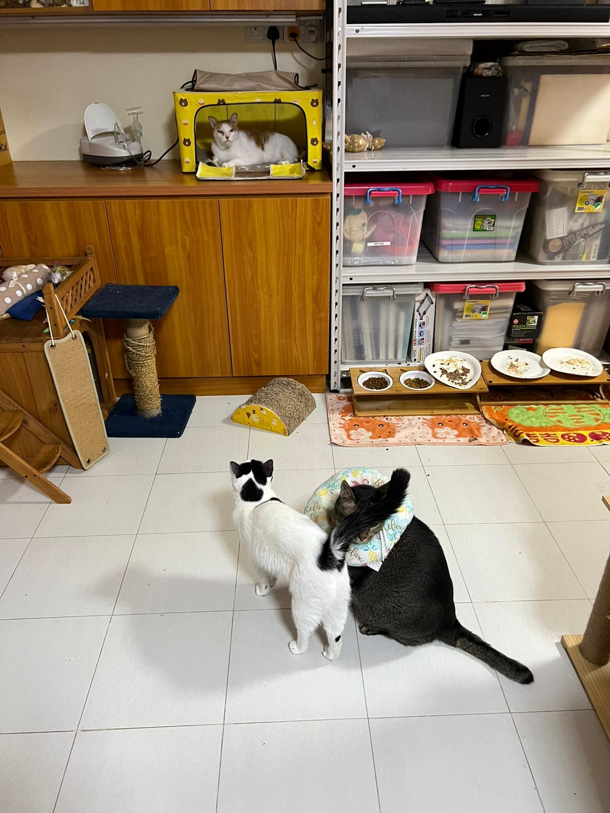9.00am: I enter 猫房 and both joy and rufus right there. But they Waited for me to throw plates. Scoop poo n I go into 猫房 take new plates n they stare at me, so long then serve food.