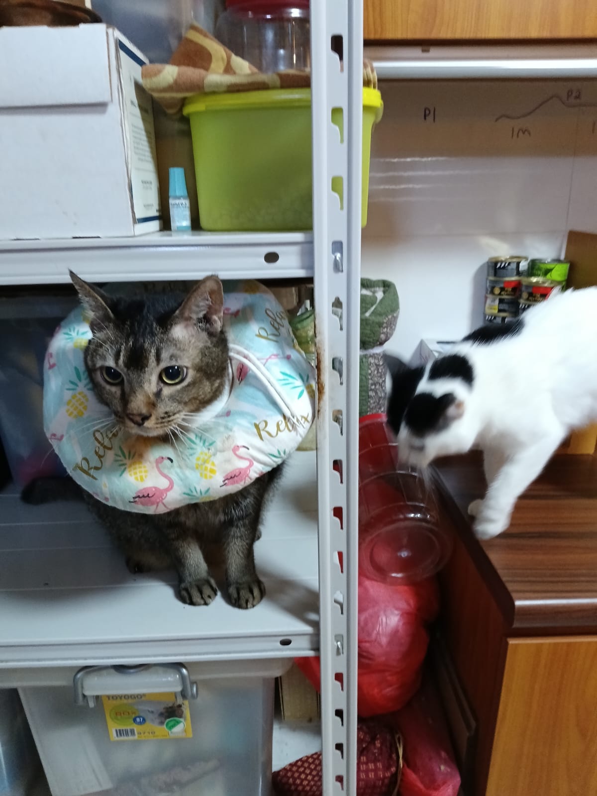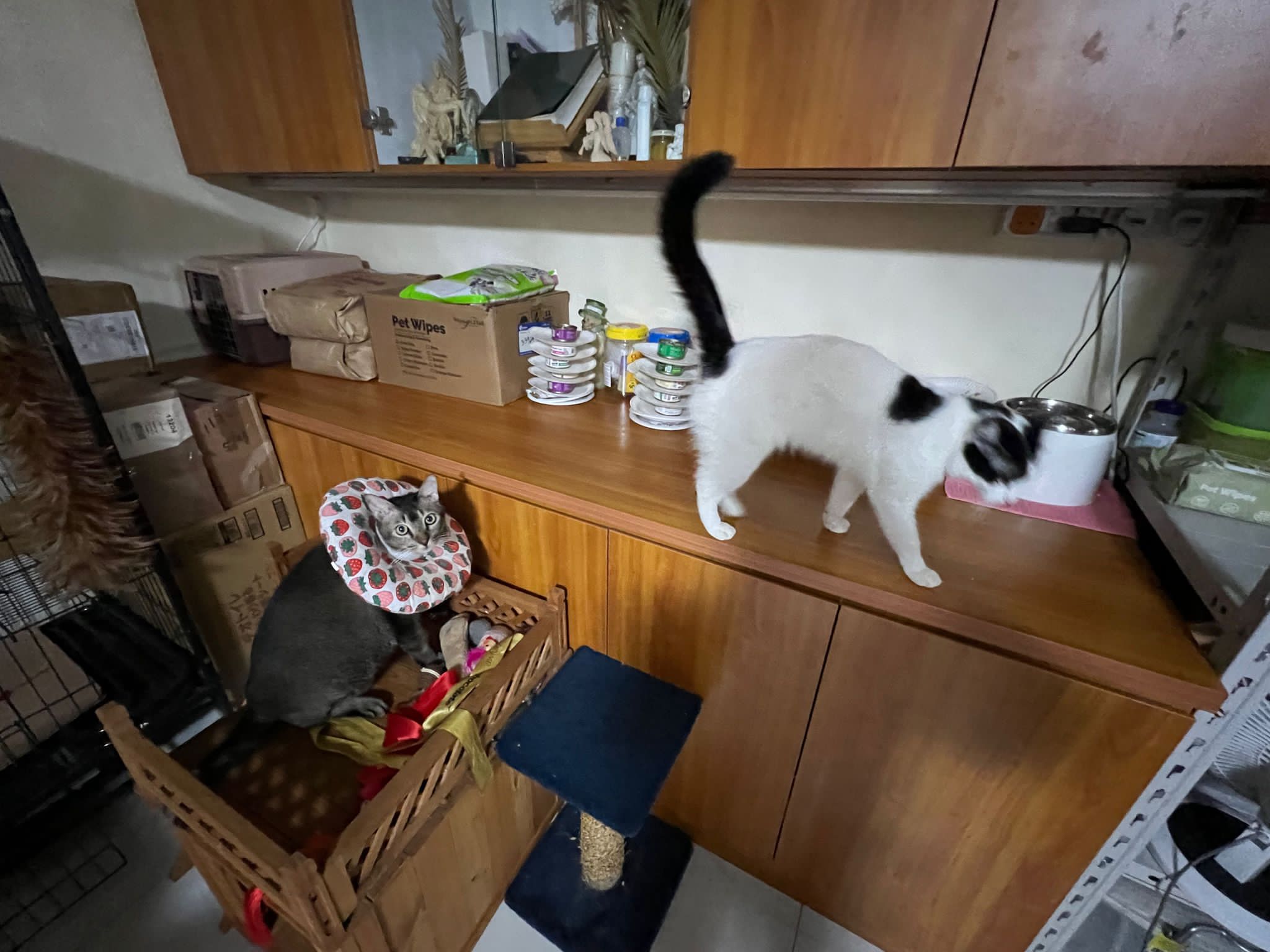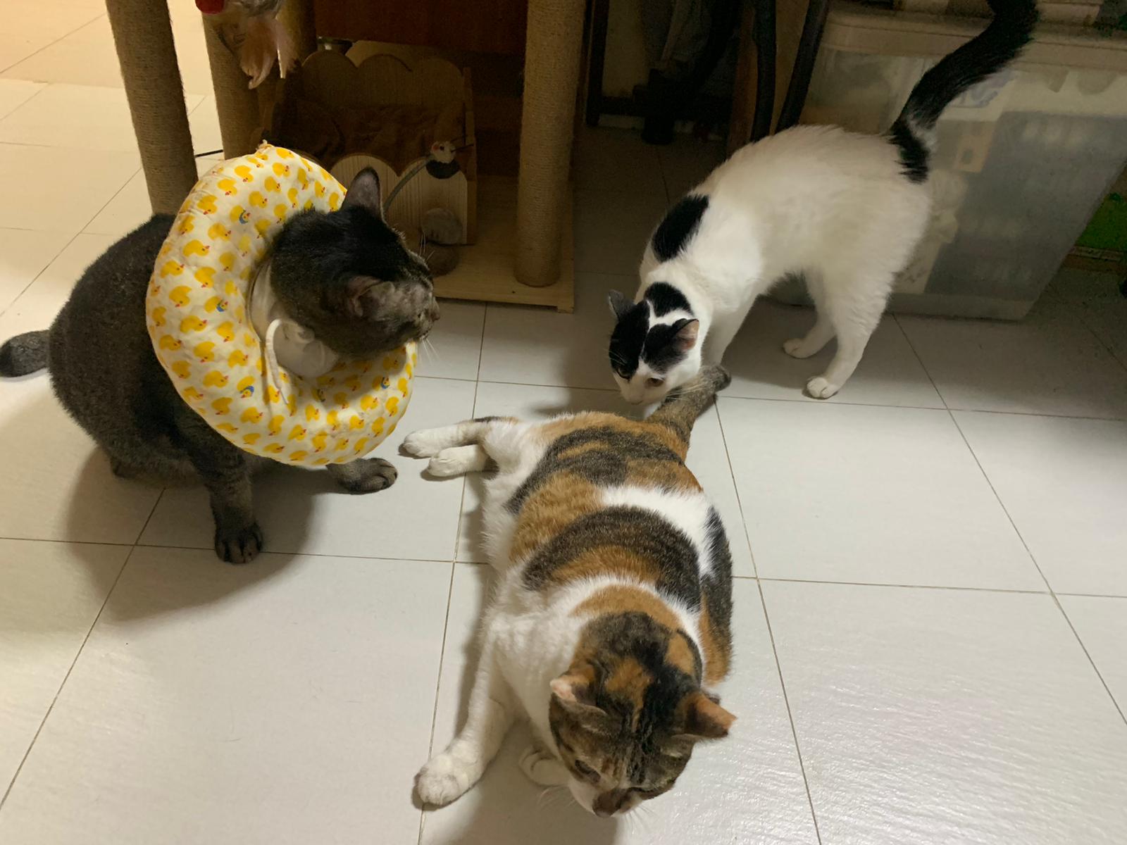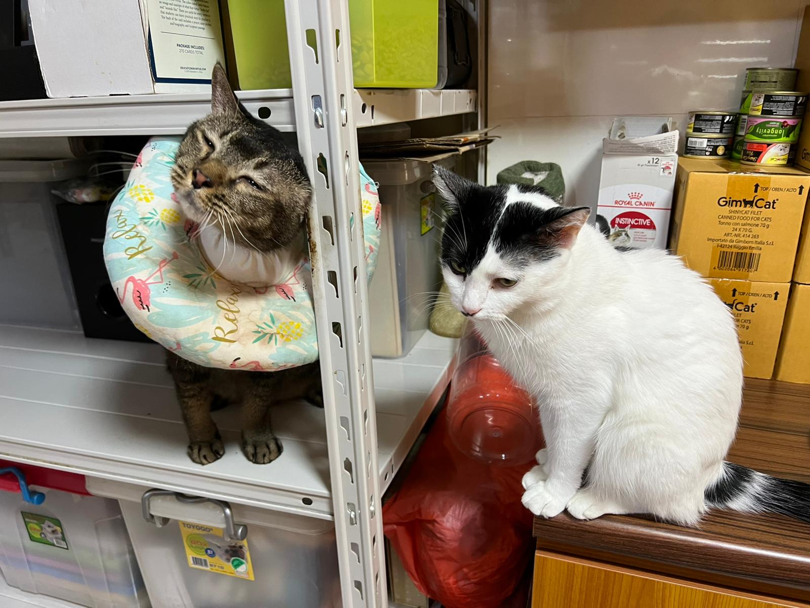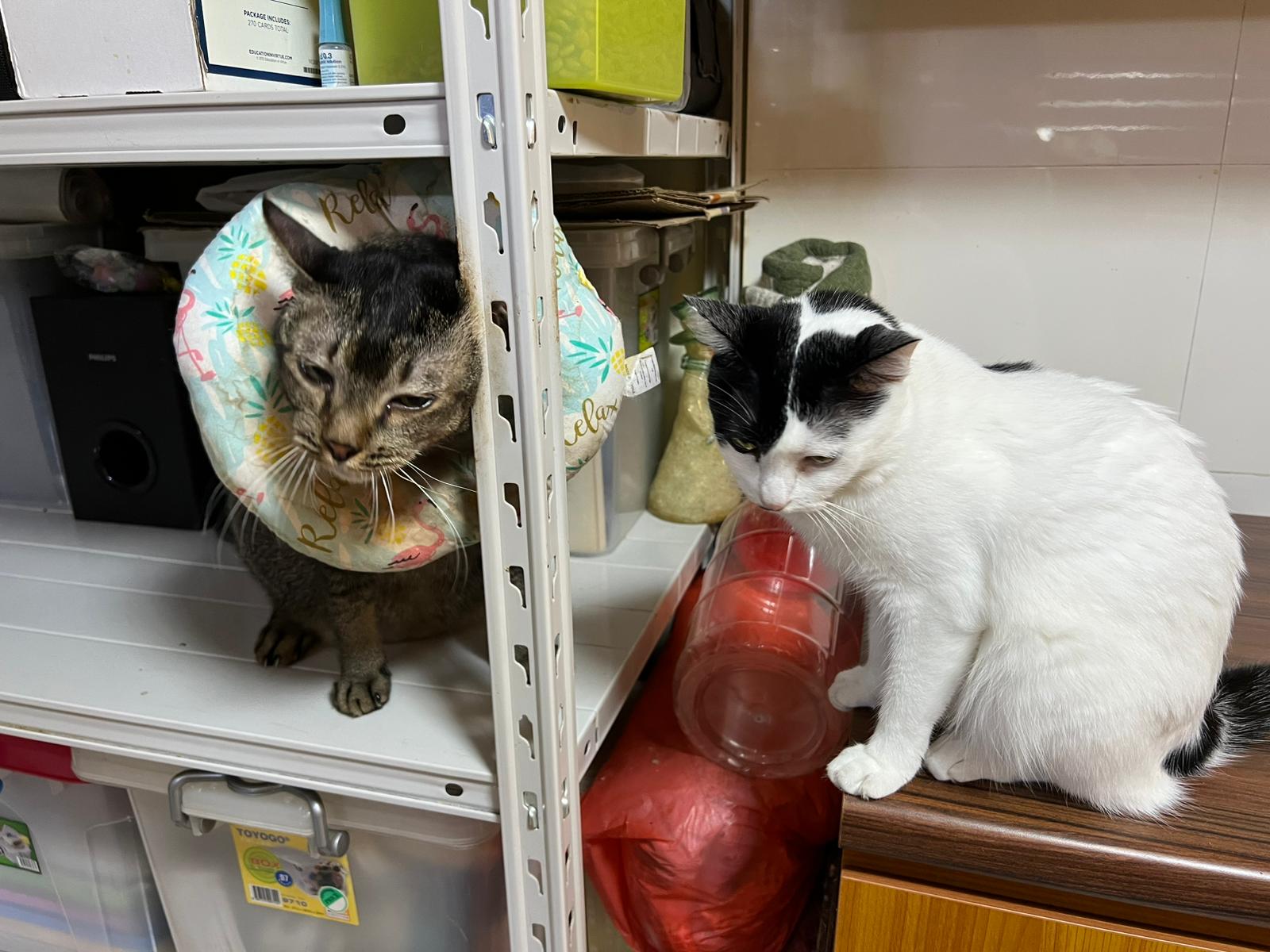 9.00am: I enter 猫房 and both joy and rufus right there. But they Waited for me to throw plates. Scoop poo n I go into 猫房 take new plates n they stare at me, so long then serve food.