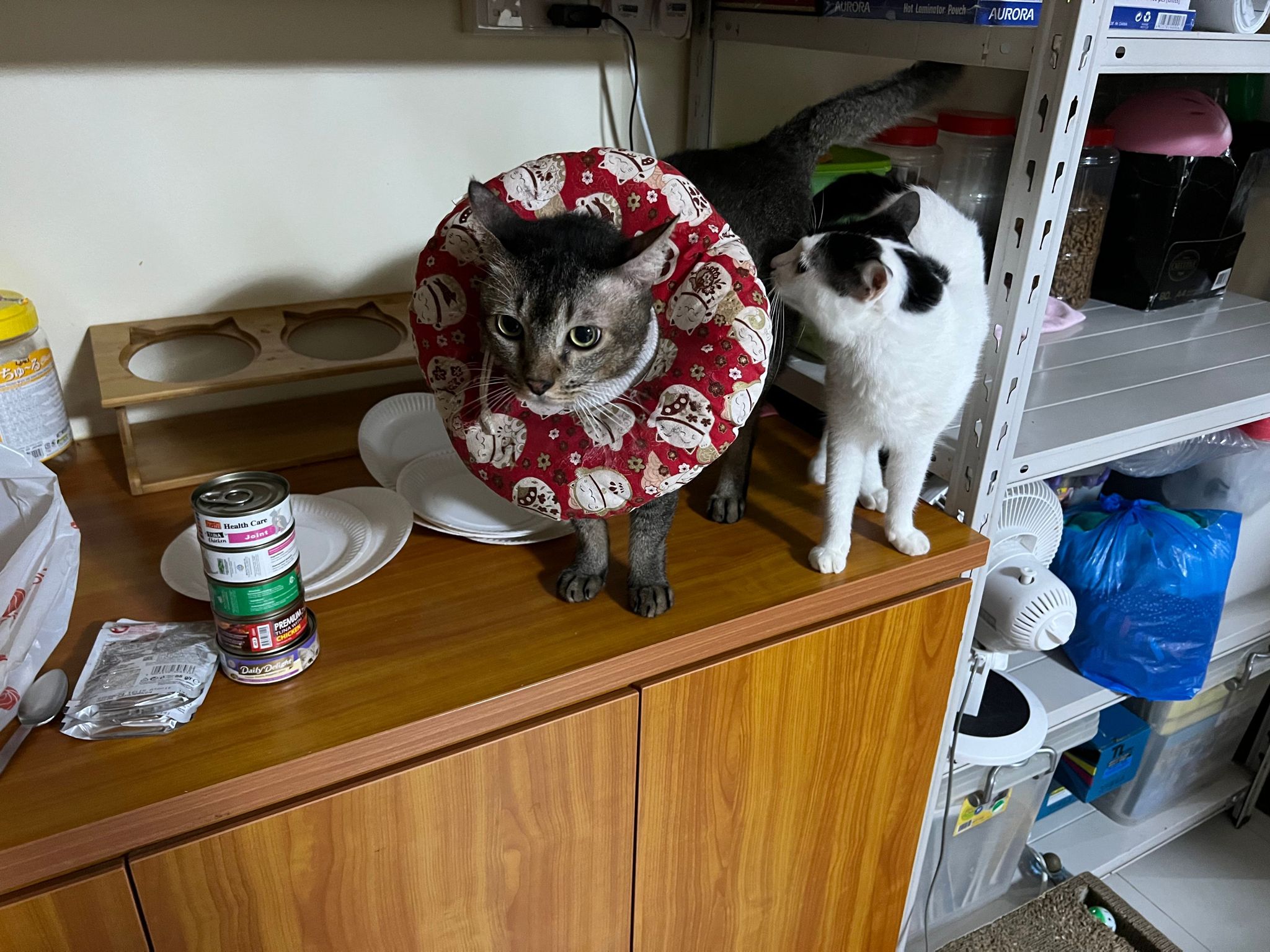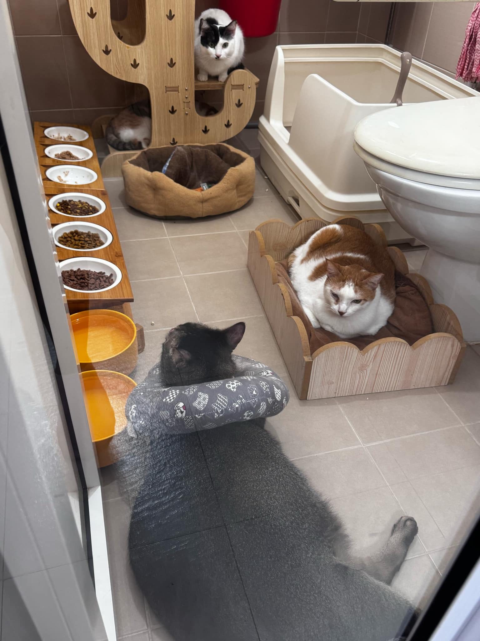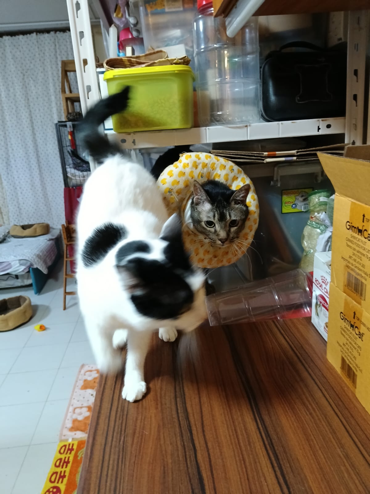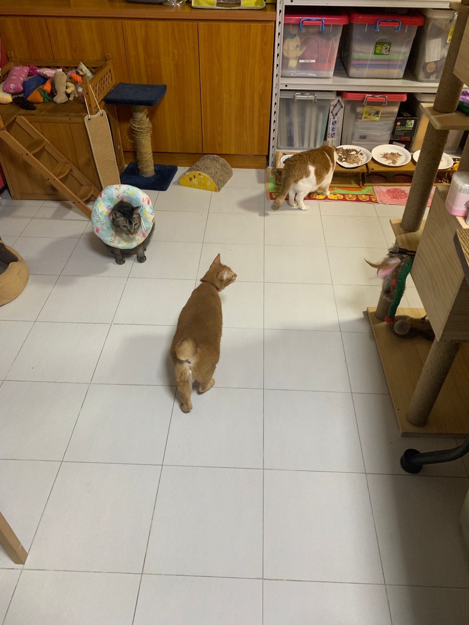 9.00am: I enter 猫房 and both joy and rufus right there. But they Waited for me to throw plates. Scoop poo n I go into 猫房 take new plates n they stare at me, so long then serve food.