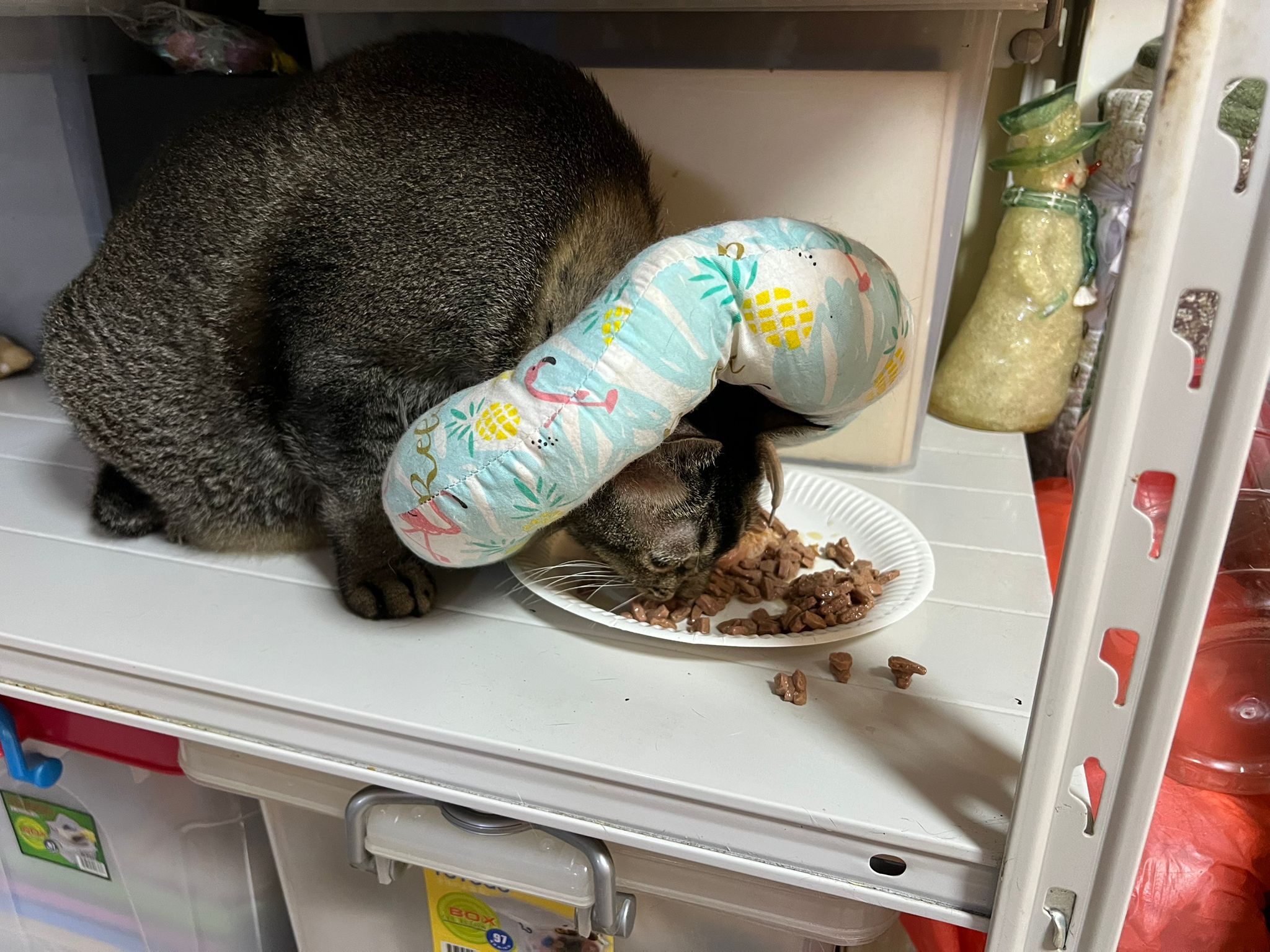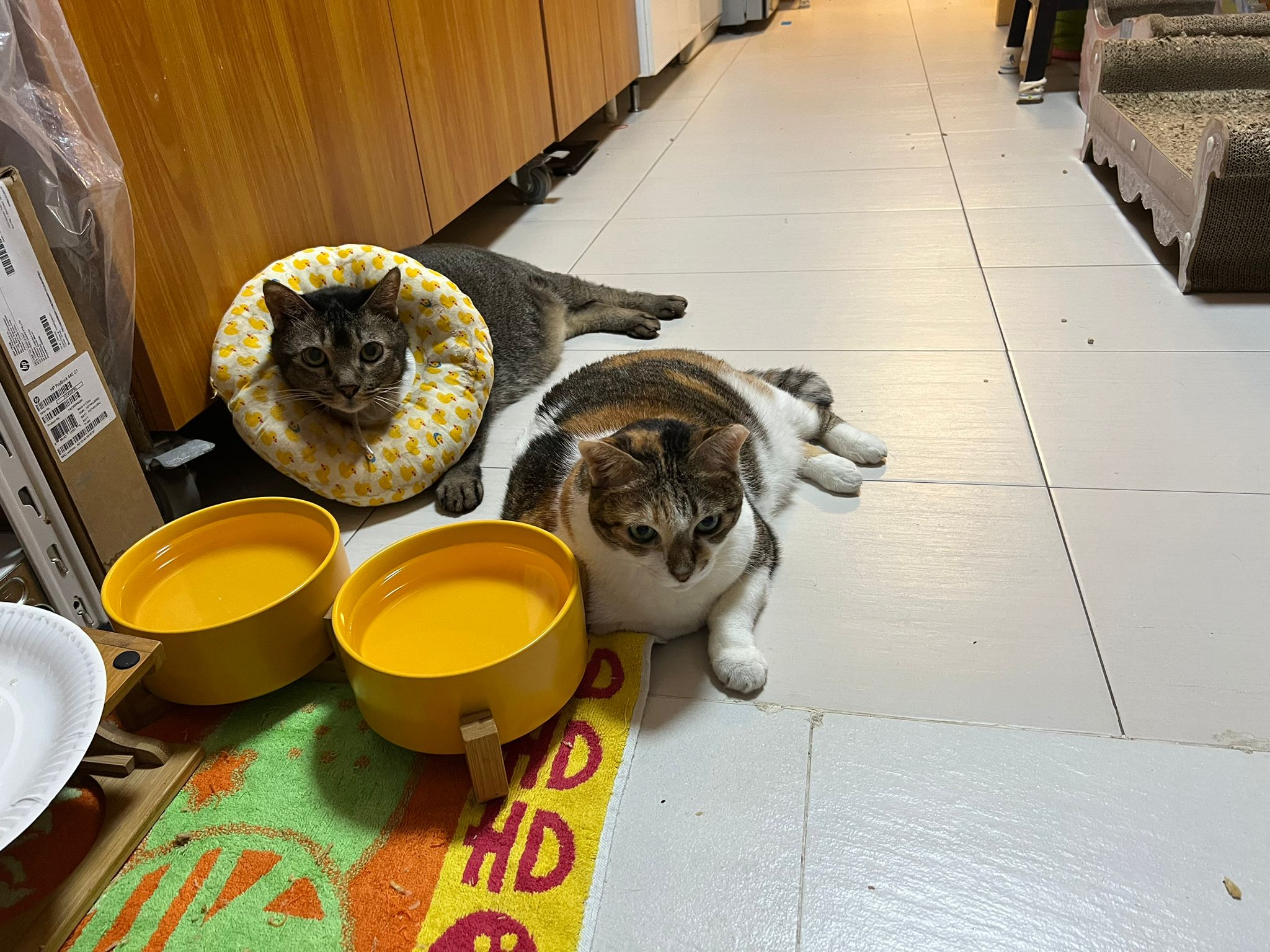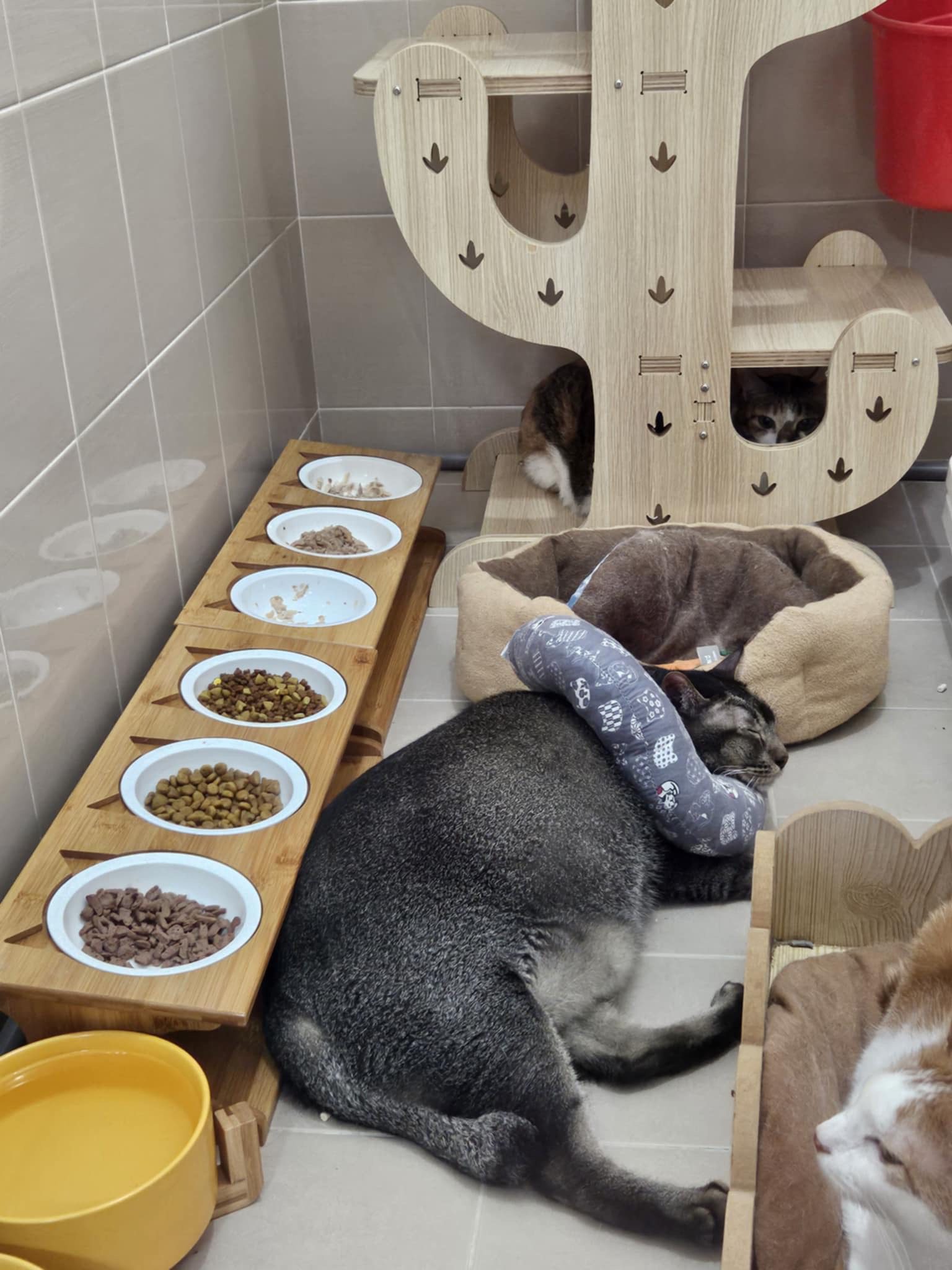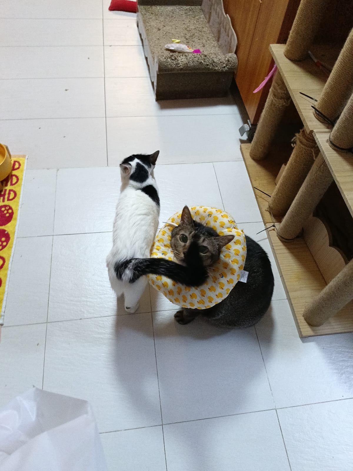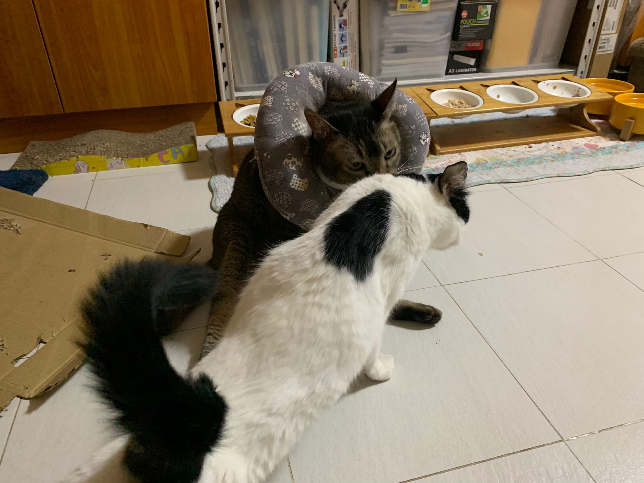 9.00am: I enter 猫房 and both joy and rufus right there. But they Waited for me to throw plates. Scoop poo n I go into 猫房 take new plates n they stare at me, so long then serve food.