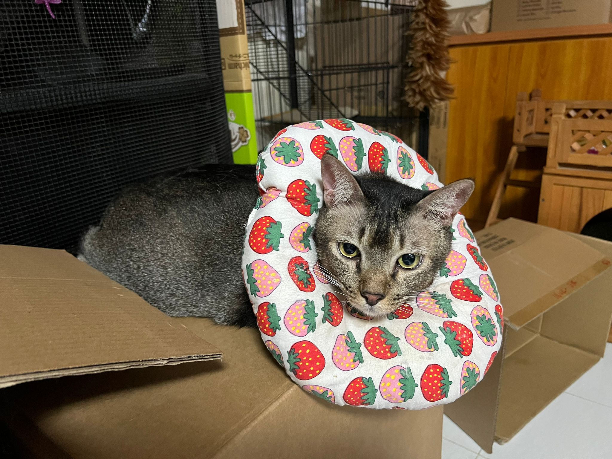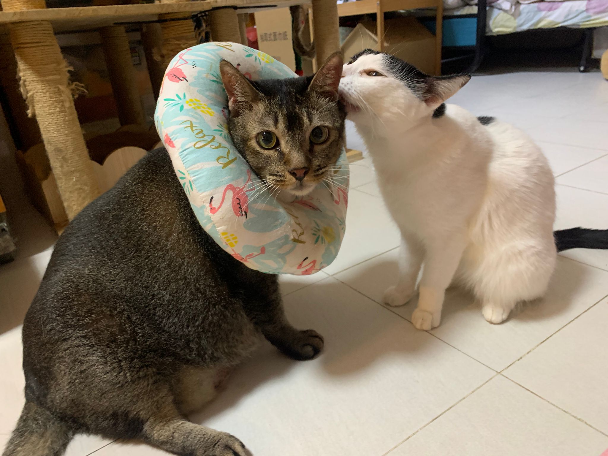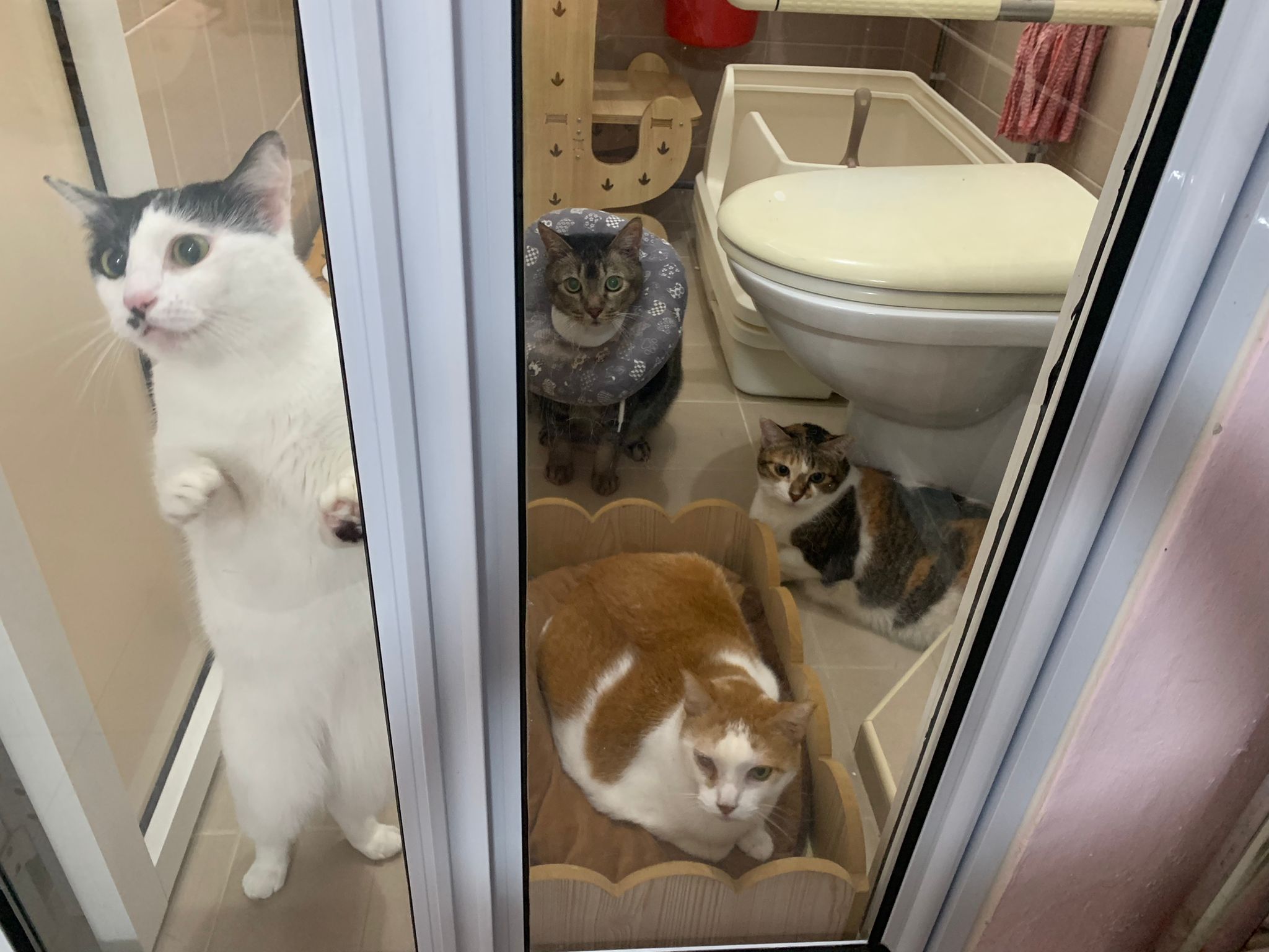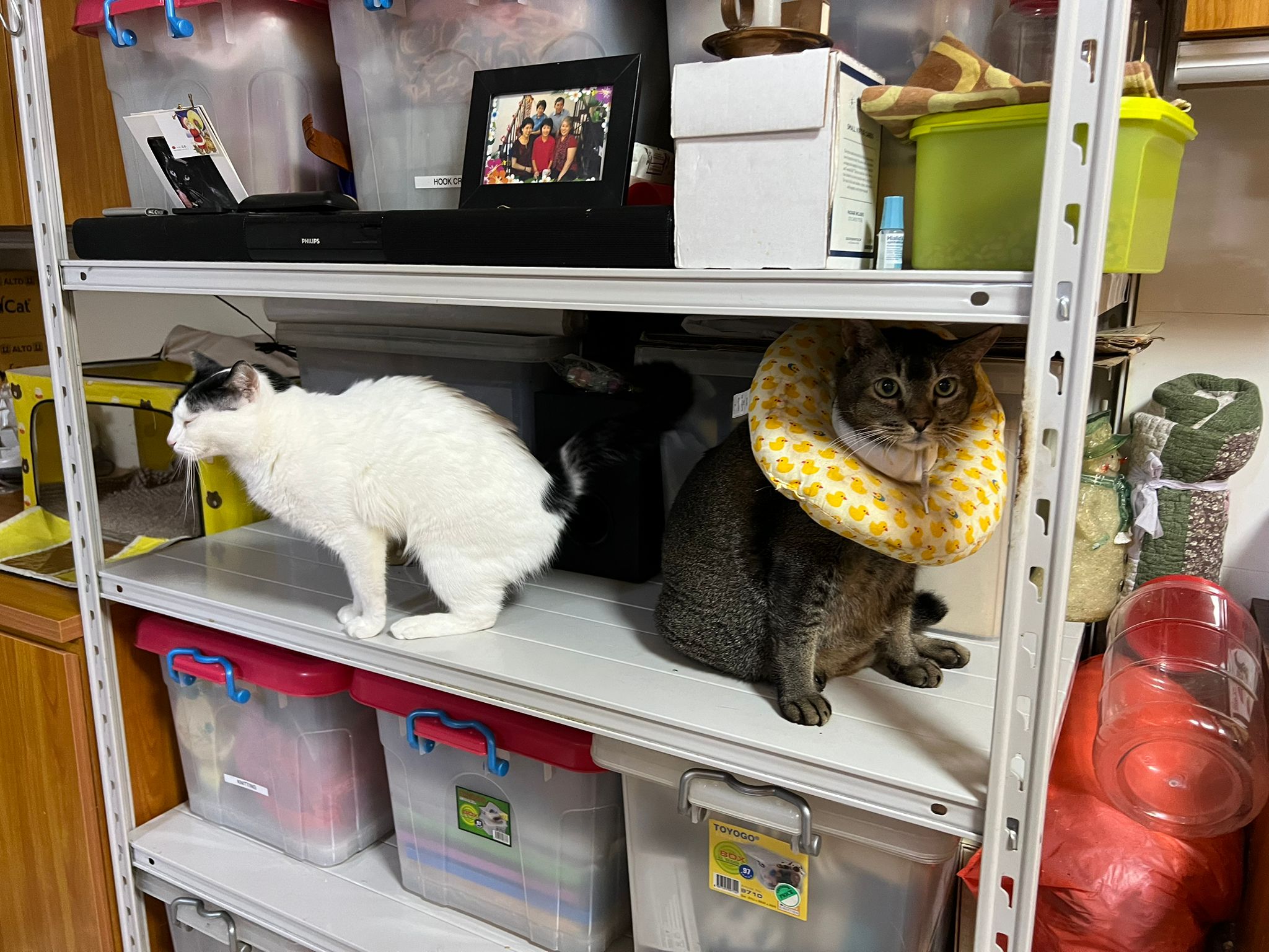 9.00am: I enter 猫房 and both joy and rufus right there. But they Waited for me to throw plates. Scoop poo n I go into 猫房 take new plates n they stare at me, so long then serve food.