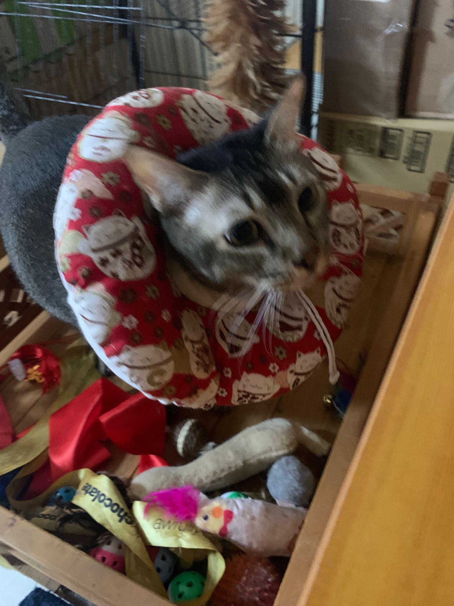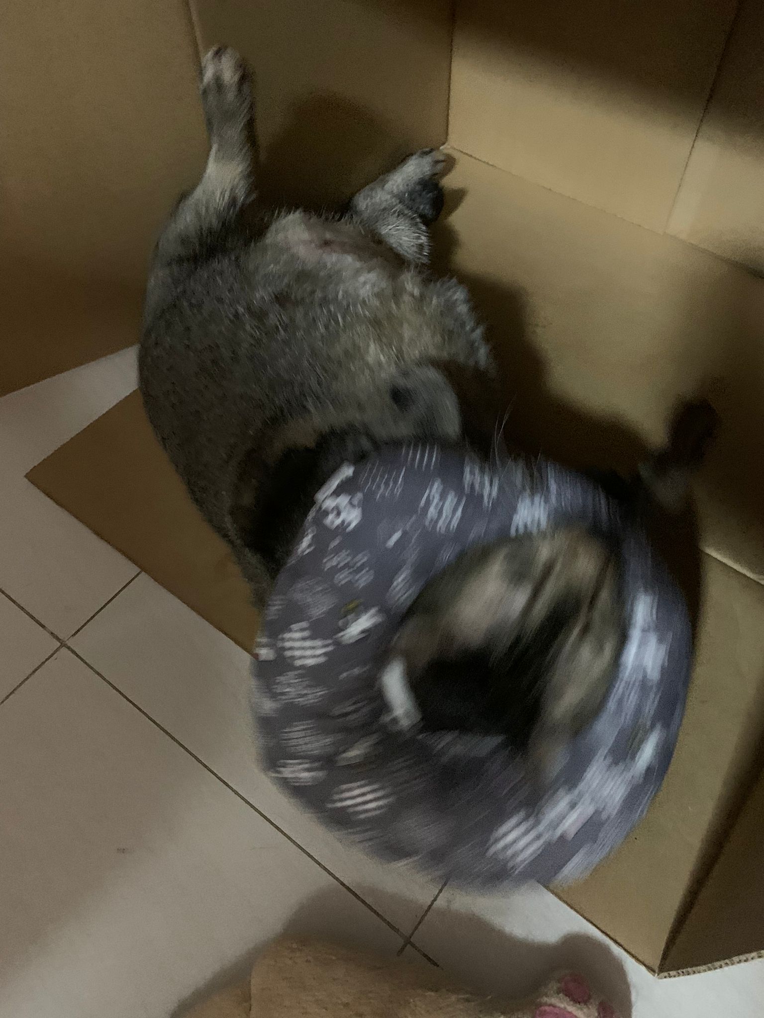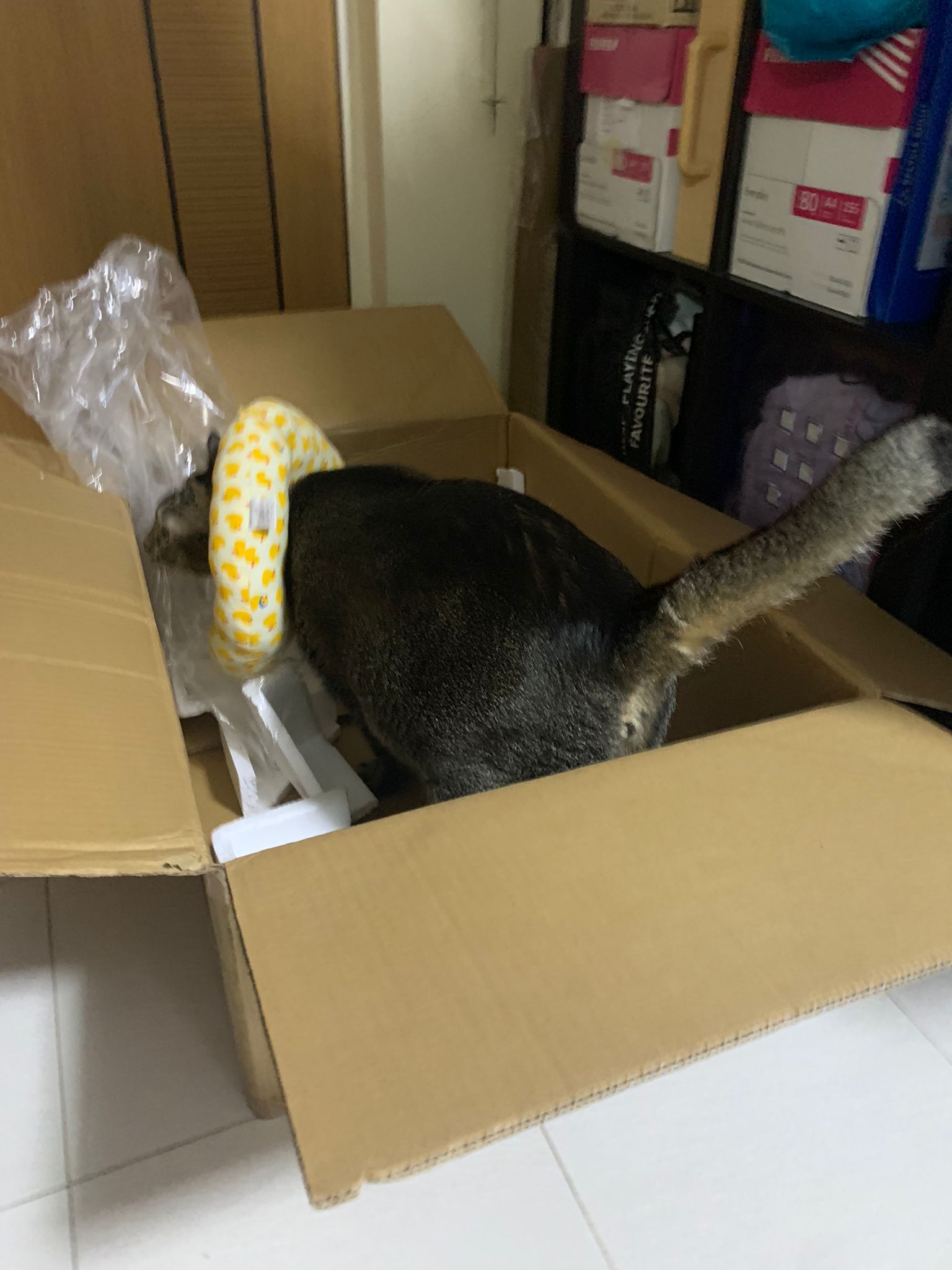 Morning: I’m packing all 猫房 barang n he come when there is a big box. Ha let him play, mama accompany me fr afar. The way rufus get ready to hop in like it’s a ball pit.