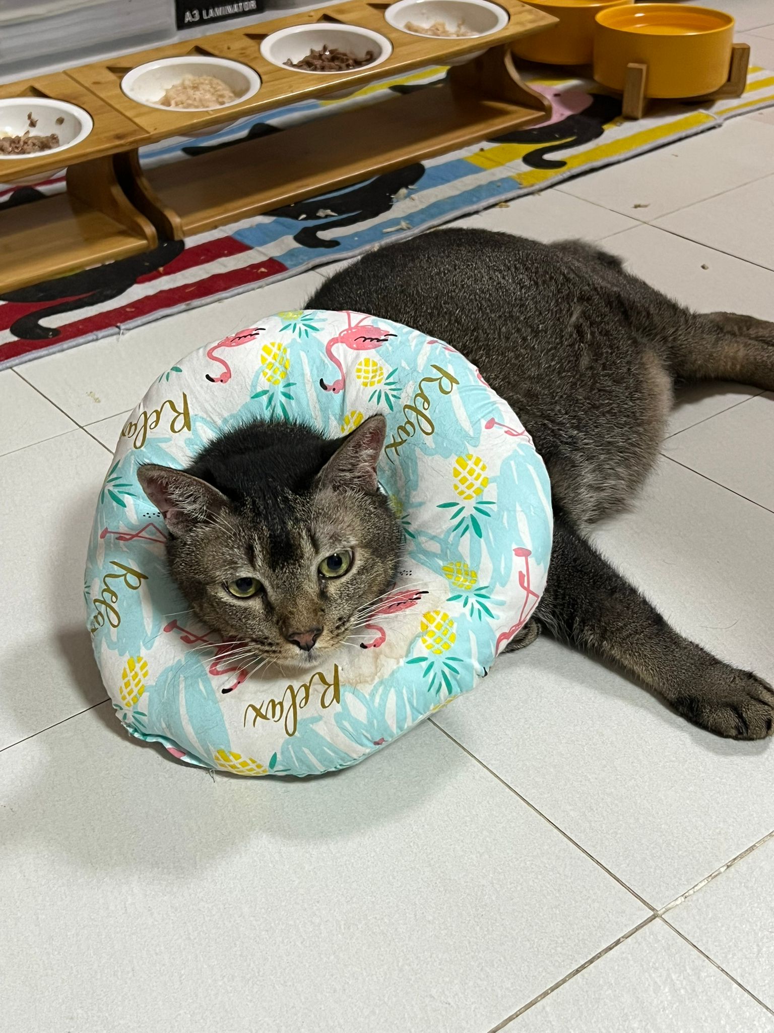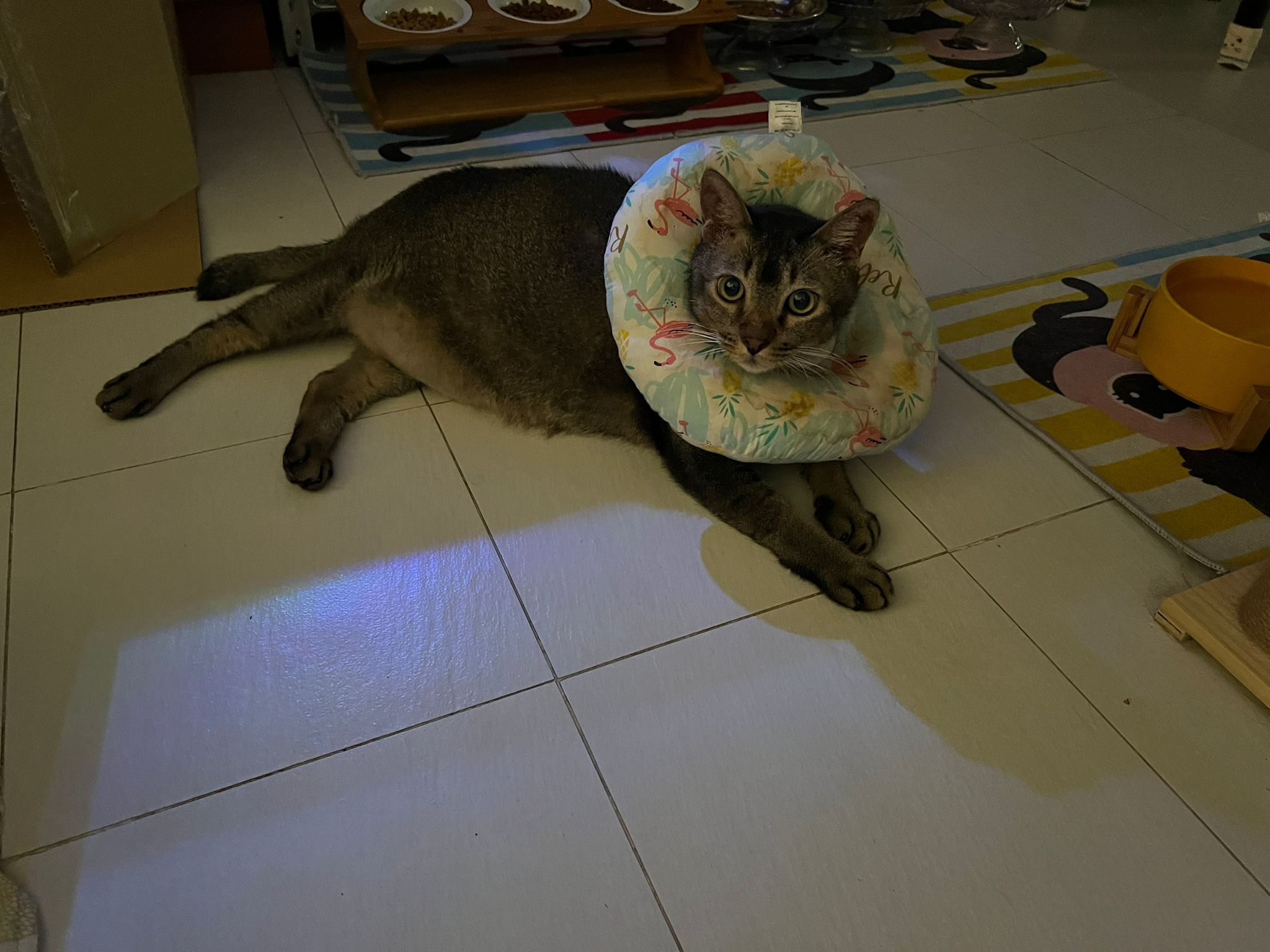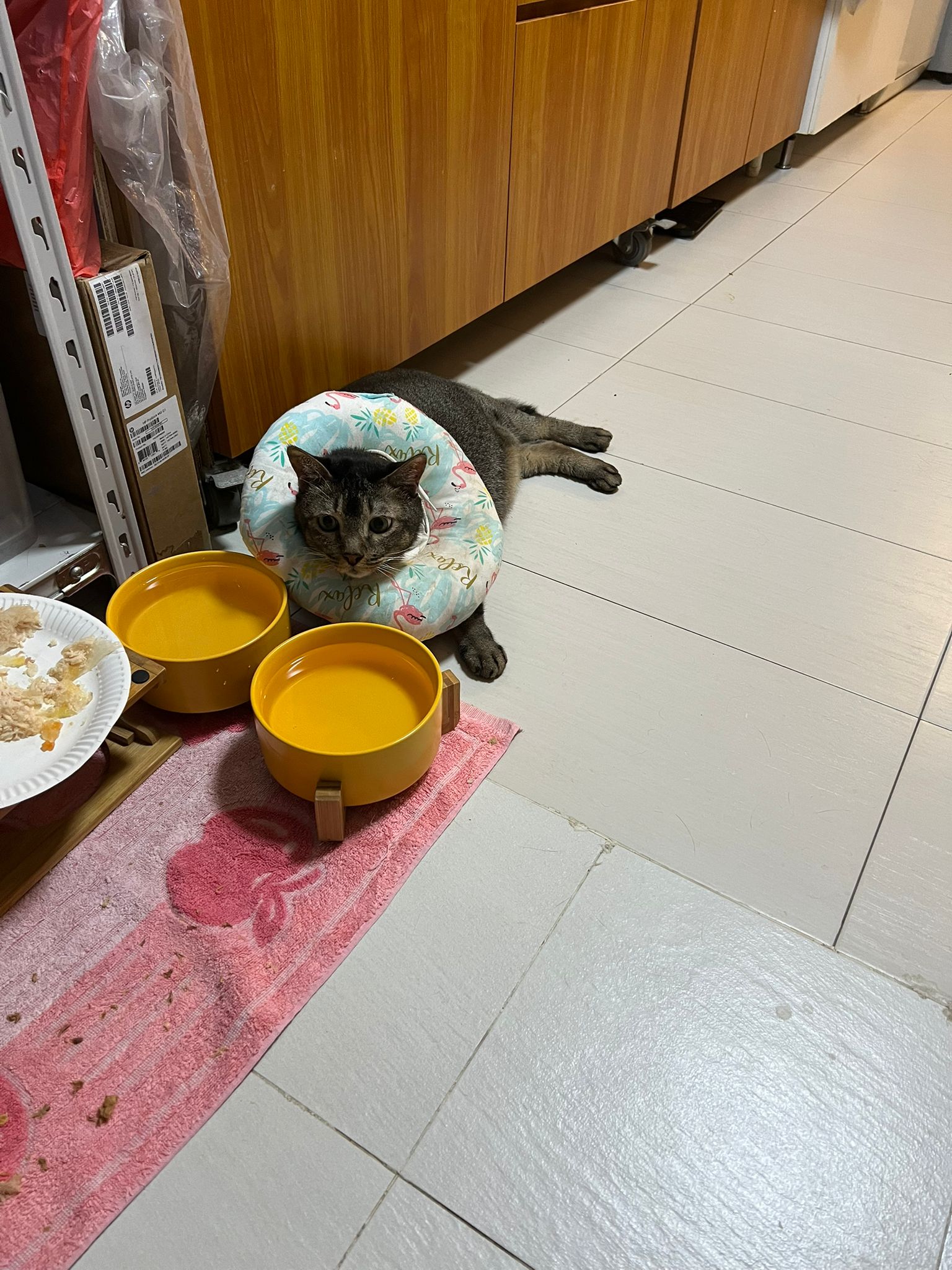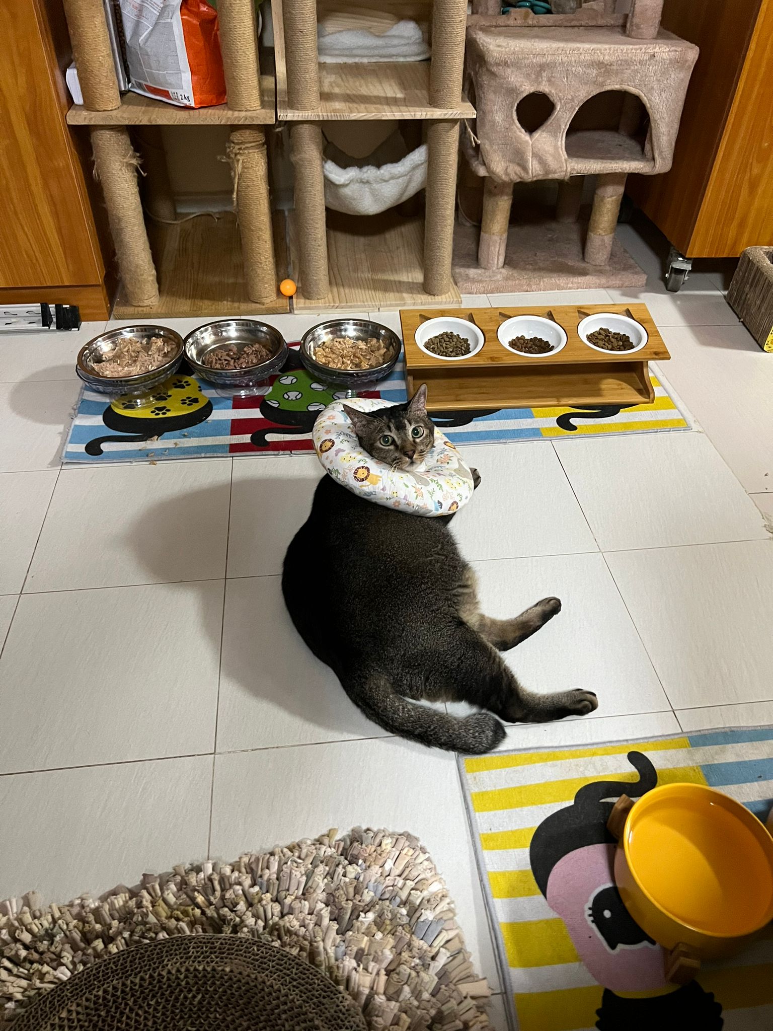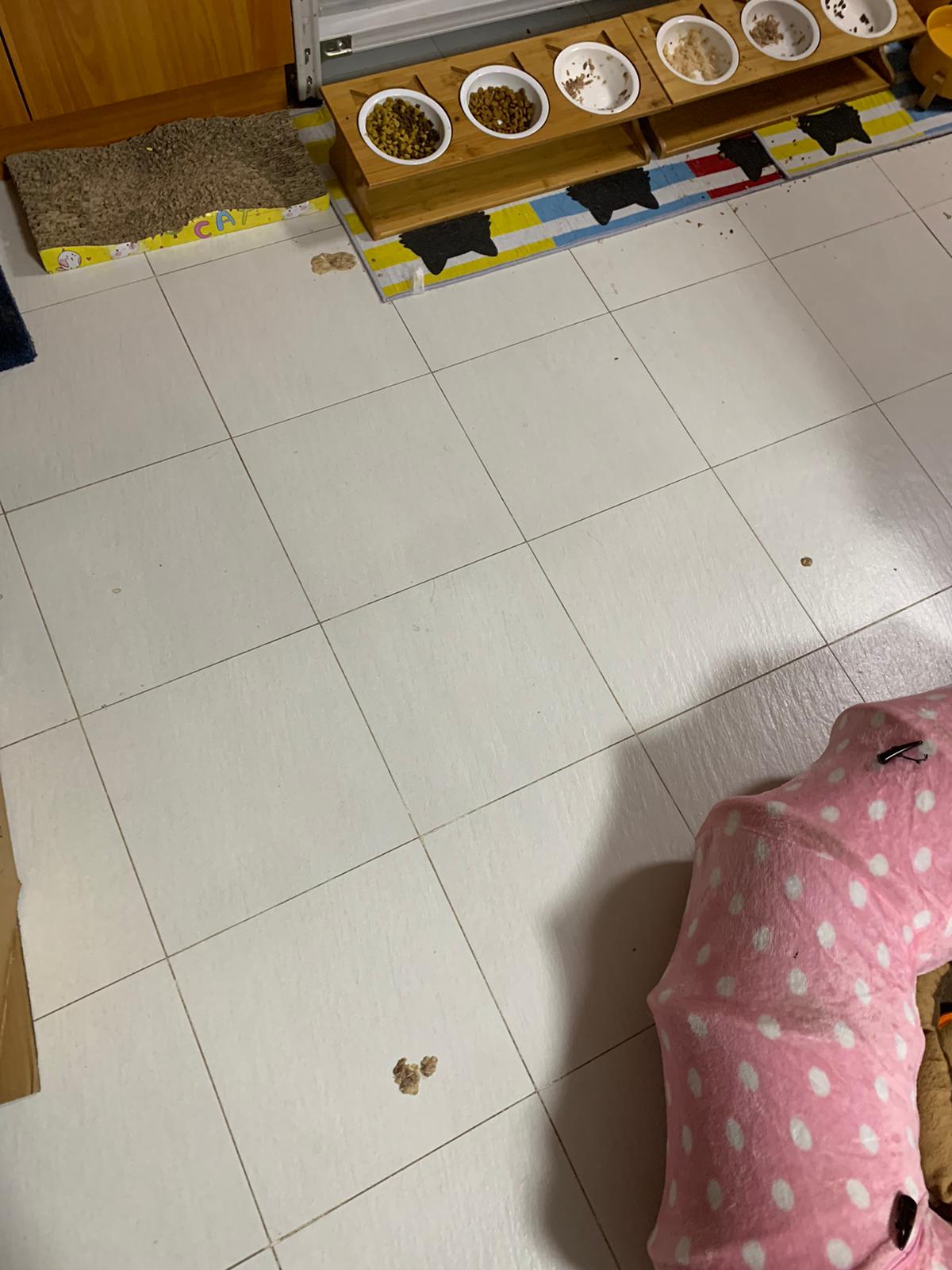 I do one round in 猫房 n check on them again. 2 sets of vomit on the floor – wet food – highly Rufus’s. Watery till the cat mat is wet and dirty, washed. overnight got one set also – but don’t know whose, don’t think is princess’s but is instinctive.