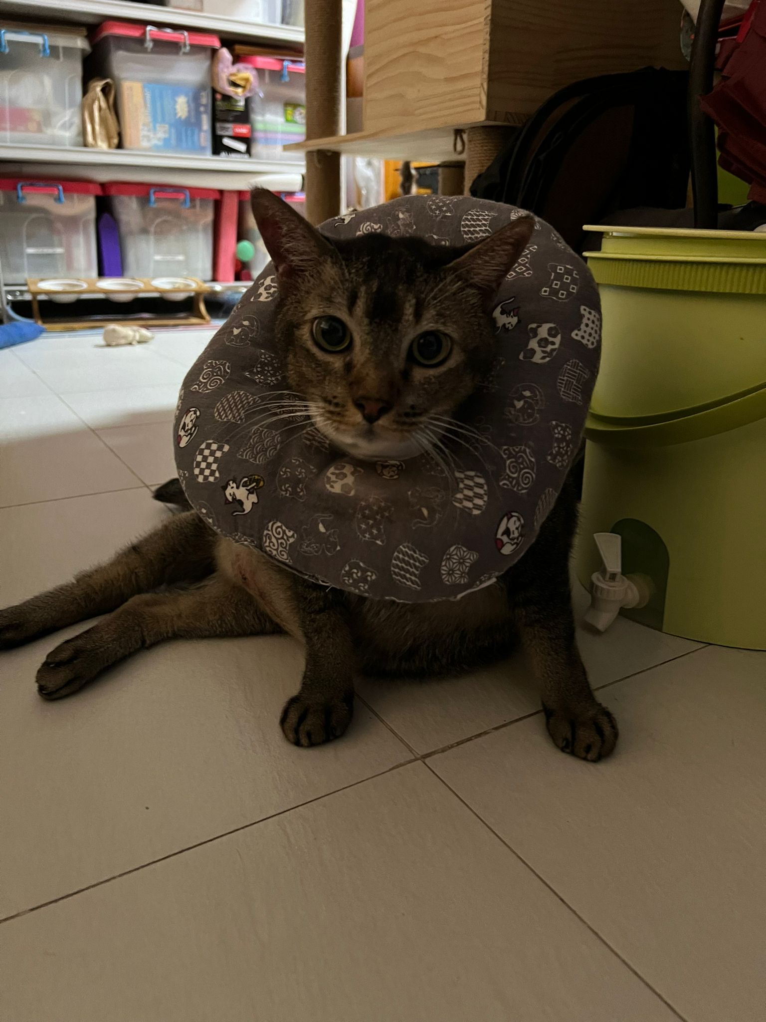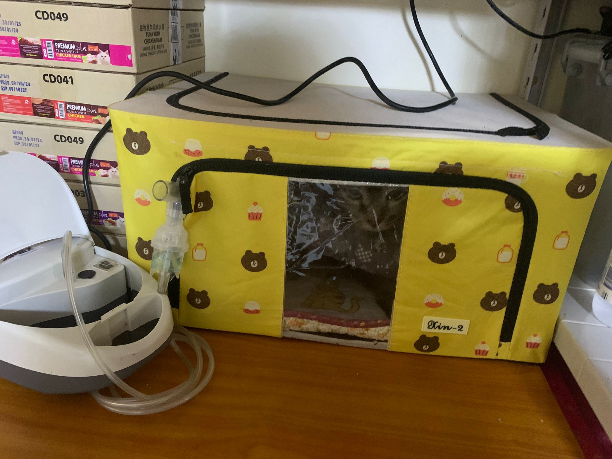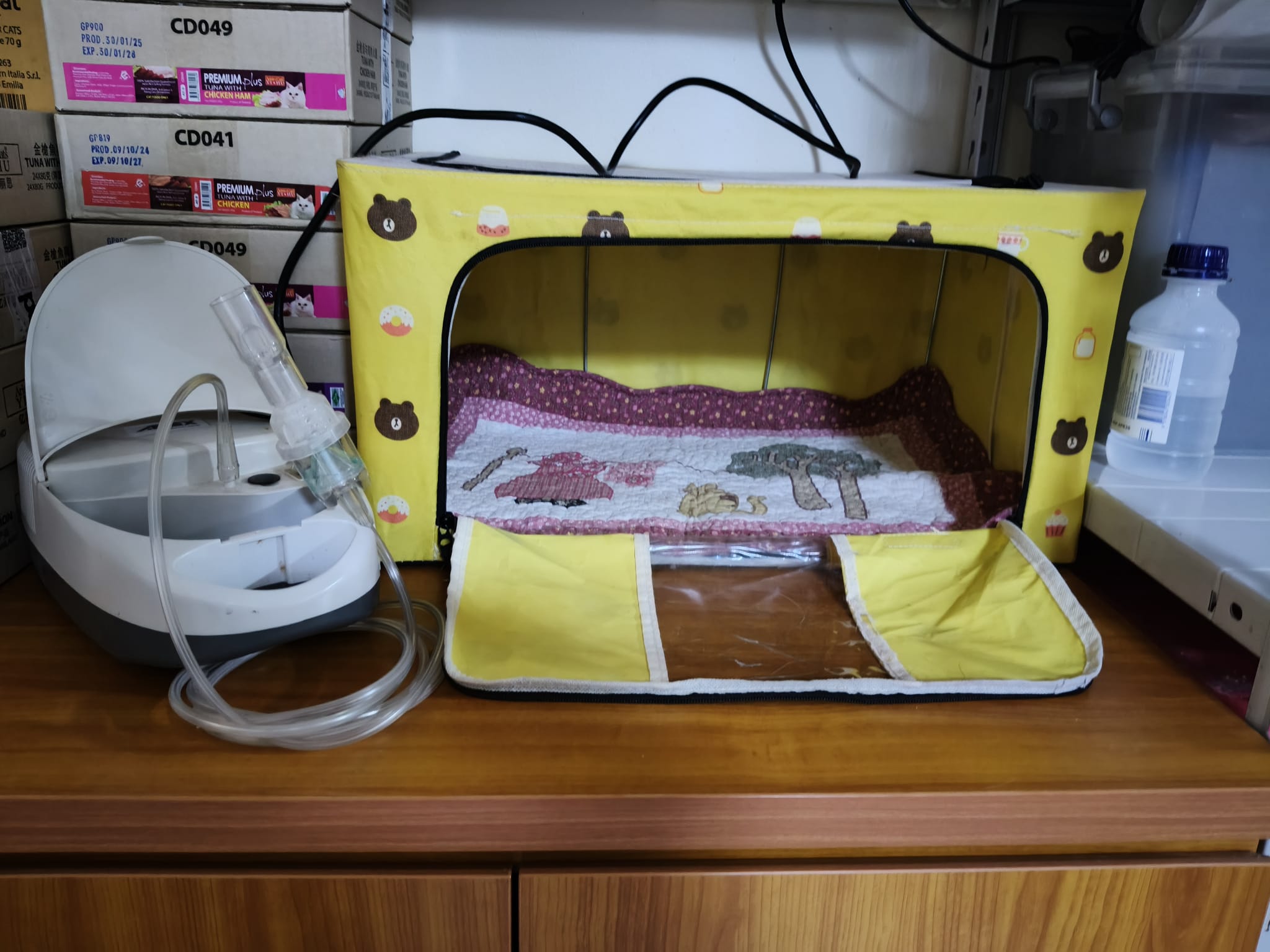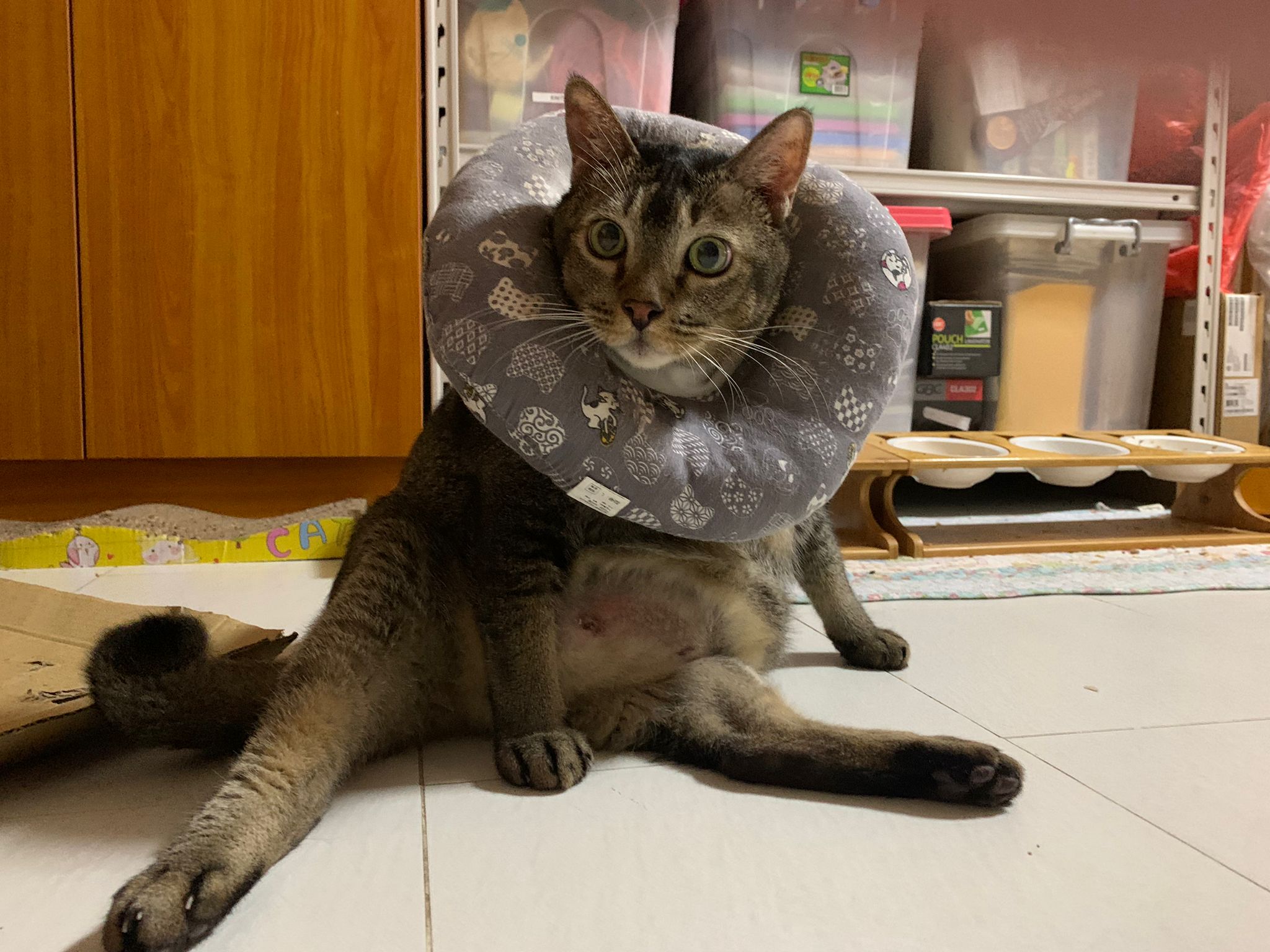 I do one round in 猫房 n check on them again. 2 sets of vomit on the floor – wet food – highly Rufus’s. Watery till the cat mat is wet and dirty, washed. overnight got one set also – but don’t know whose, don’t think is princess’s but is instinctive.