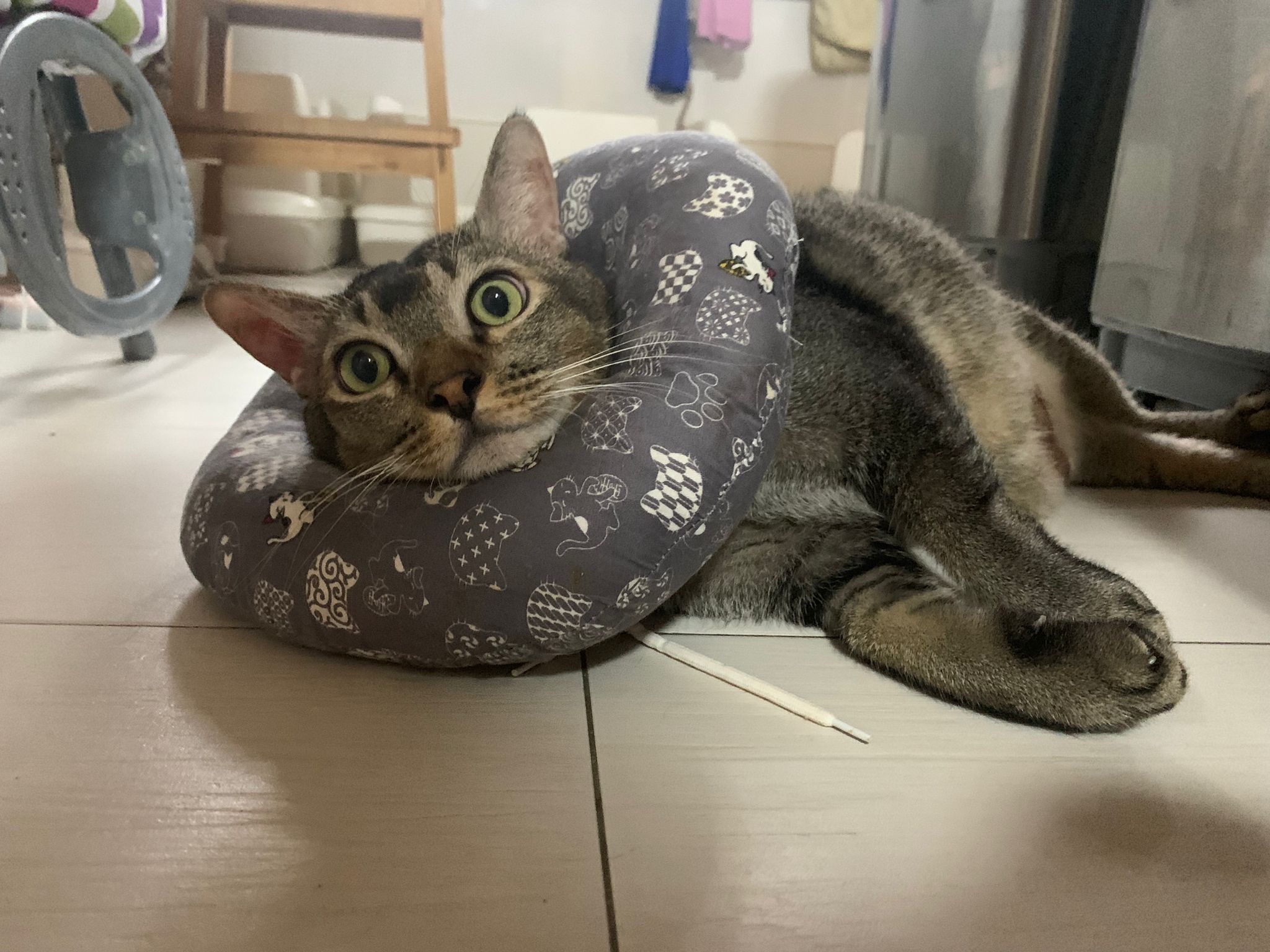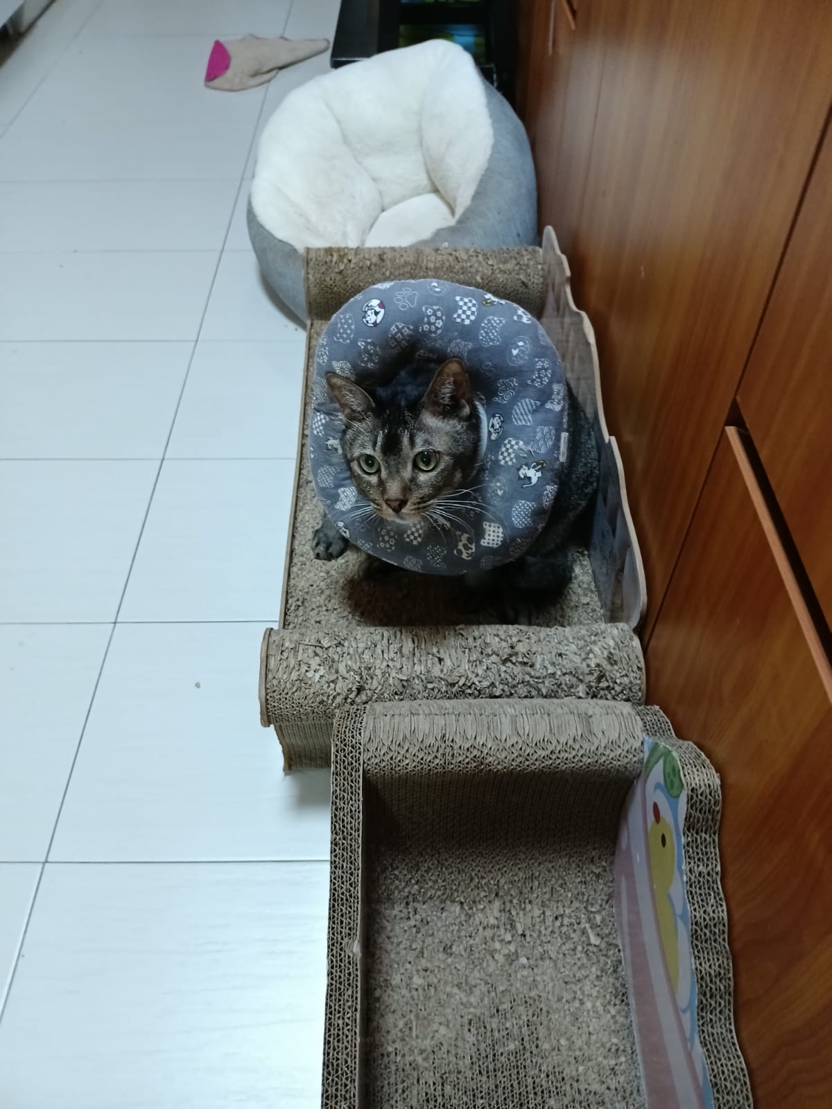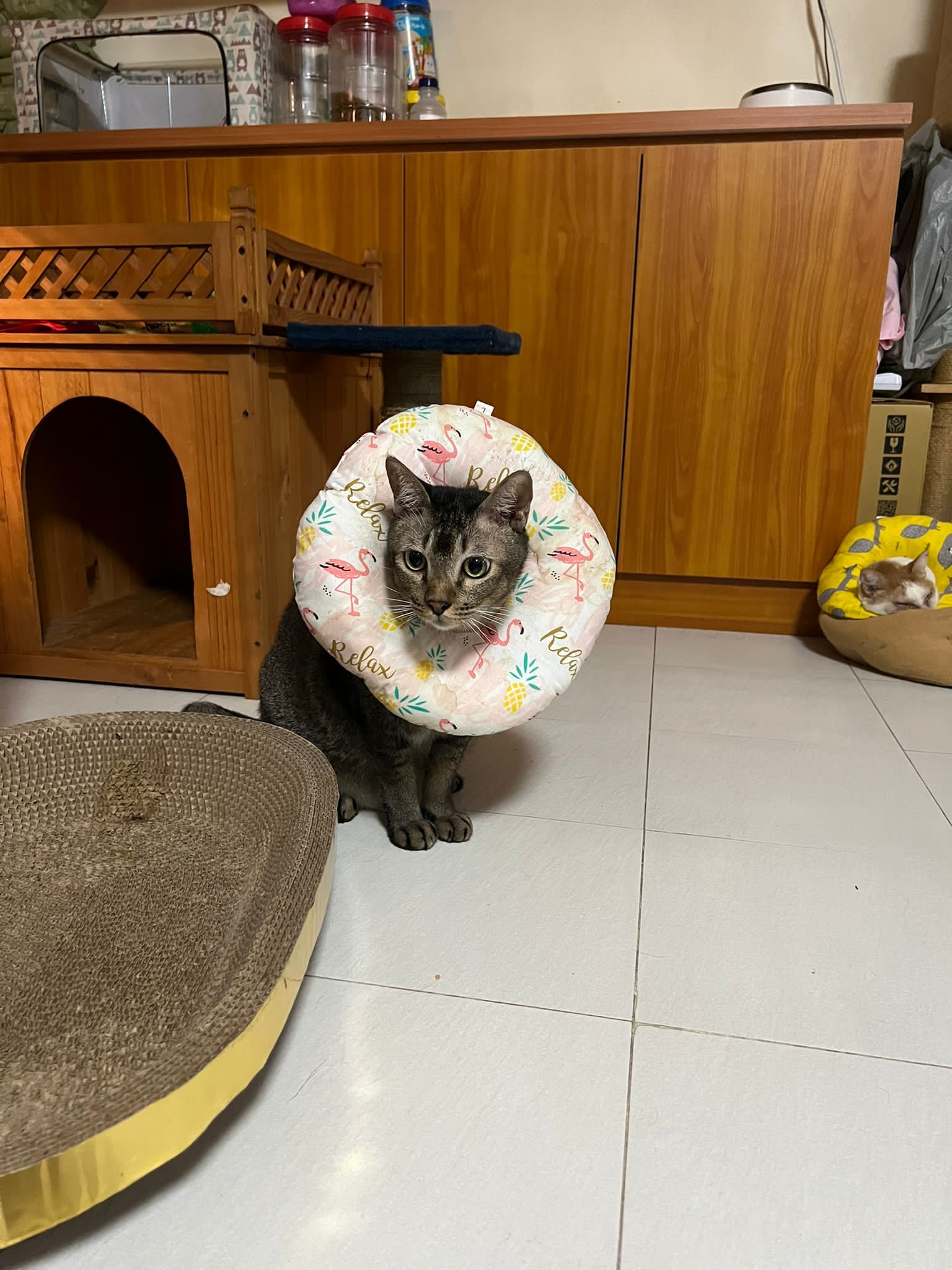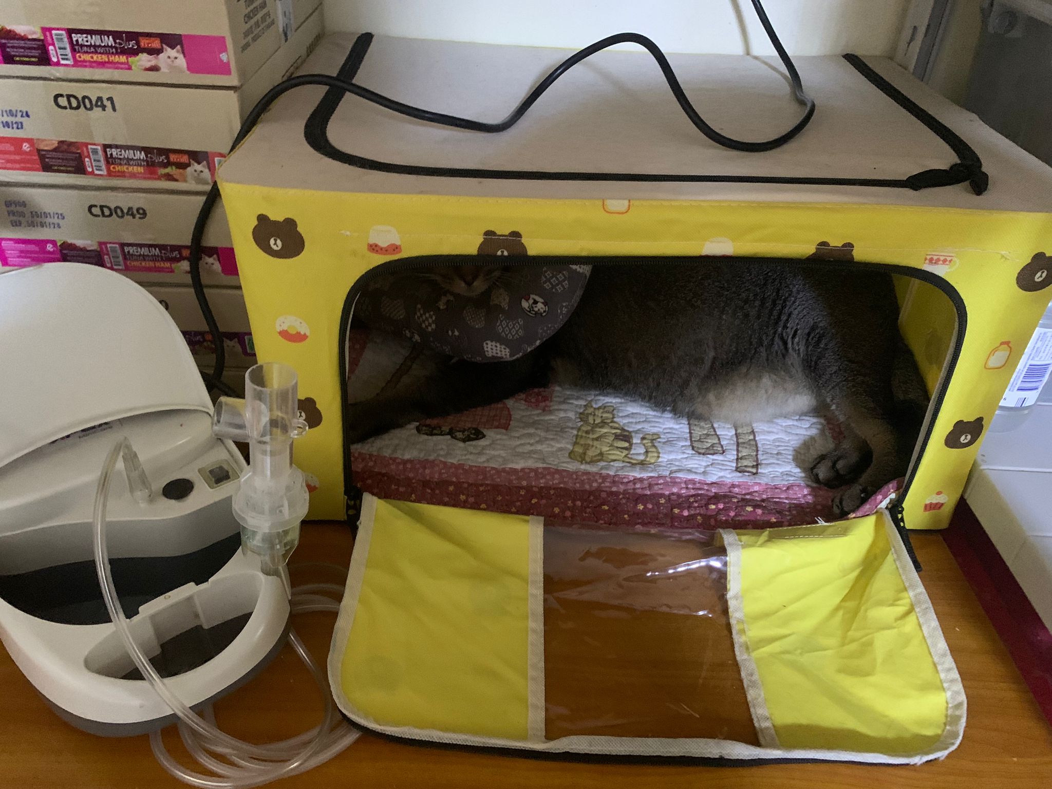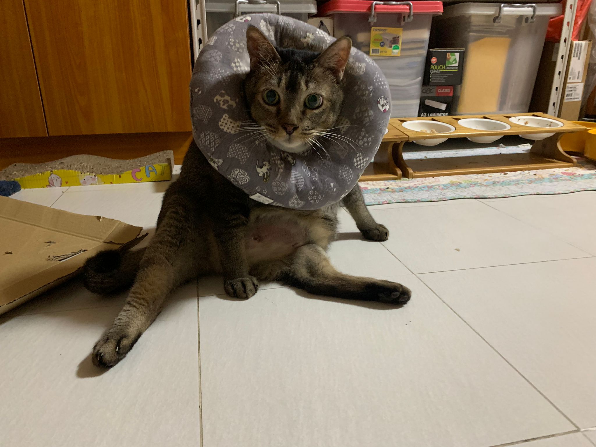I do one round in 猫房 n check on them again. 2 sets of vomit on the floor – wet food – highly Rufus’s. Watery till the cat mat is wet and dirty, washed. overnight got one set also – but don’t know whose, don’t think is princess’s but is instinctive.