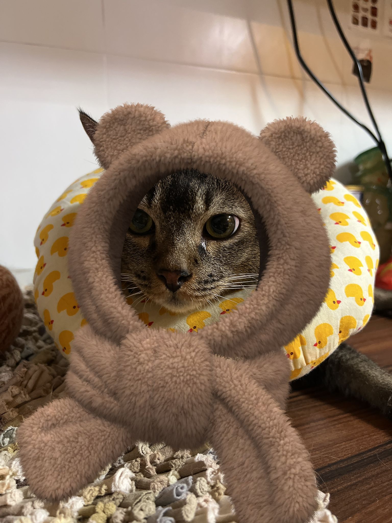 Morning go in found vomit, wet food leh. when I clean up, rufus is the supervisor