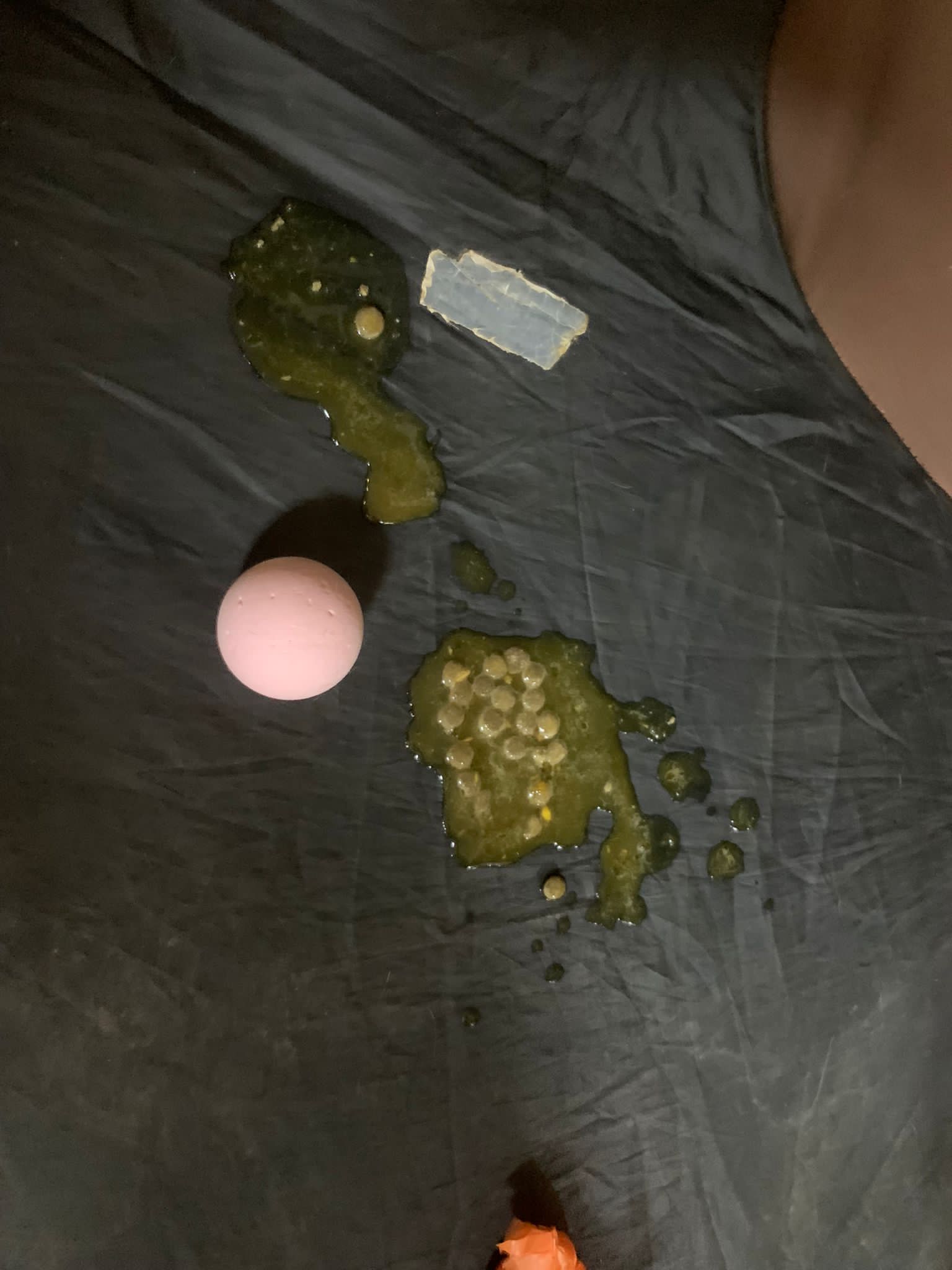 Didn’t find any vomit today.