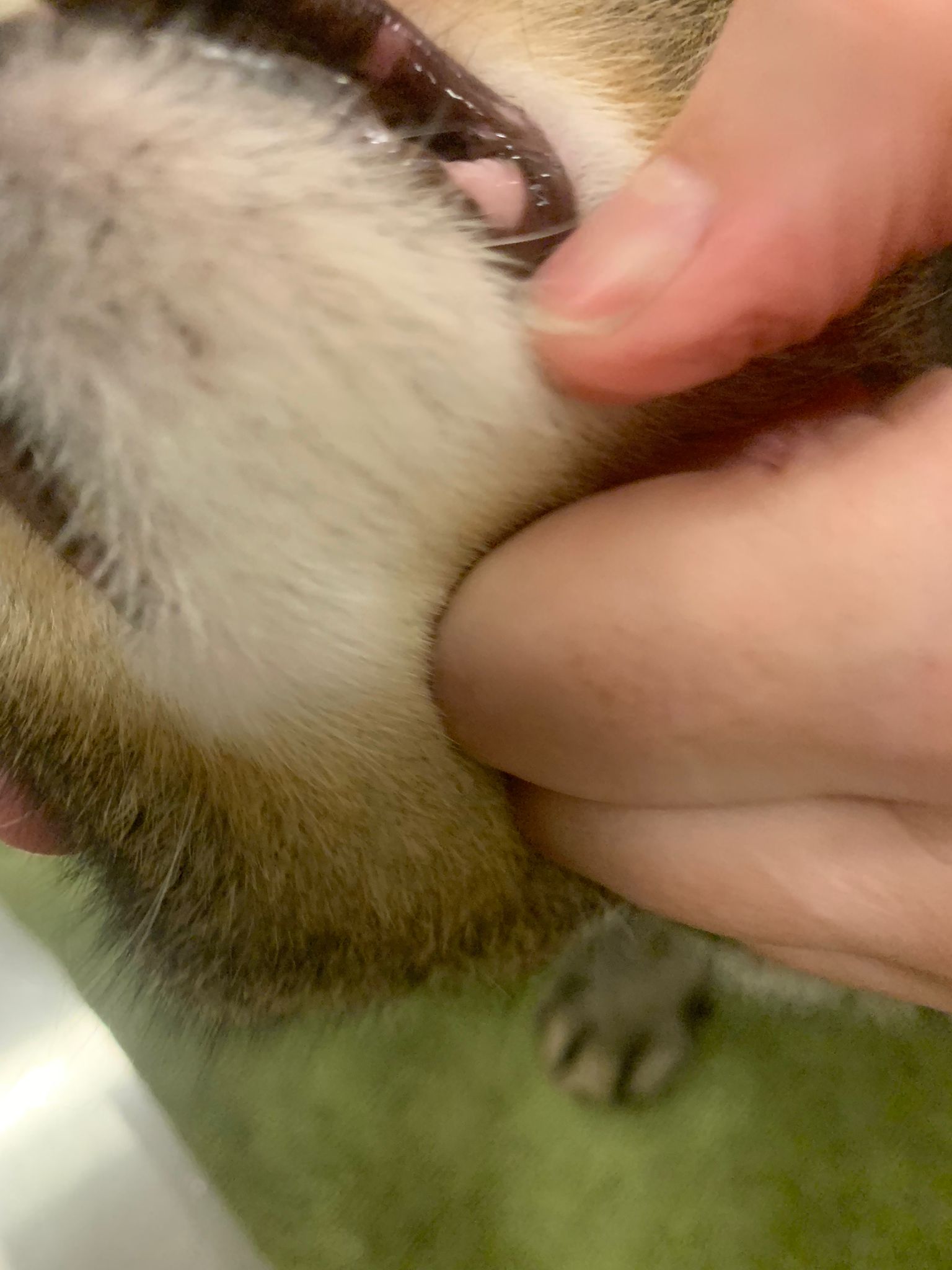 I play w him, he bite me then he lick me. Ha