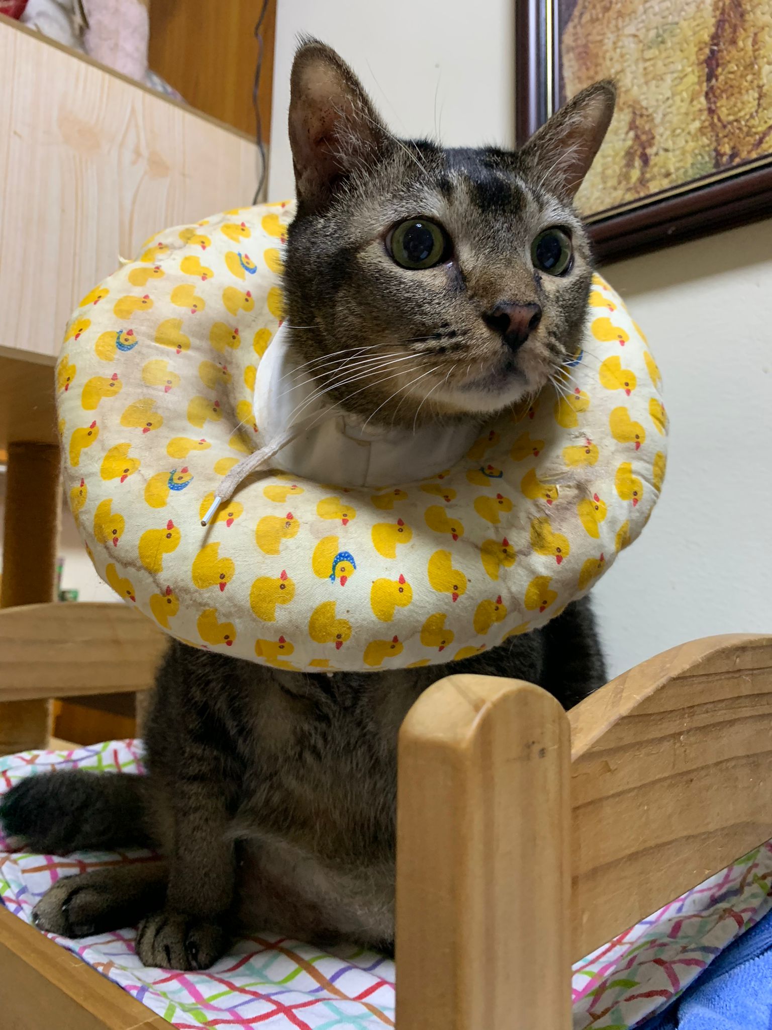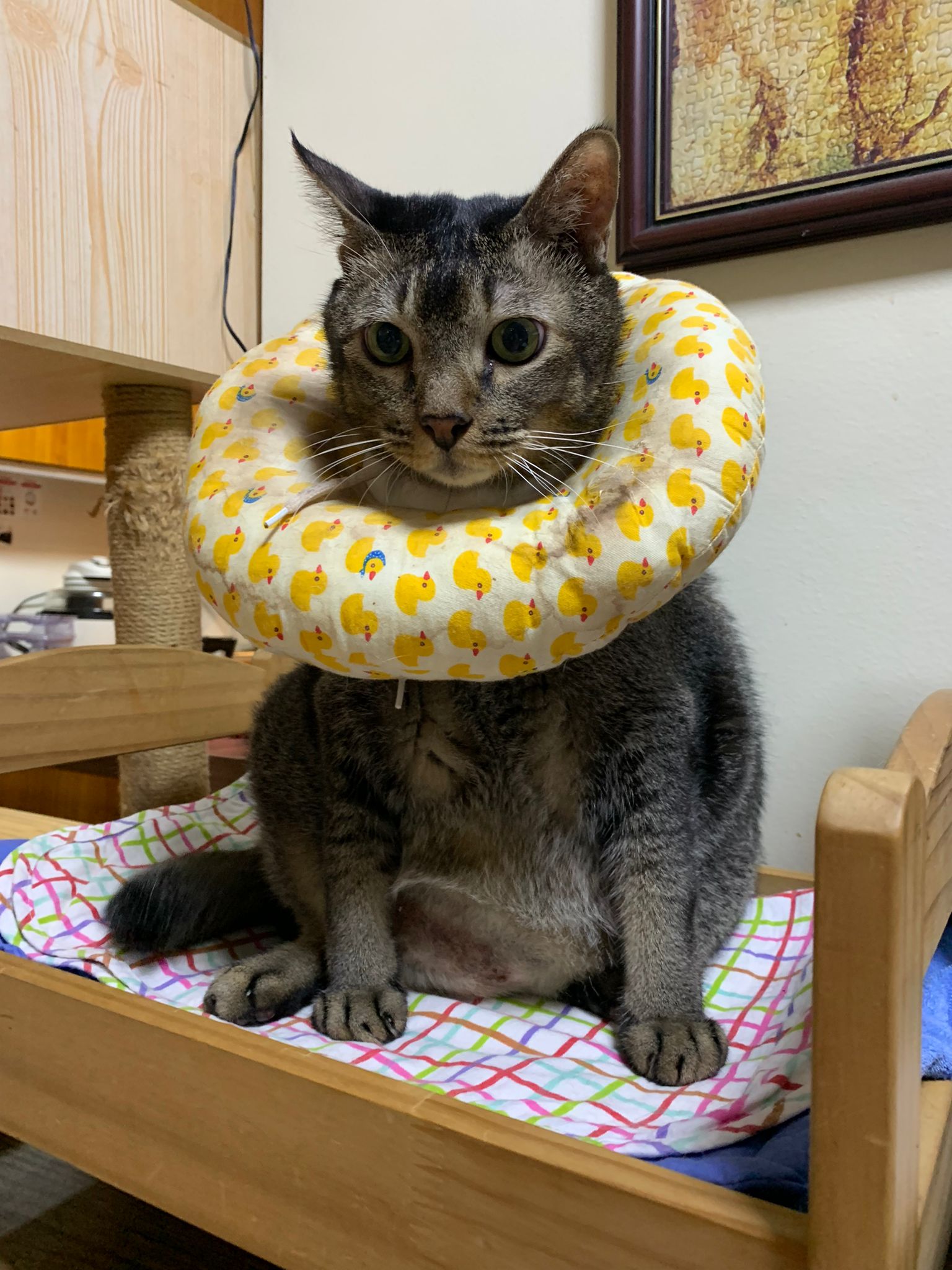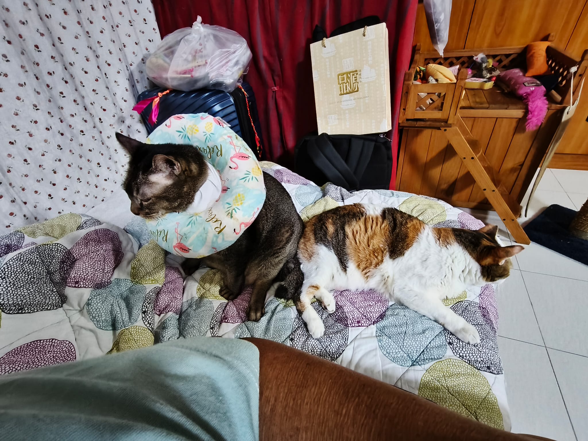 5.00pm: I rush back from vet n he is sitting on big bed w Princess mama, sayang both.