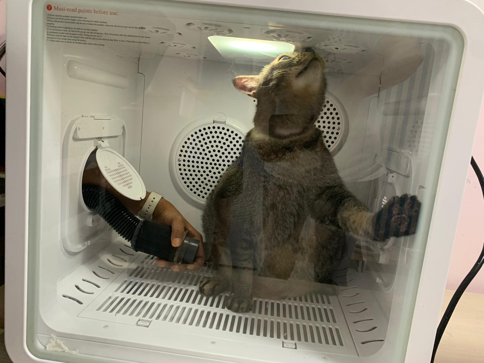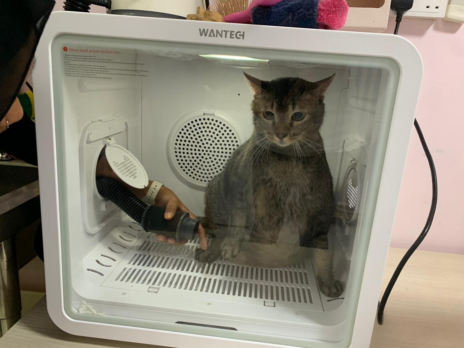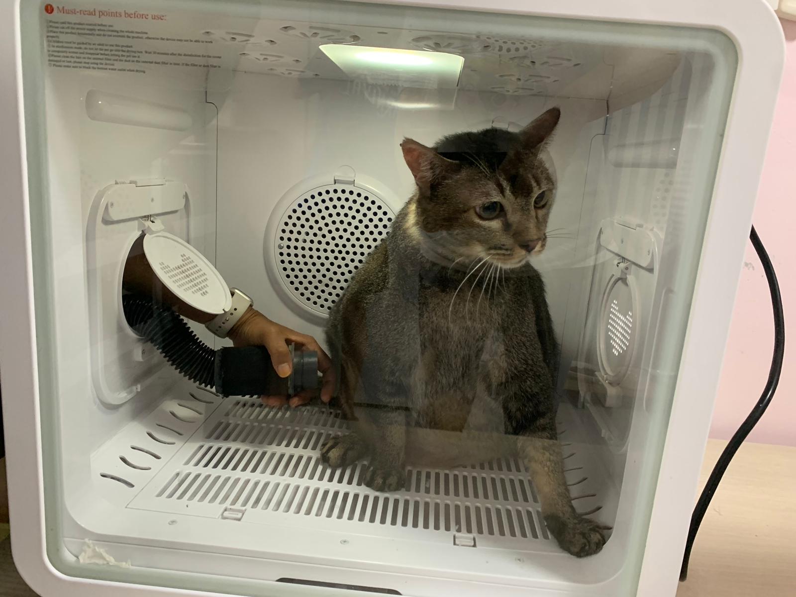 He make lots of racing cars sound la. But not as bad as I thought la. Think he groom super long, almost 2h – ha cos g1 says his fur is a lot, so he dry in dryer then physically blow dry then go into dry and w blower again. G1 told me she gave “my cats” ketanine treatment, so not sure is it everyone have that.