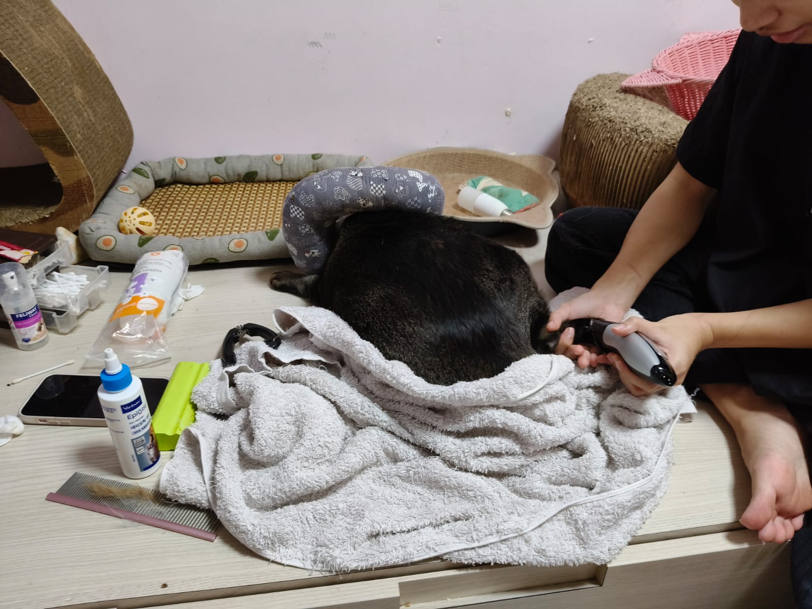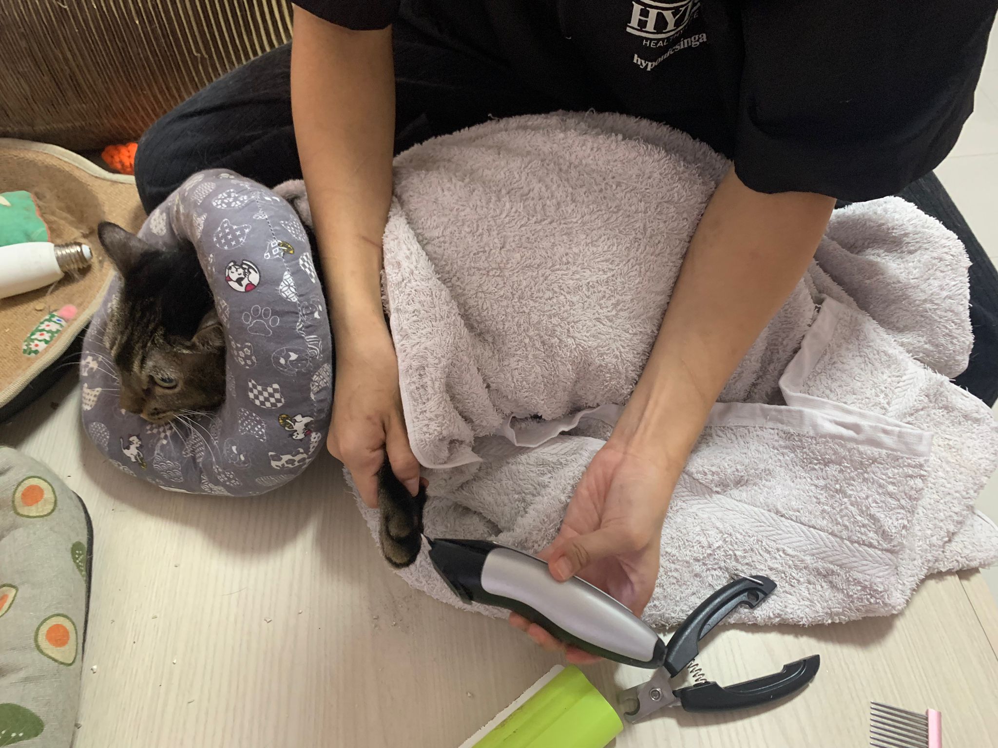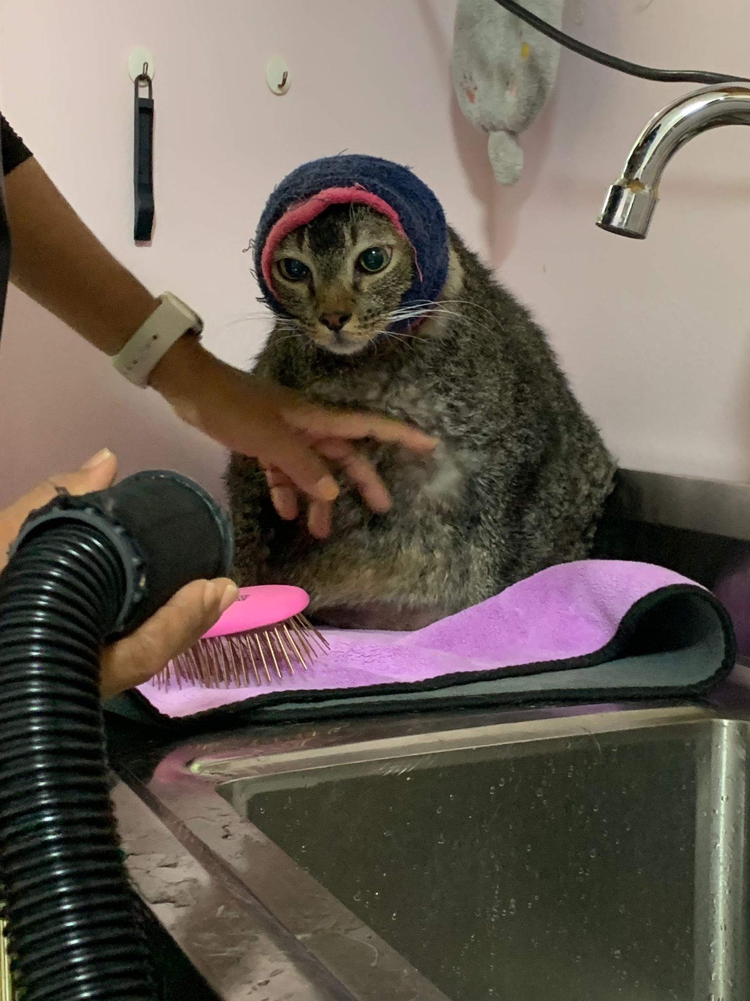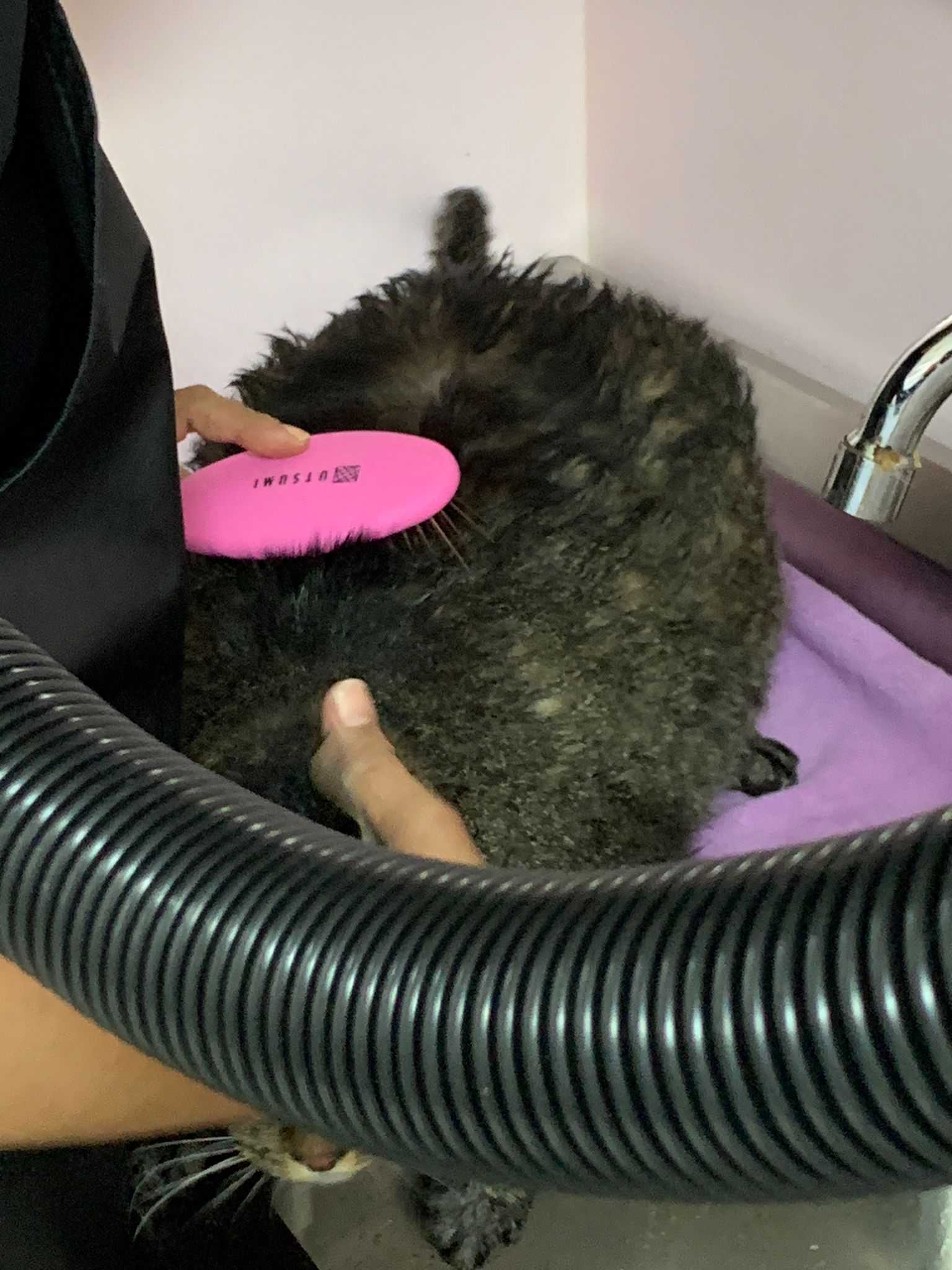 He make lots of racing cars sound la. But not as bad as I thought la. Think he groom super long, almost 2h – ha cos g1 says his fur is a lot, so he dry in dryer then physically blow dry then go into dry and w blower again. G1 told me she gave “my cats” ketanine treatment, so not sure is it everyone have that.