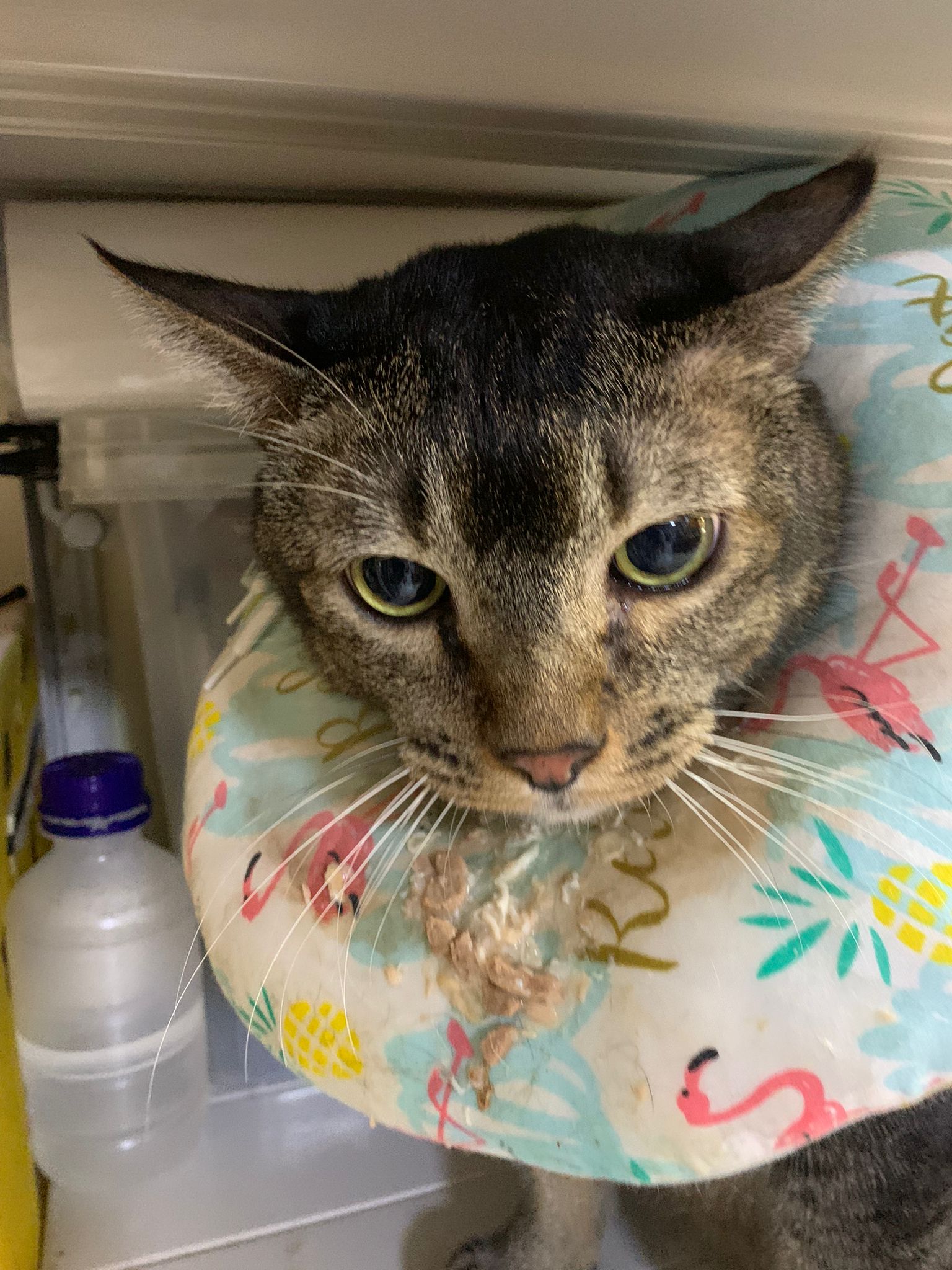 After breakfast, got vomit on floor – think is his