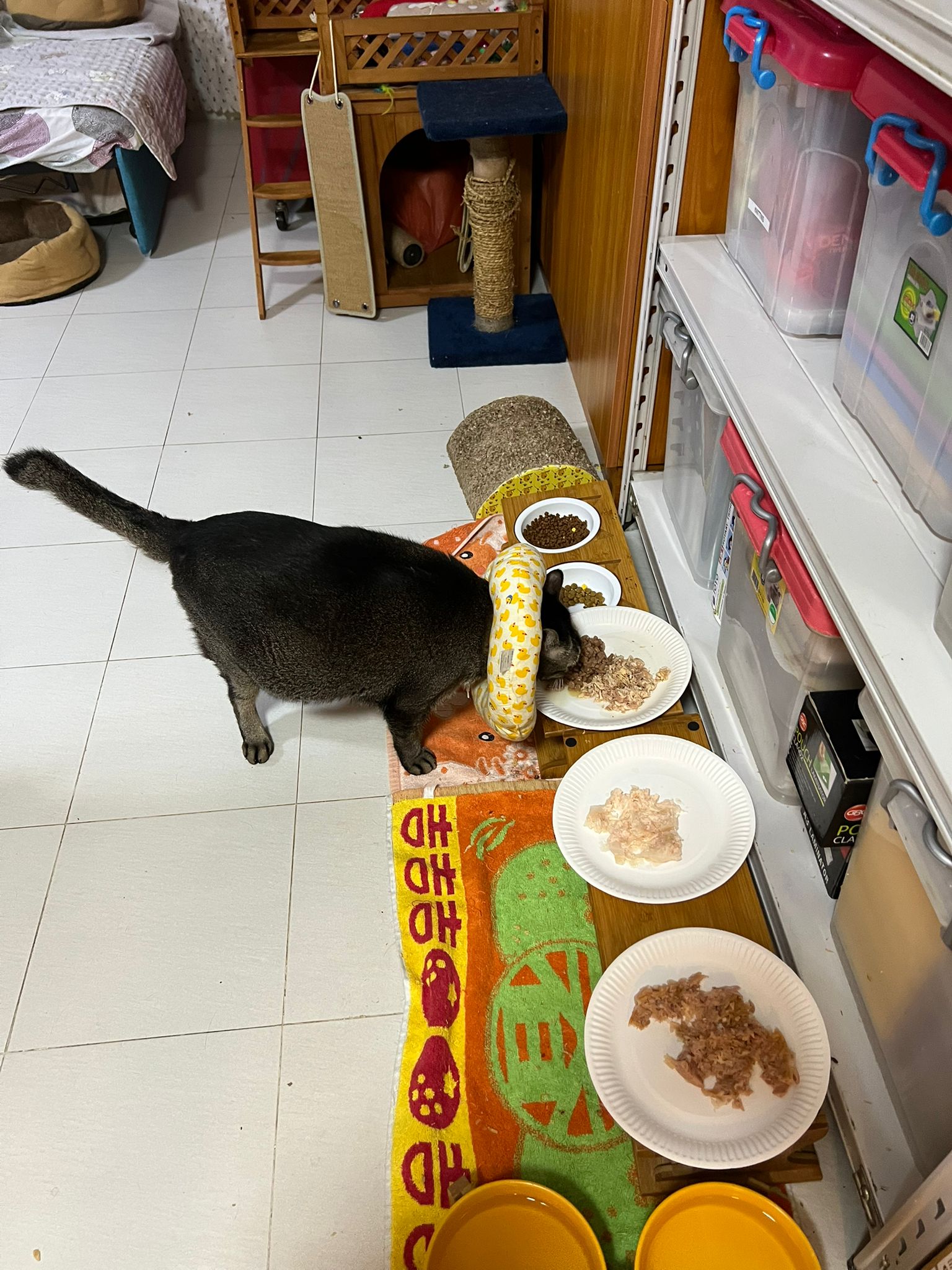 In between, I pack 猫房 new food and rufus and joy come help out.