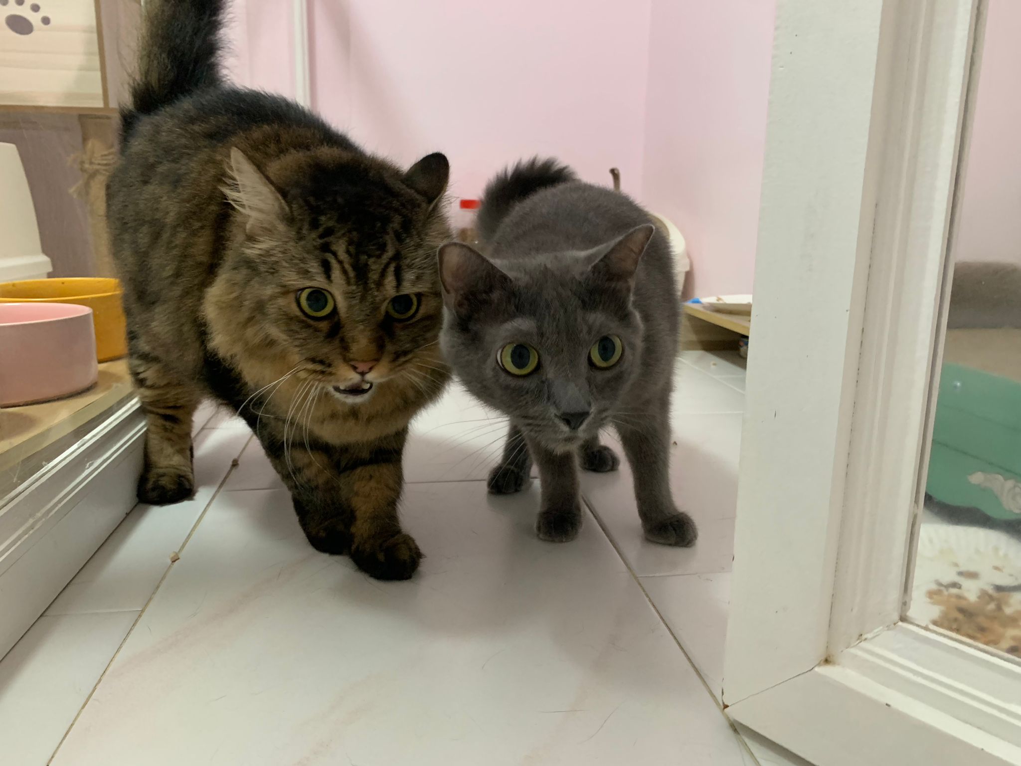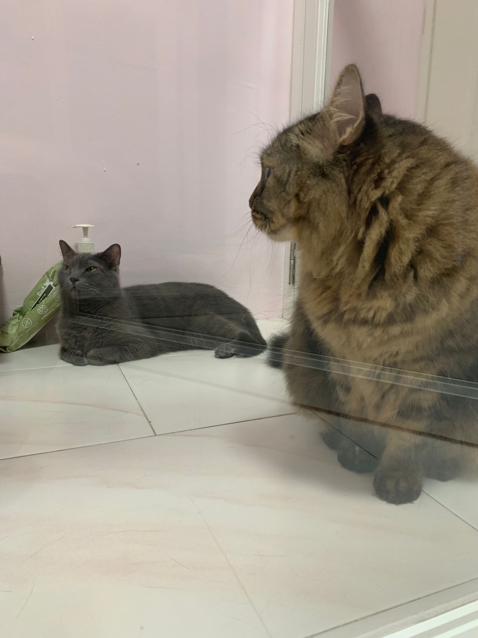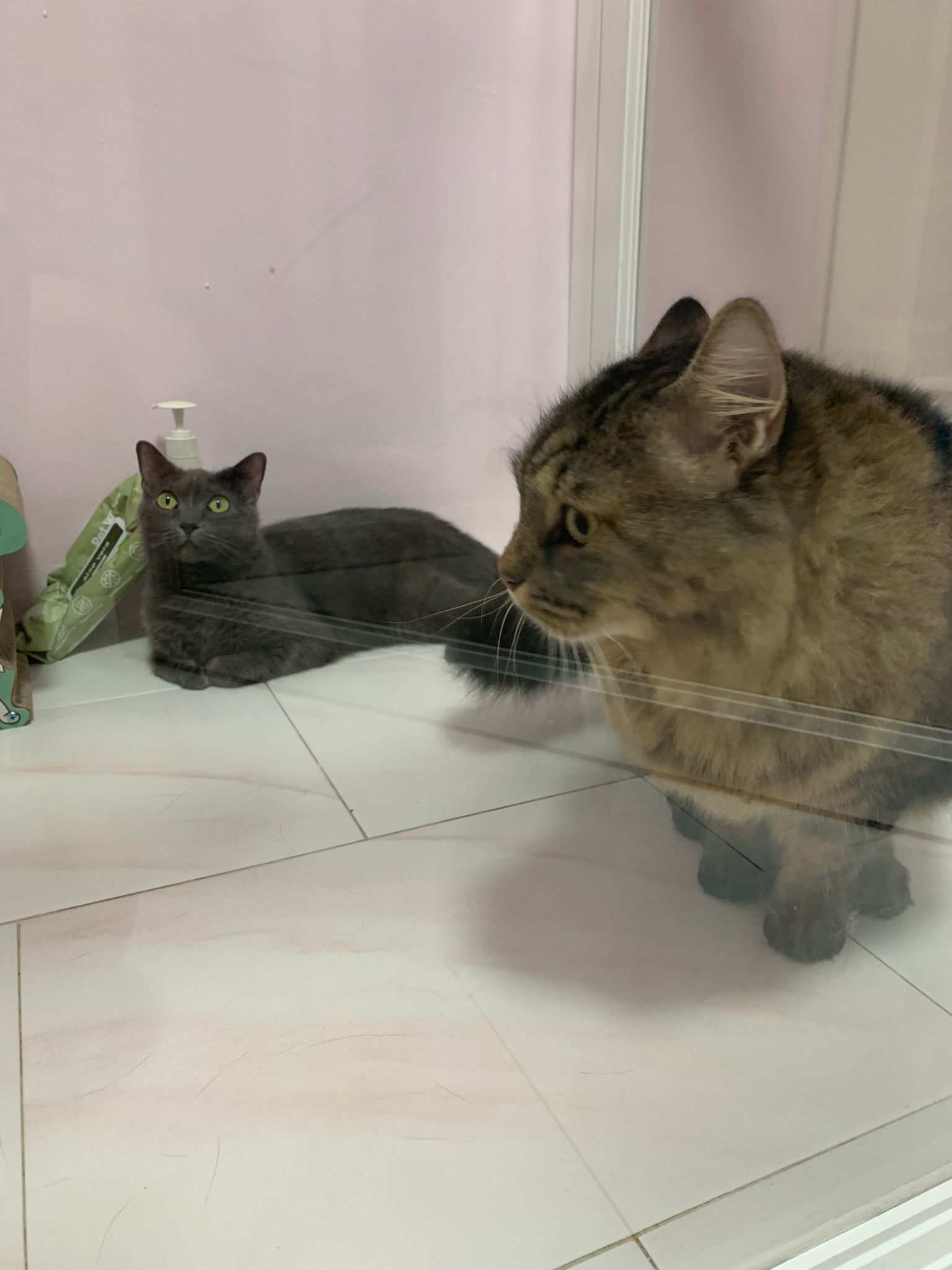 Duno why both of them didn’t meow, but sitting looking at each other like discussing something. I told them Tmr major cleaning day will let them go bear museum to play