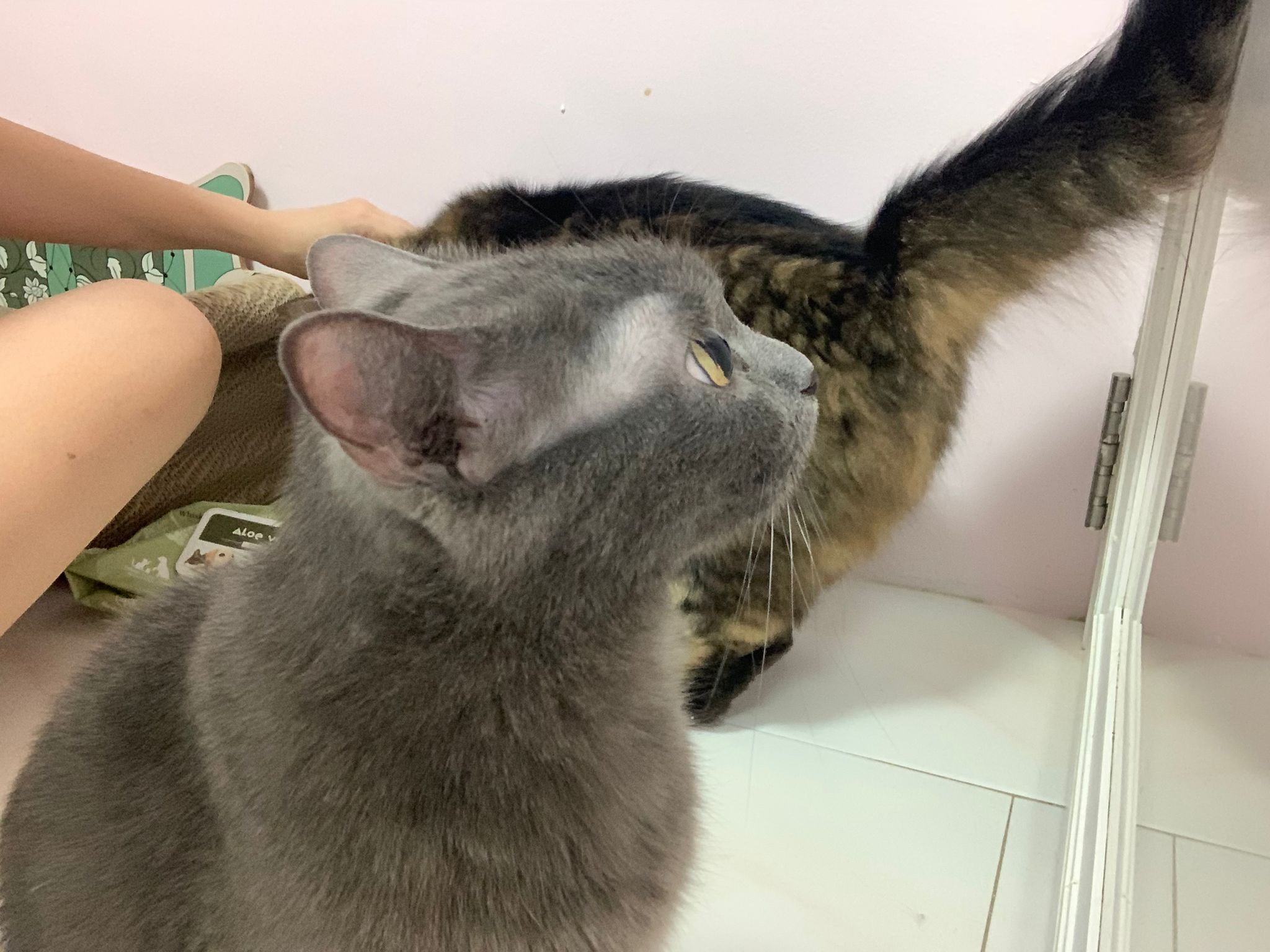 10am+: brush her fur a little while only cos Simba keep coming. But she don’t have much loose fur. The 2 of them will circle me and we pat pat, sayang n pat pat again. I believe they remembered they r 猫房cats.