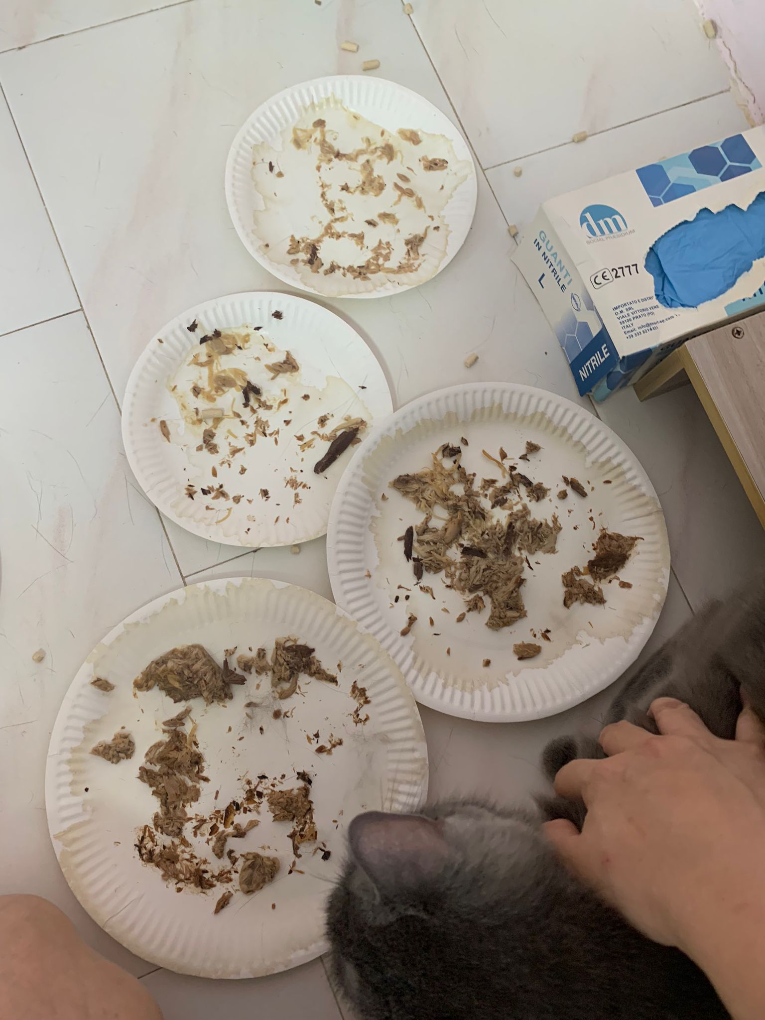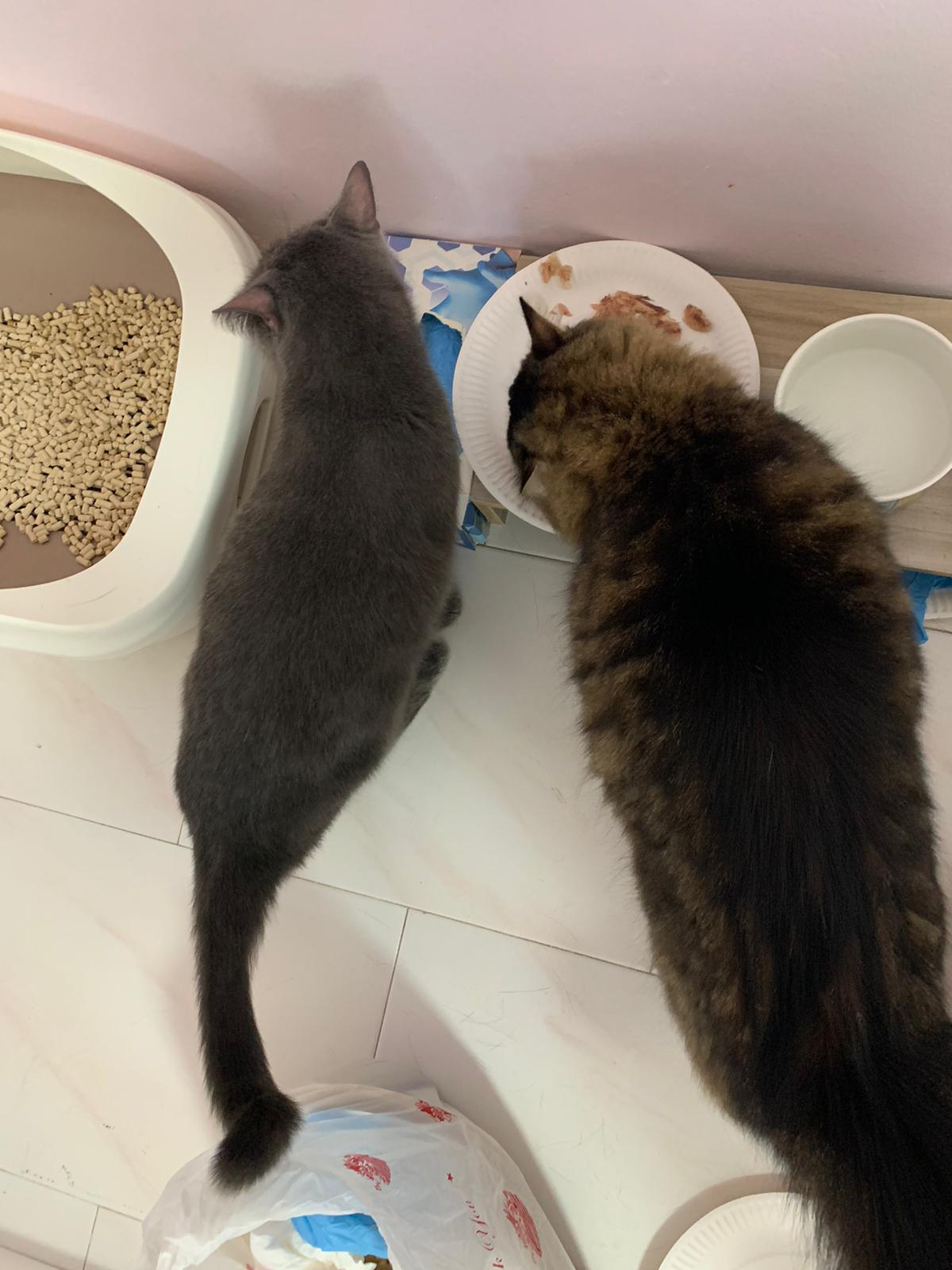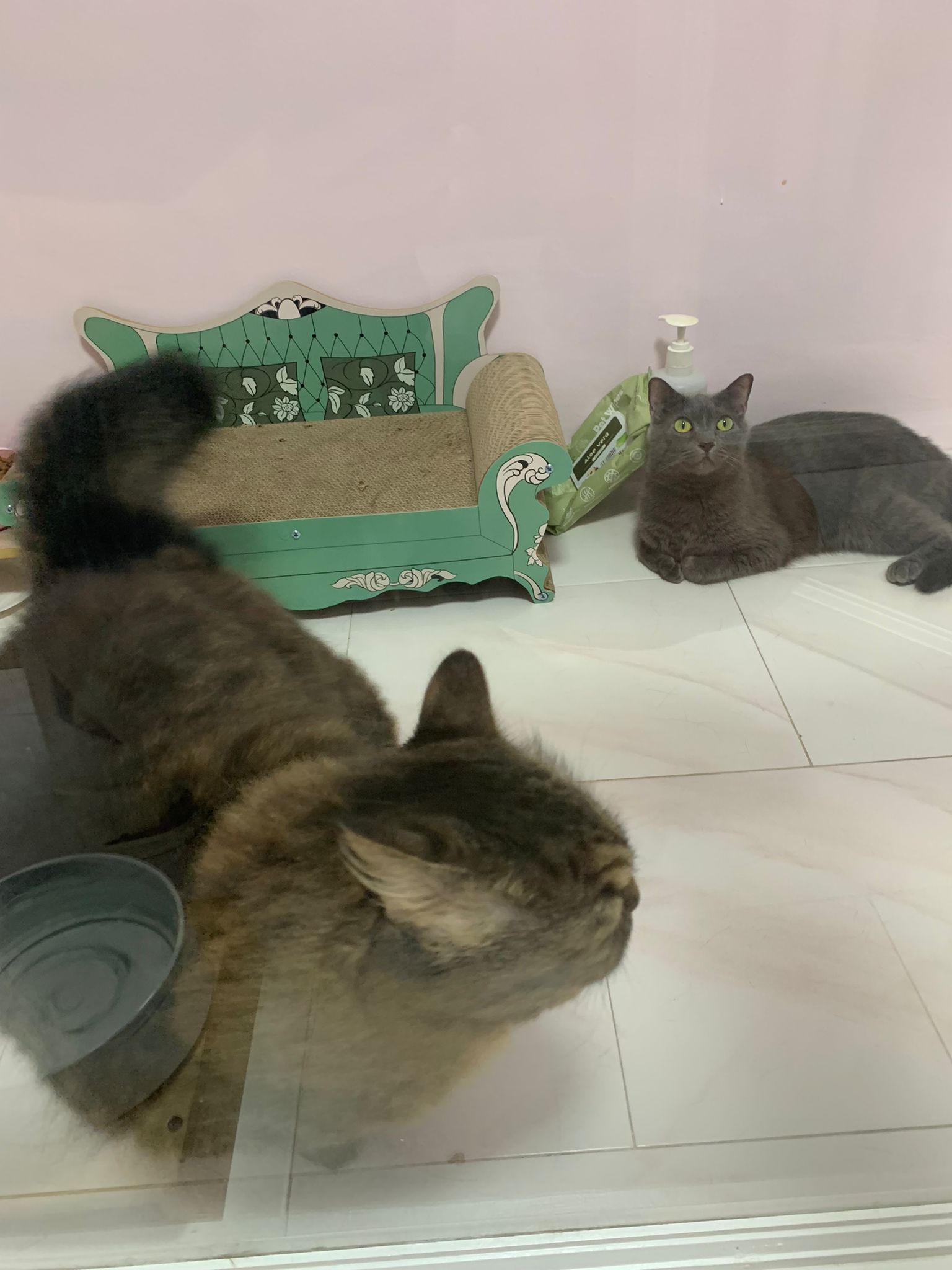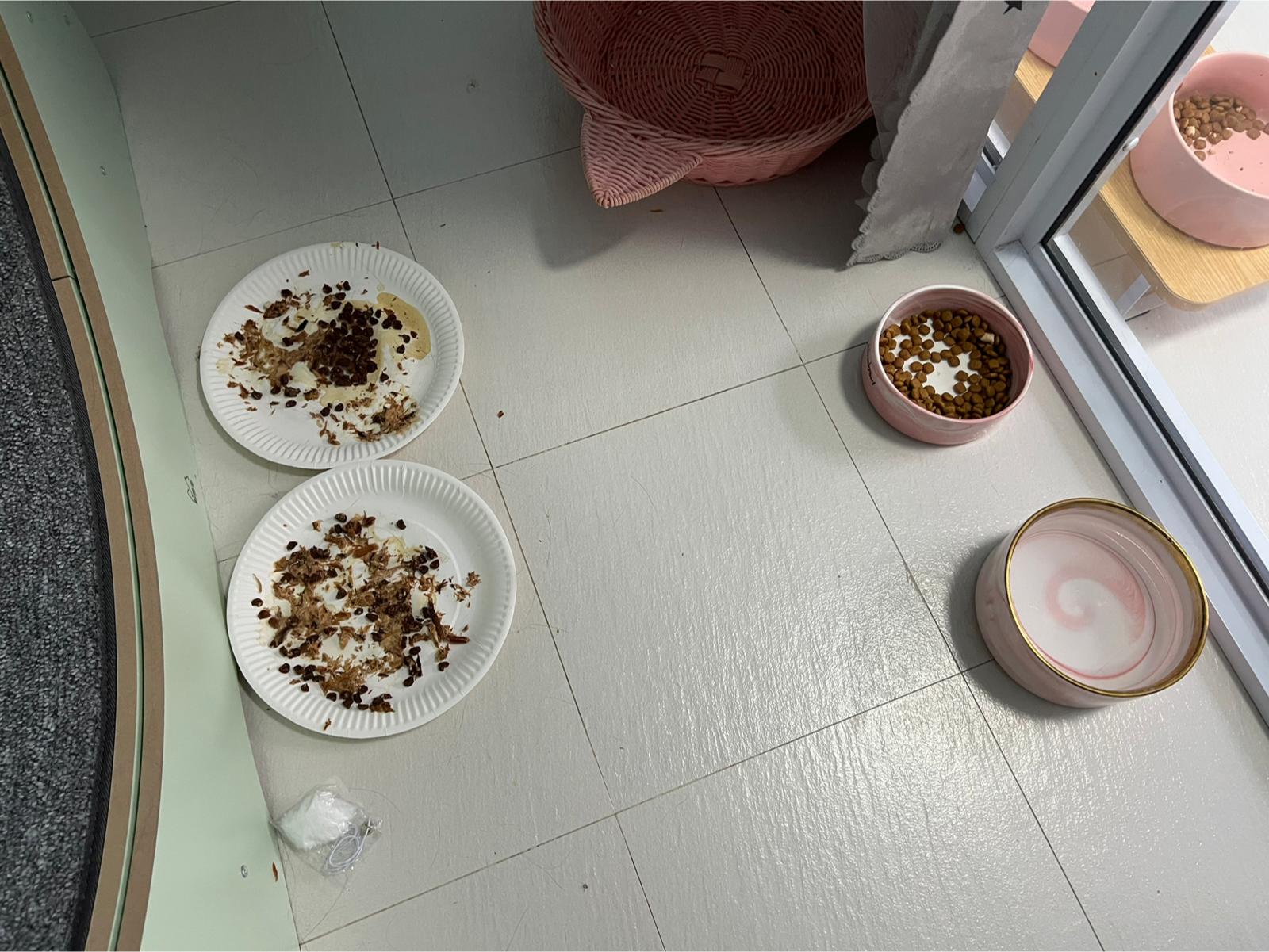 Morning: come out to greet me too. I tell her I clear poo first then she walk elsewhere didn’t block me. Oh ya but she came to the plate where I put the poo on, think she is very hungry. wet food all cleared. Kibble 60% cleared. 2 sets of poo, one is more, but very very dry 7/10, one set normal texture but 5.5/10. Pee amount ok.