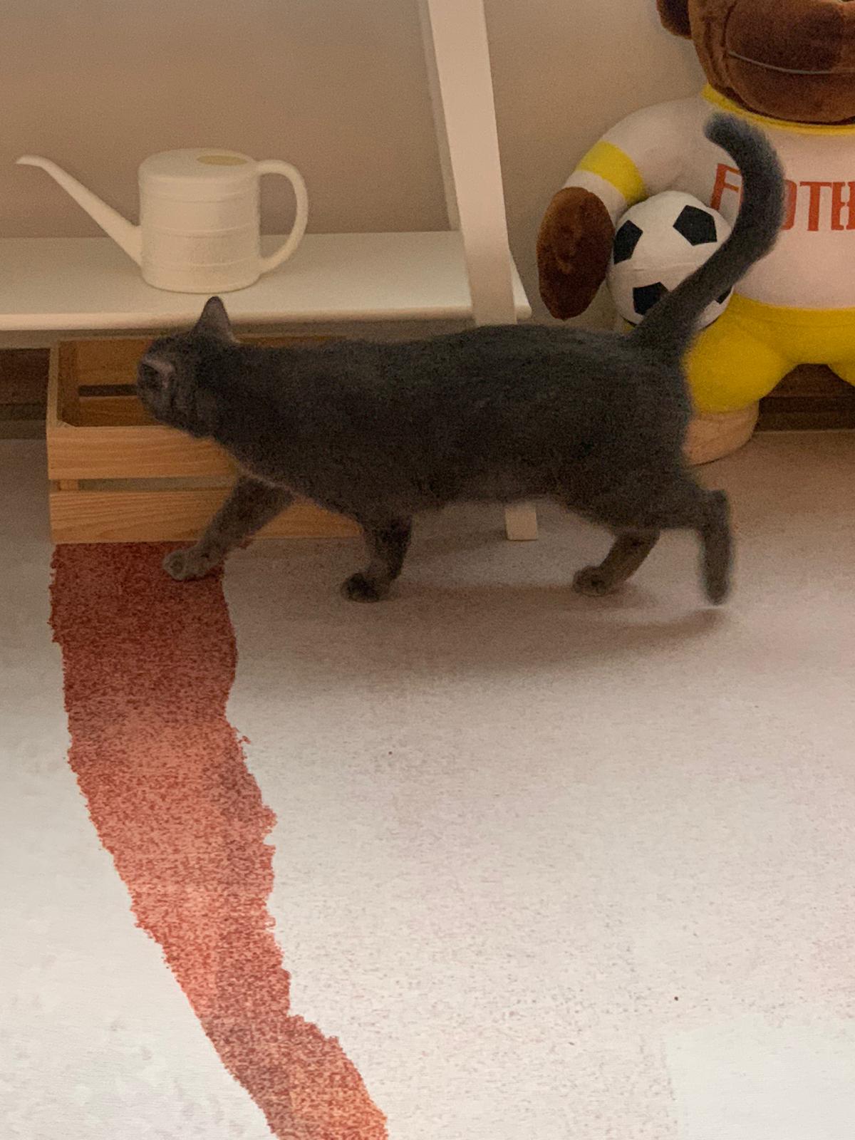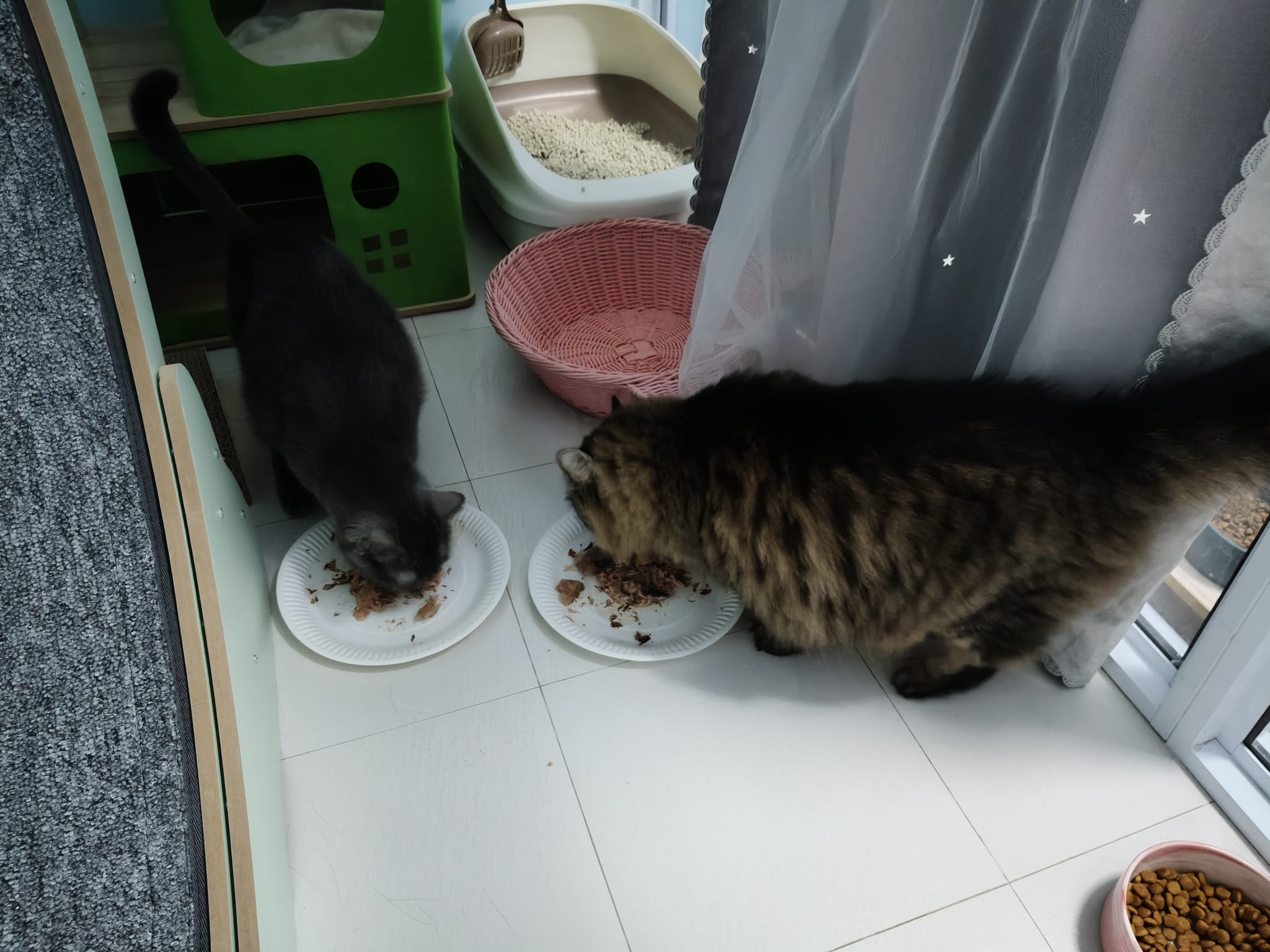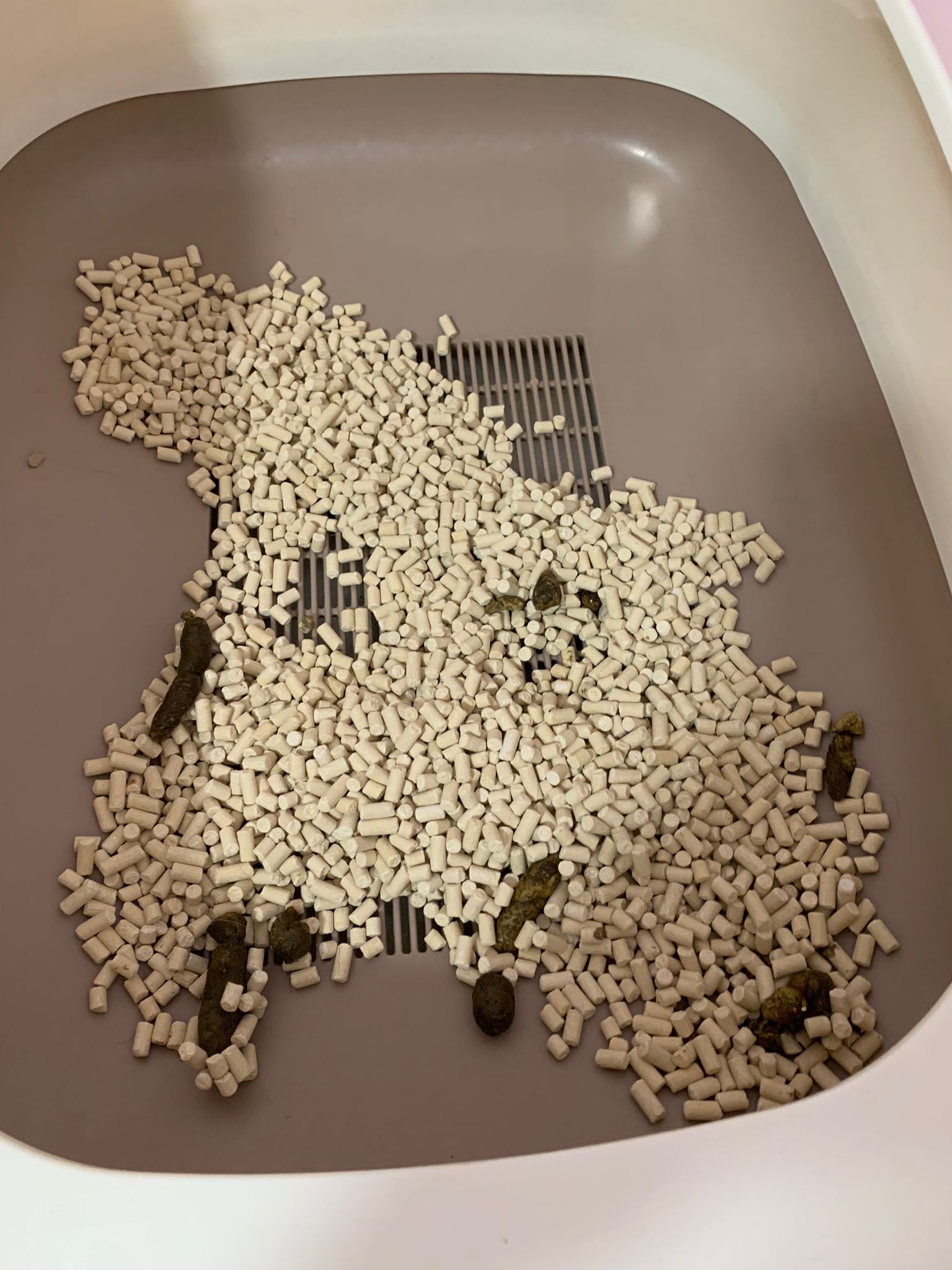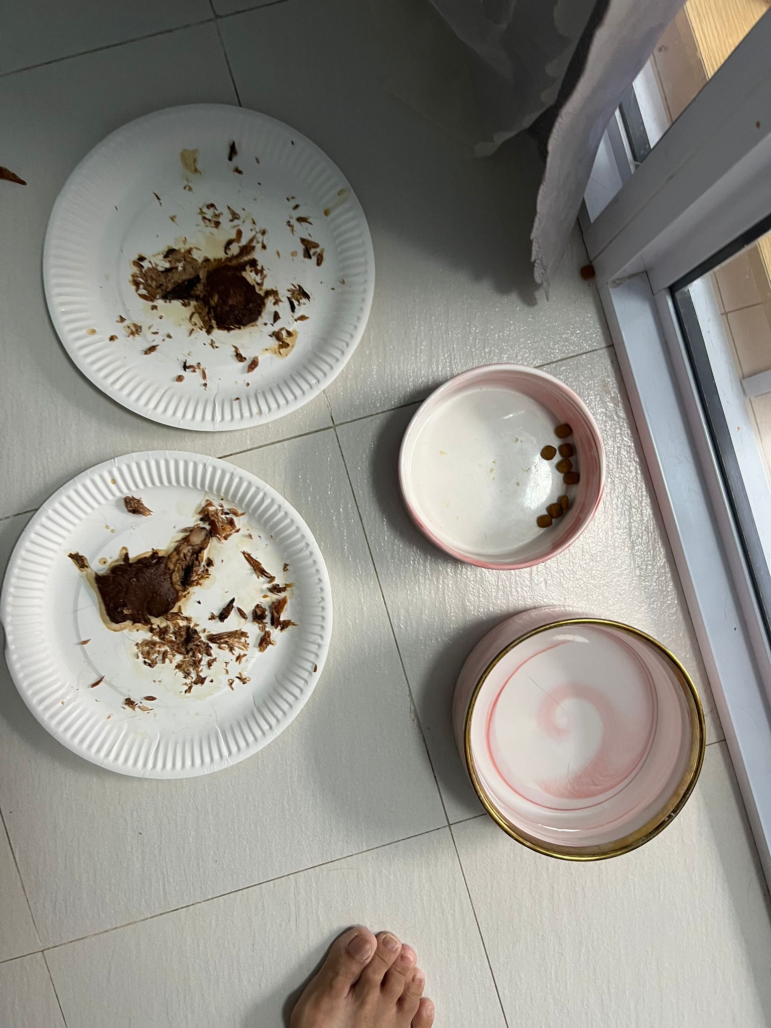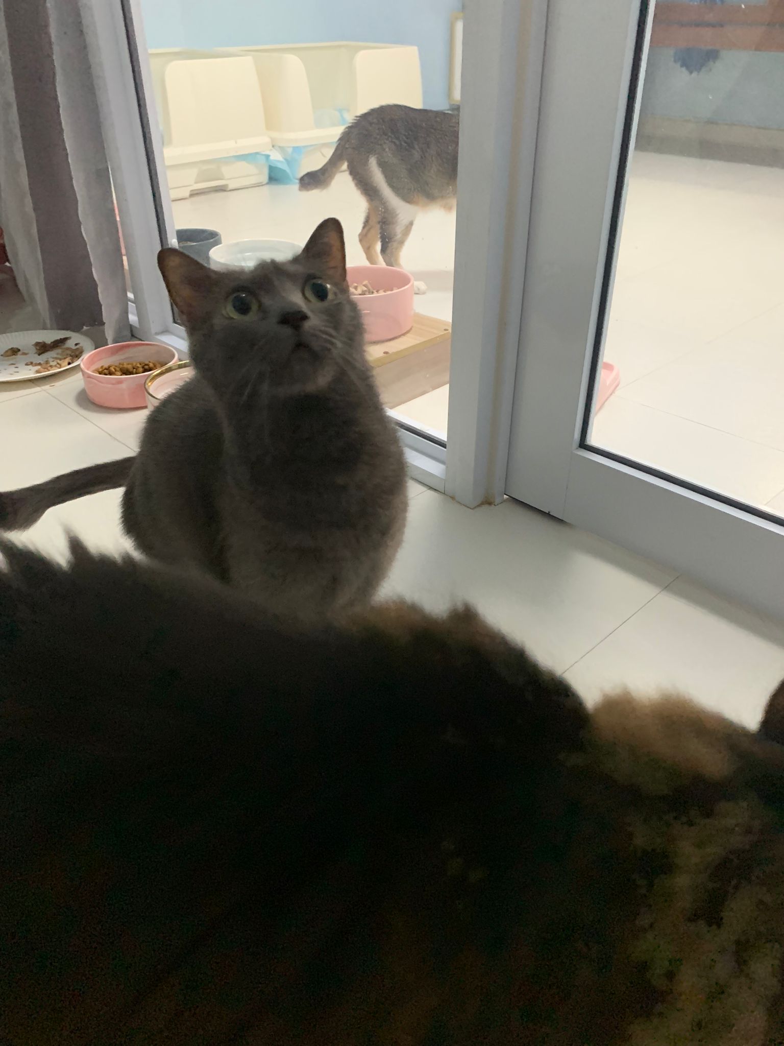 Morning: come out to greet me too. I tell her I clear poo first then she walk elsewhere didn’t block me. Oh ya but she came to the plate where I put the poo on, think she is very hungry. wet food all cleared. Kibble 60% cleared. 2 sets of poo, one is more, but very very dry 7/10, one set normal texture but 5.5/10. Pee amount ok.