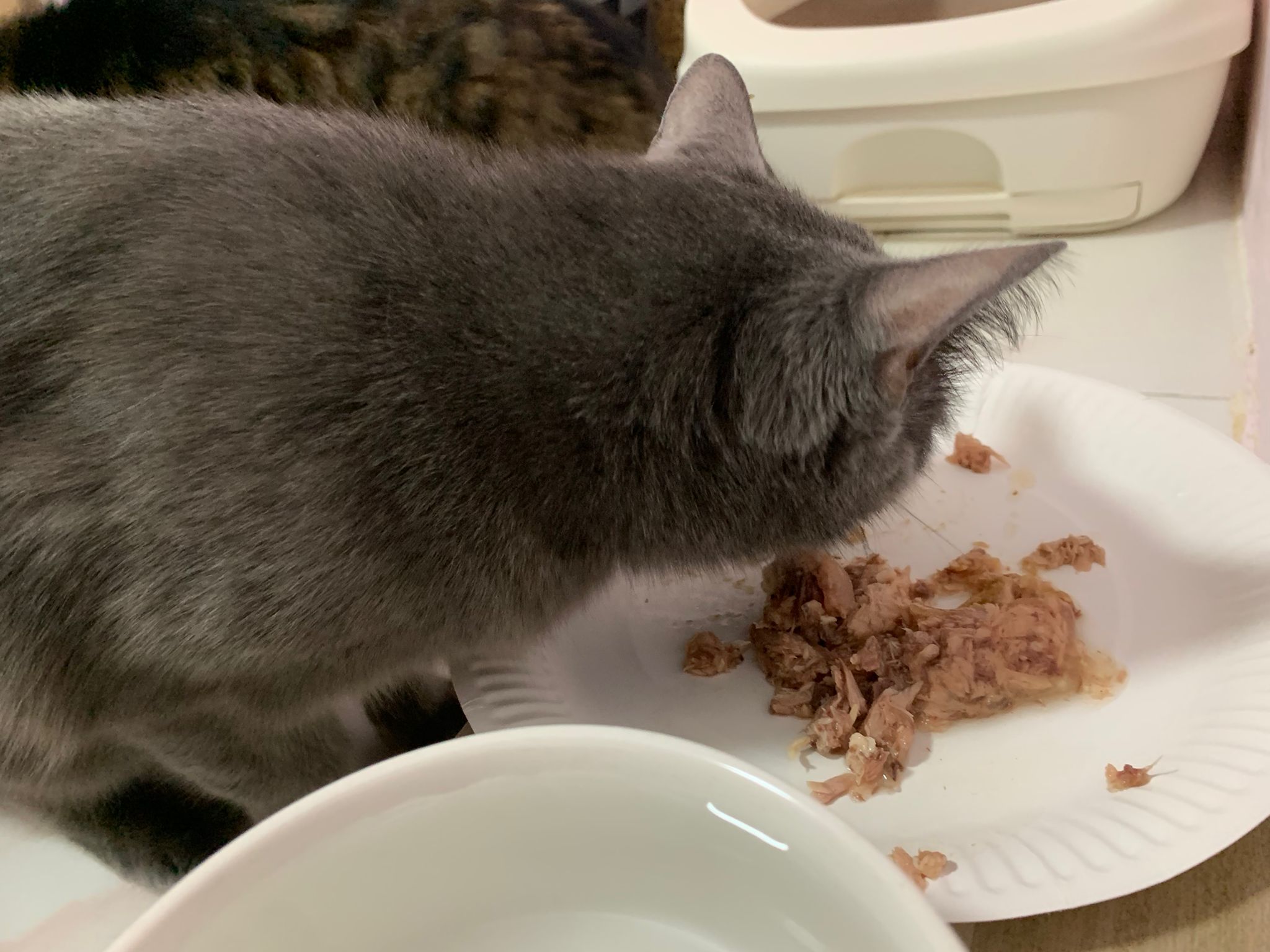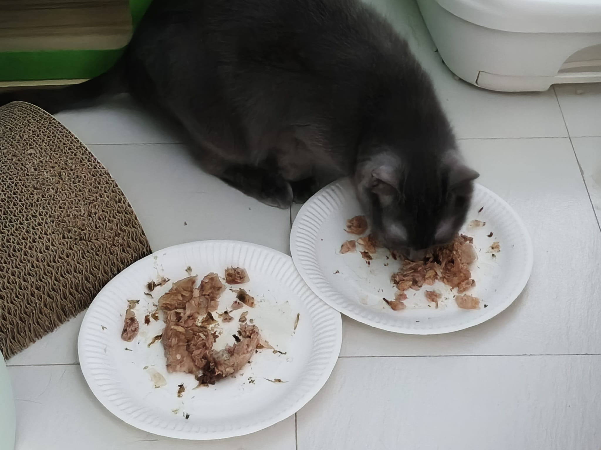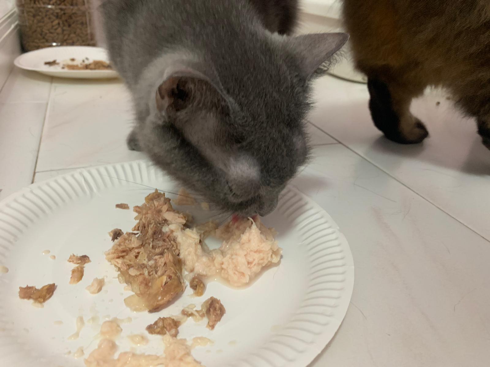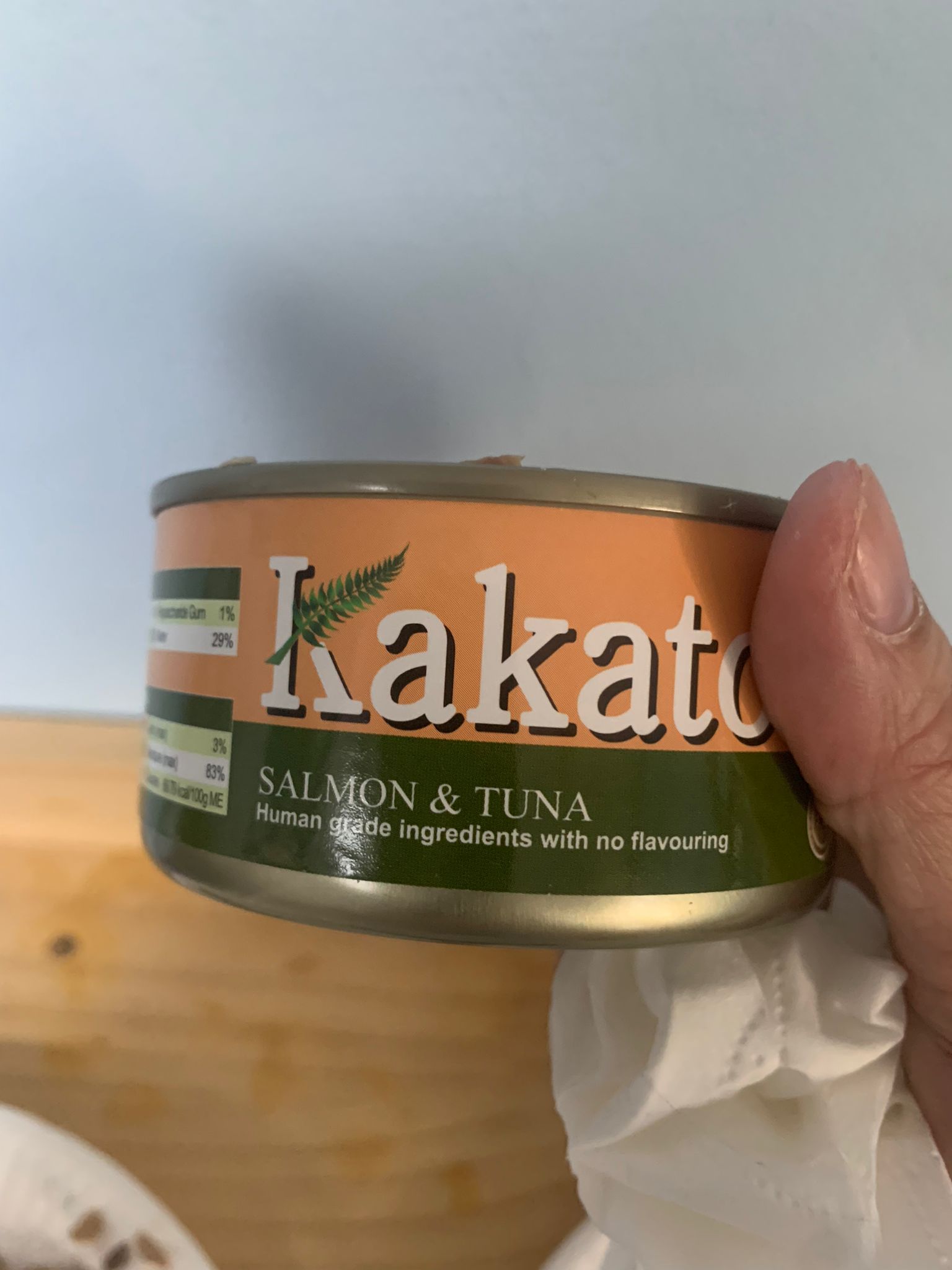 Serve a can of tuna w salmon, and a can of tuna w white fish. Not sure which plate/ flavour, but they don’t really like one of the flavour.