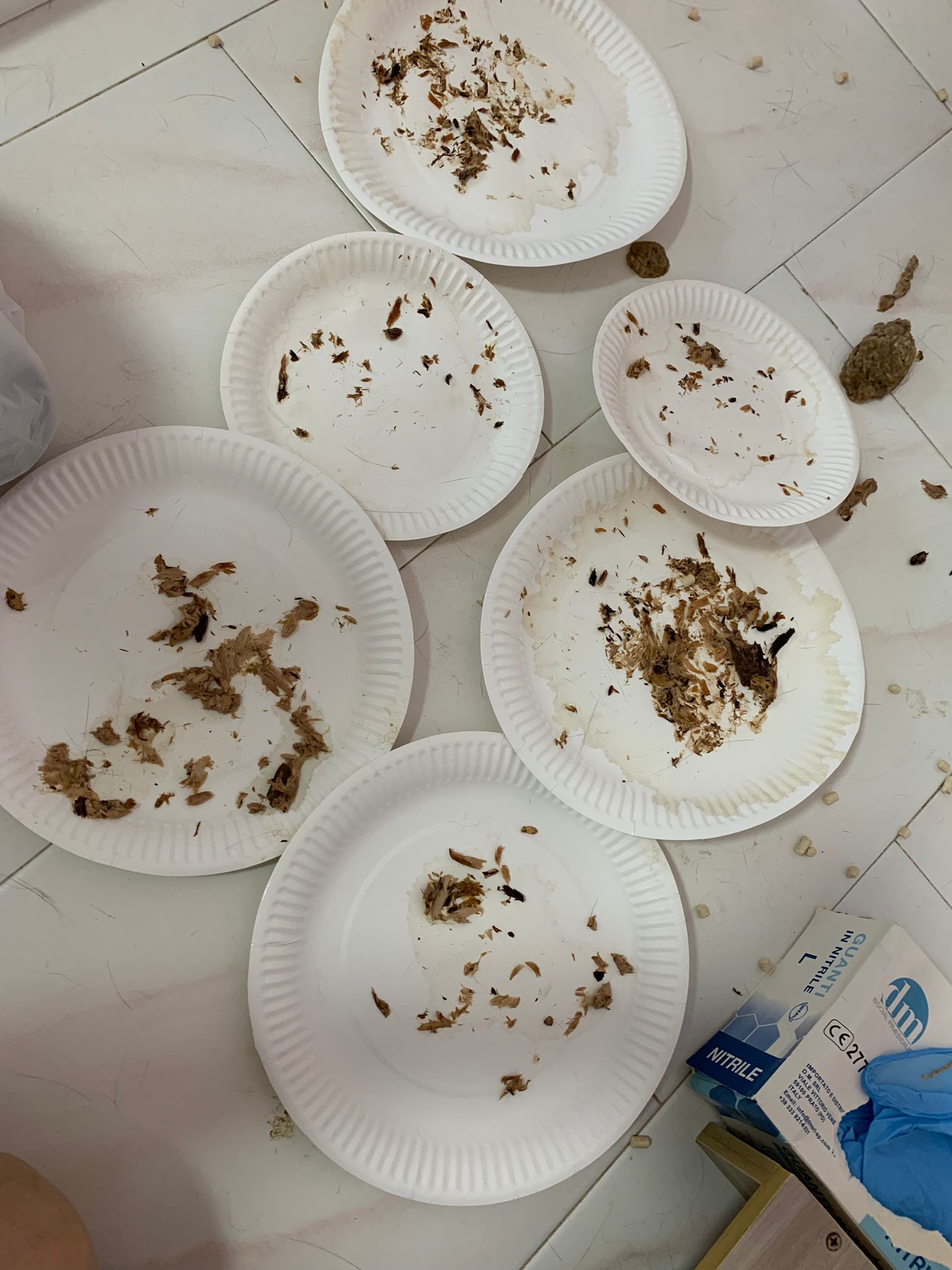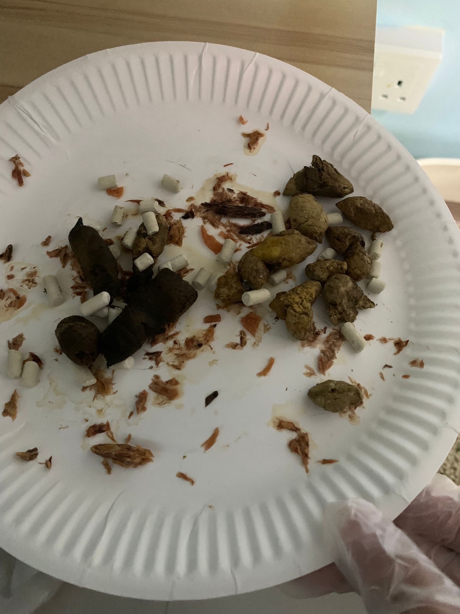 Morning; food all clear. 2 sets of poo. Colour both look ok 5/10.
