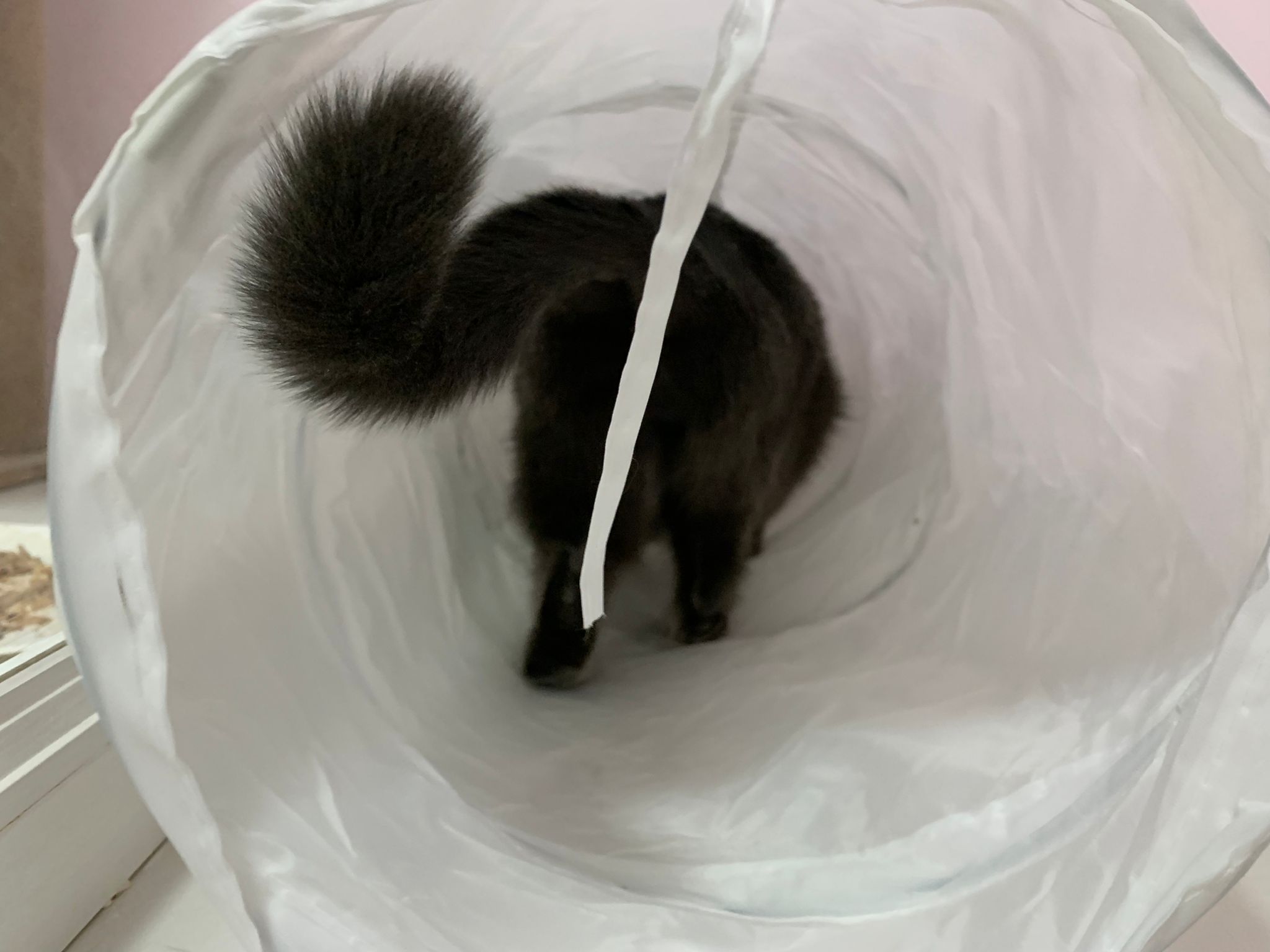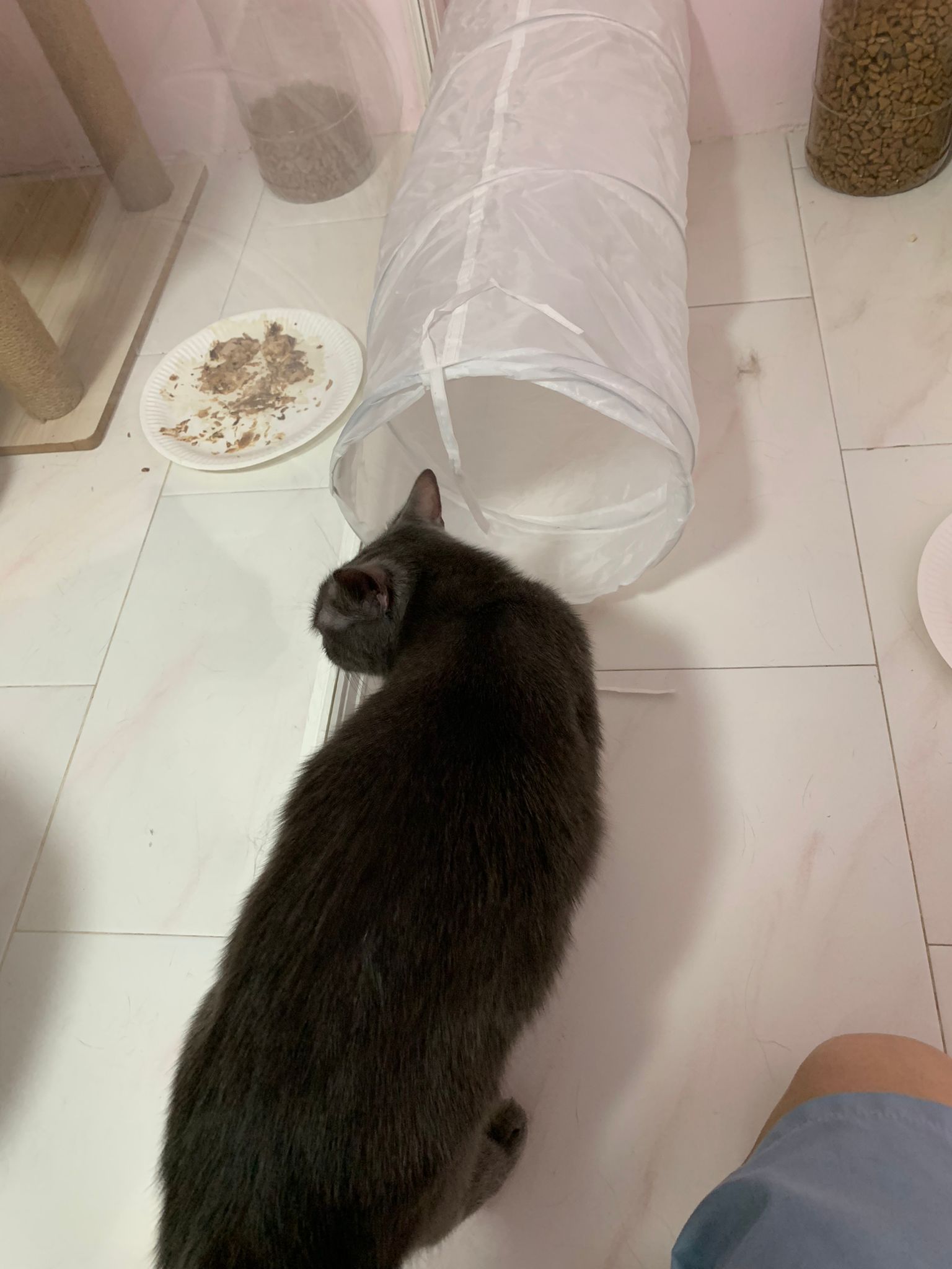 9pm+: didn’t eat a lot. No further poo. I’m thinking what thing I can let them play .. cos the new tunnel only one day useful life. Serve tuna w chicken for tonight.