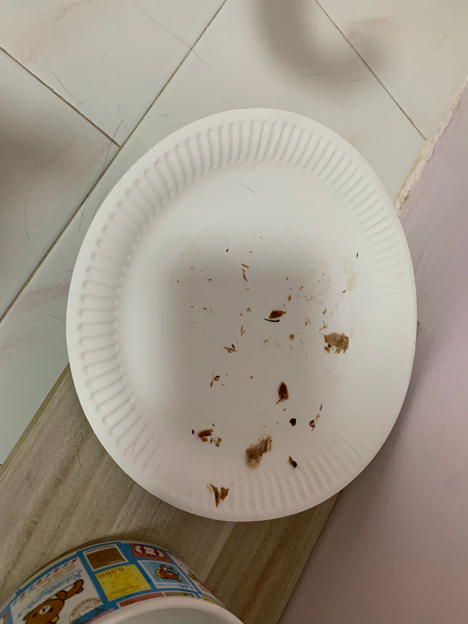 9Am+: room in a mess. Ha. The bin so dirty so everyone got to wait. Scrub all. Put a fresh pack of unicharm.