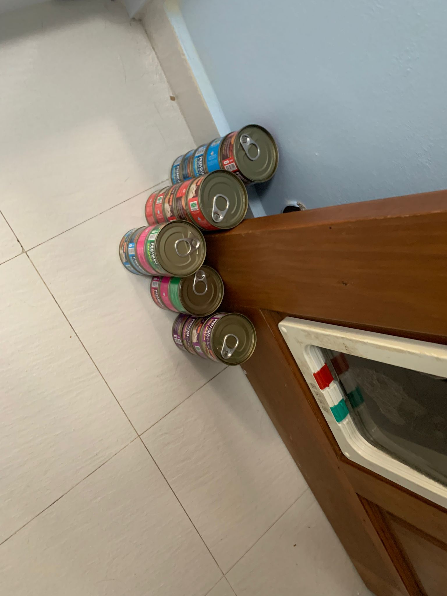 I have to put all the can food on floor cos I scare the cans fell n hit Simba