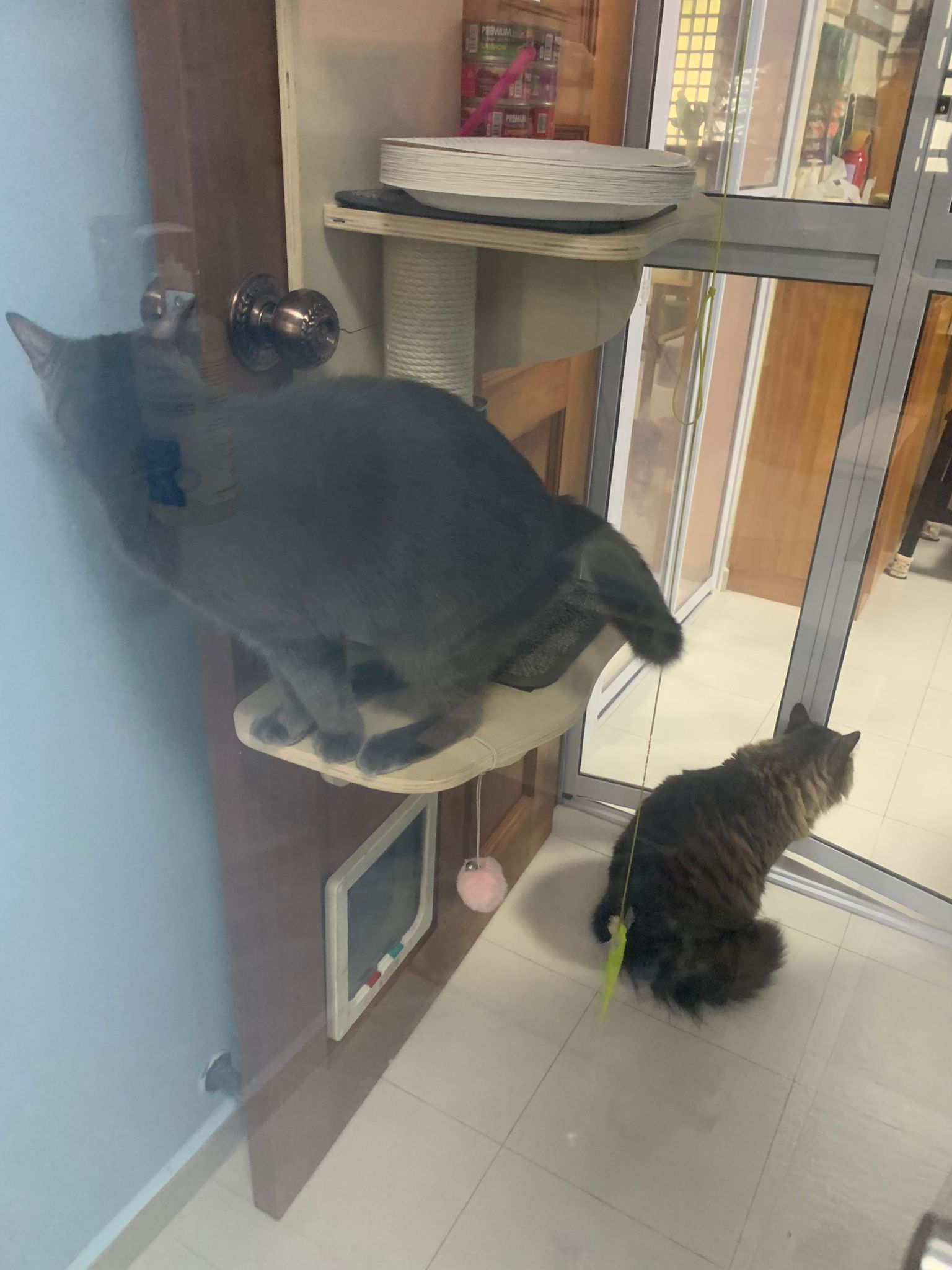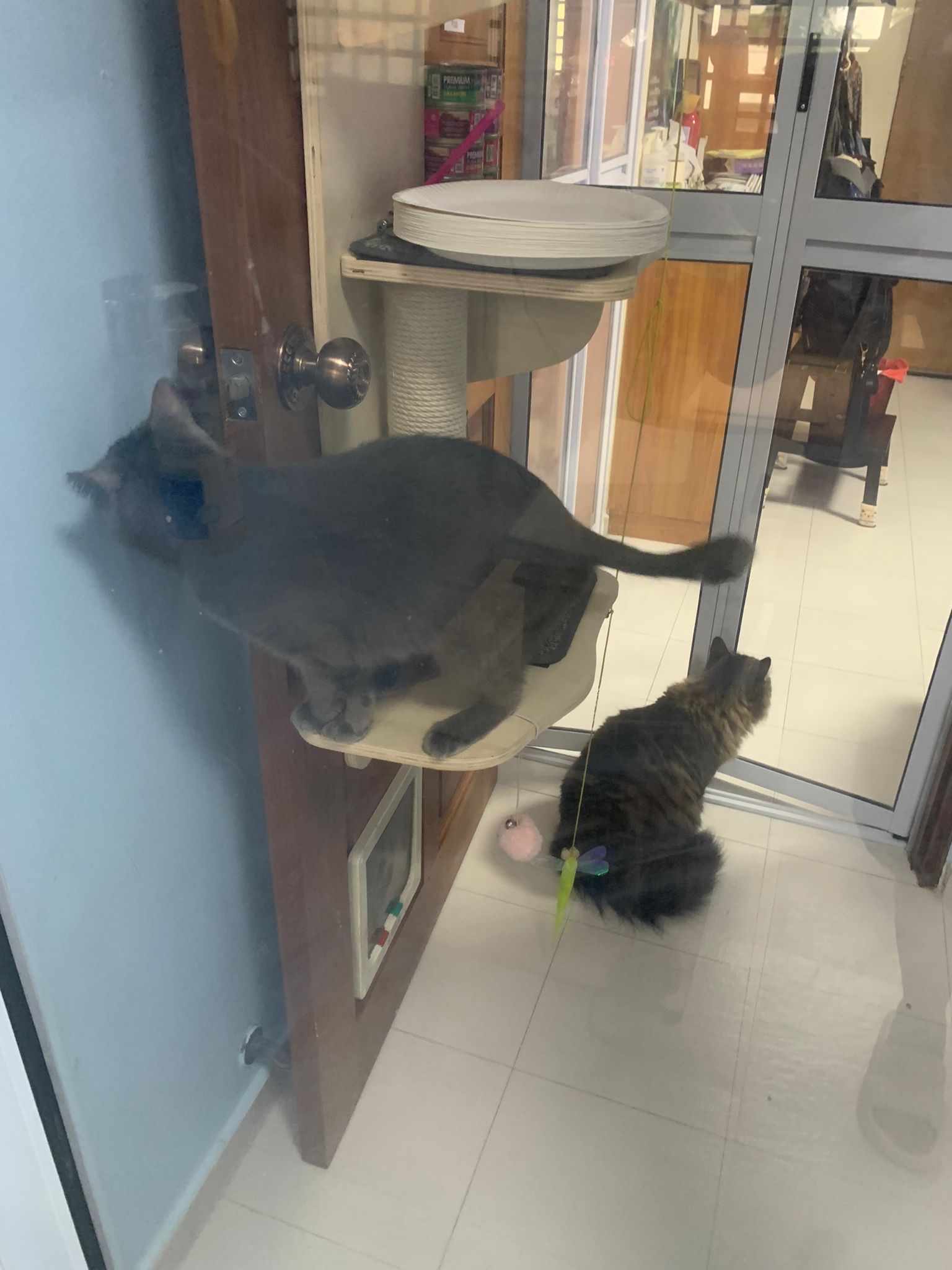 These 2 will go green condo to laZe ard and both come meow meow meow at the door when I step in.