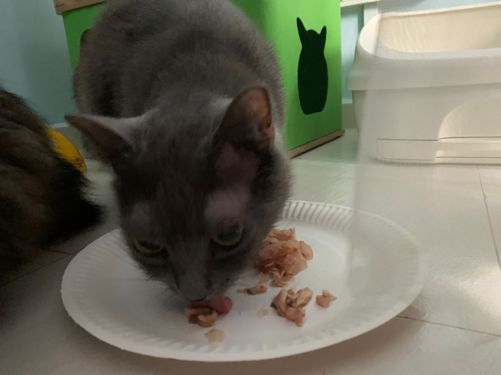 9Am+: Serve tuna w chicken w sparkles chicken food – didn’t eat as much as yesterday le. Poo 1.75/10. Think later give them the Japanese food