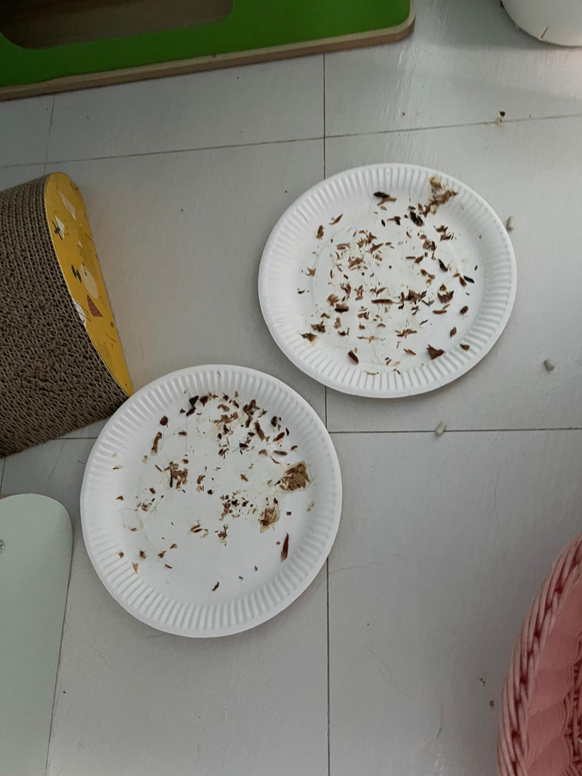 3.30pm: food got touched but maybe 50%? I serve them a aixia food. Rumi like