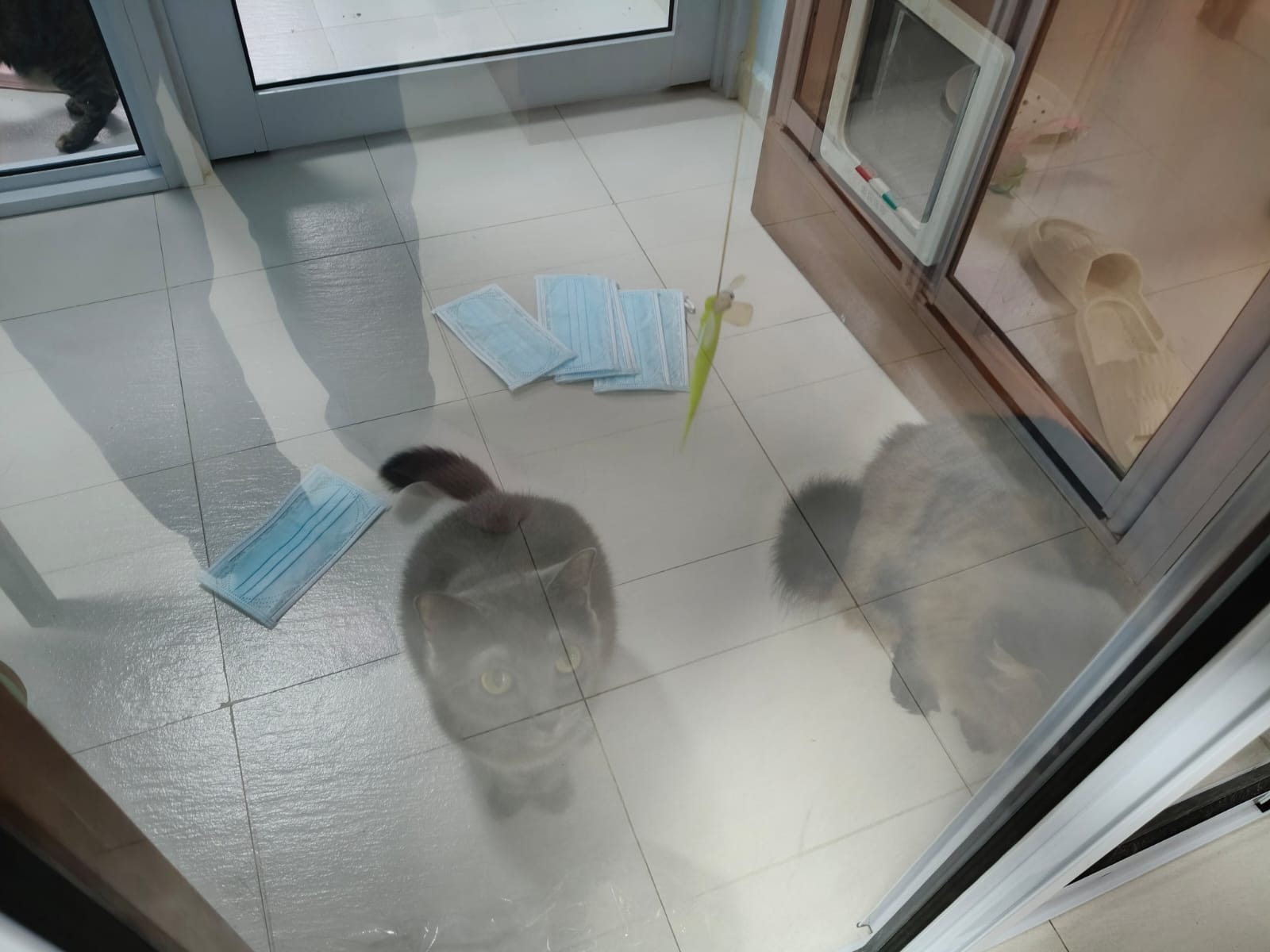 7.30am: disaster. They play w the spare litter. All over the floor. they will circle me for some time till they know I’m bz clearing the floor and they wait one side.