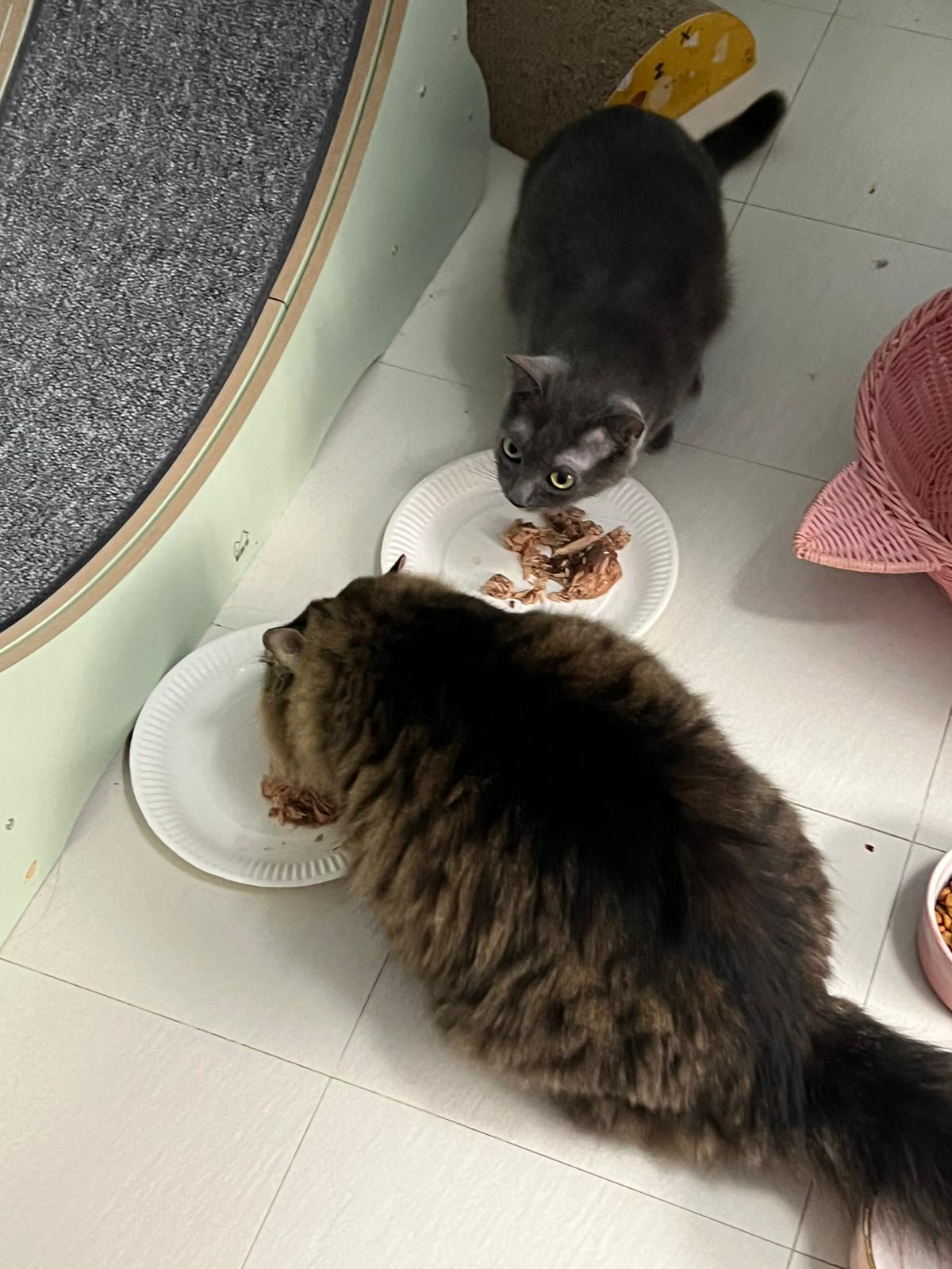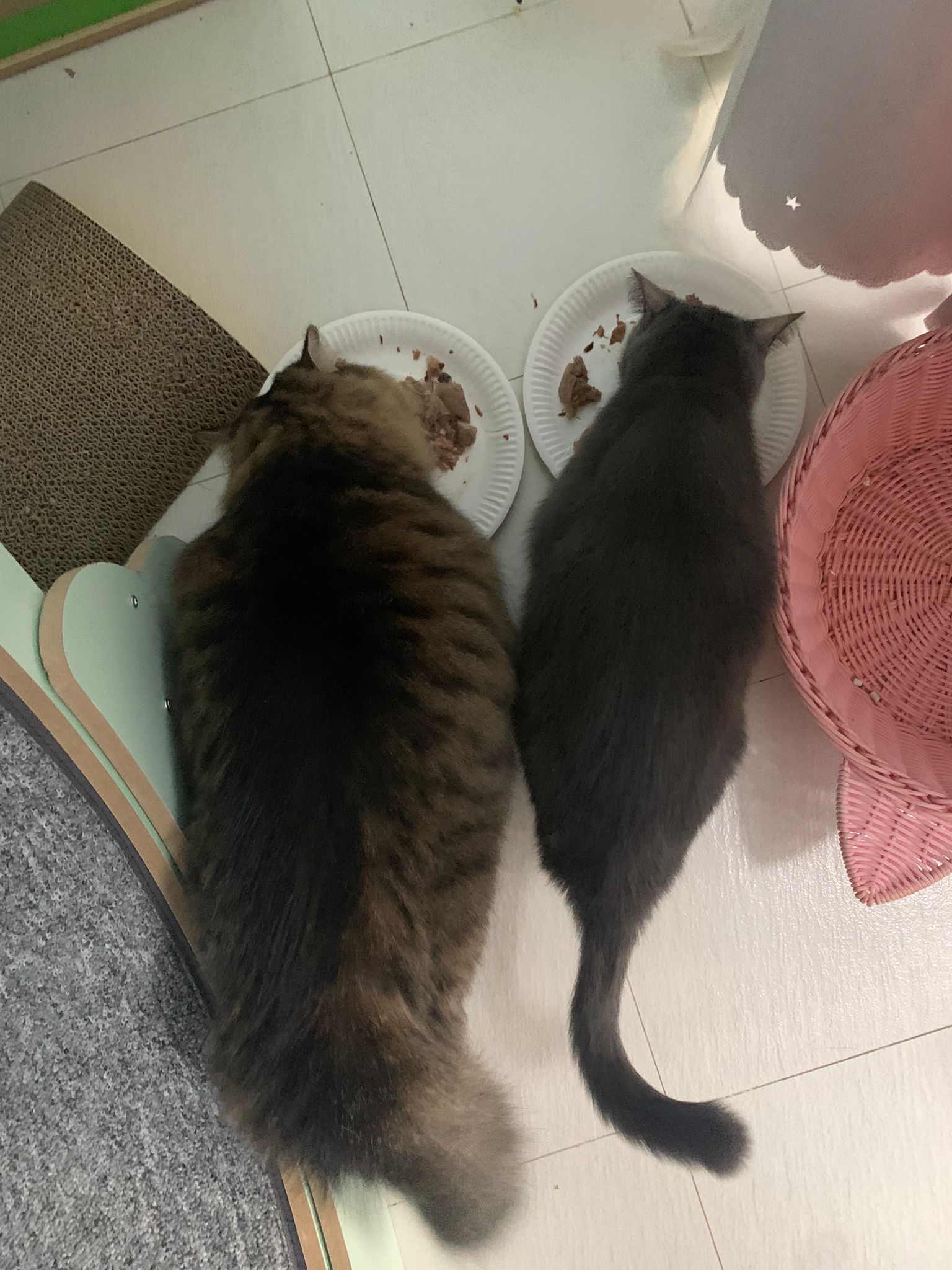 9Am+: both Sei long long, keep circling jo. Food didn’t clear that well, ha Brit didn’t finish. jo serve them breakfast. No poo. They like the feline natural chicken feast