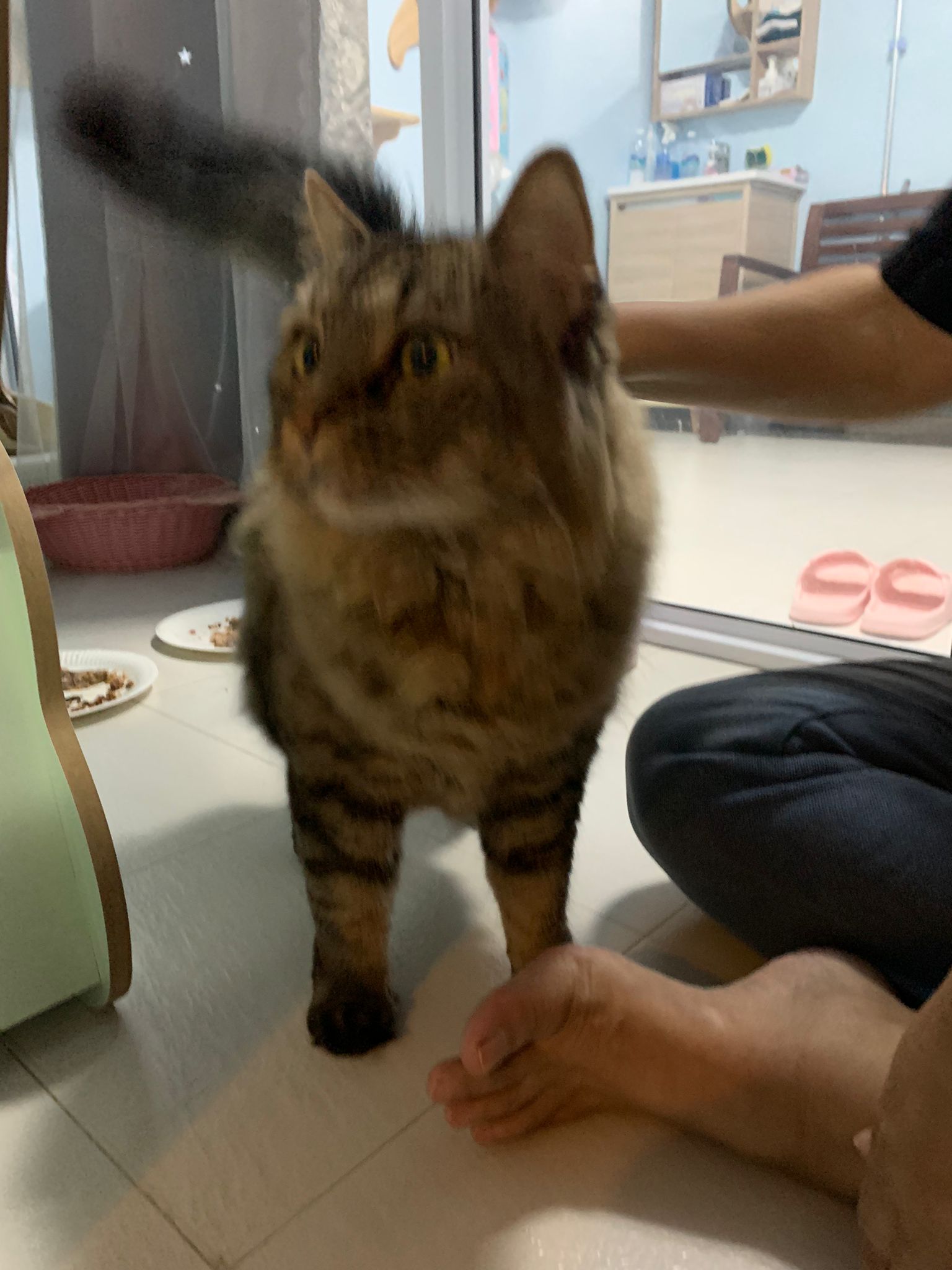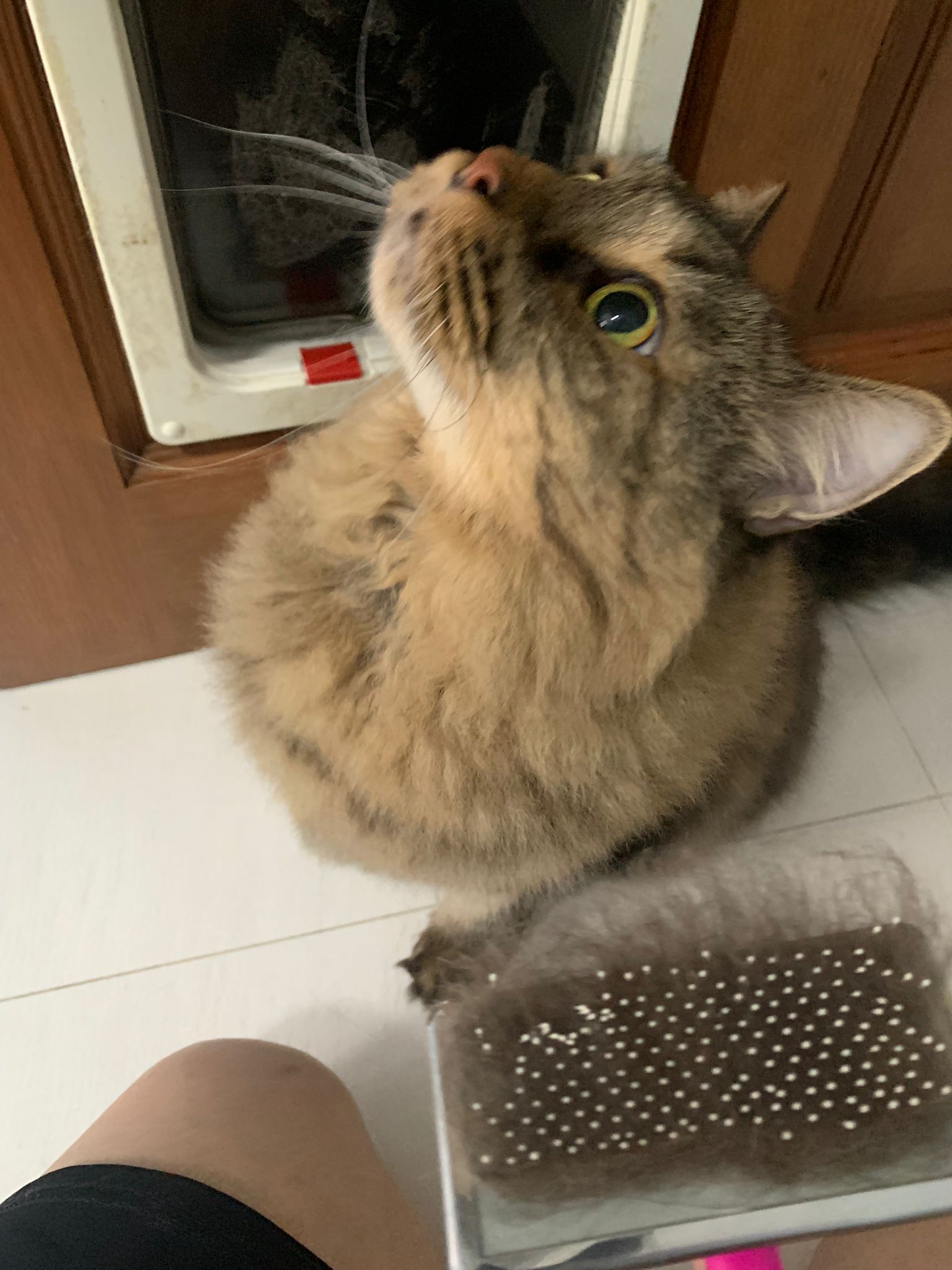 10am+: right butt like got matted fur. Brush his fur for very long. And when it’s rumi turn he come again n again. The 2 of them will circle me and we pat pat, sayang n pat pat again. I believe they remembered they r 猫房 cats.