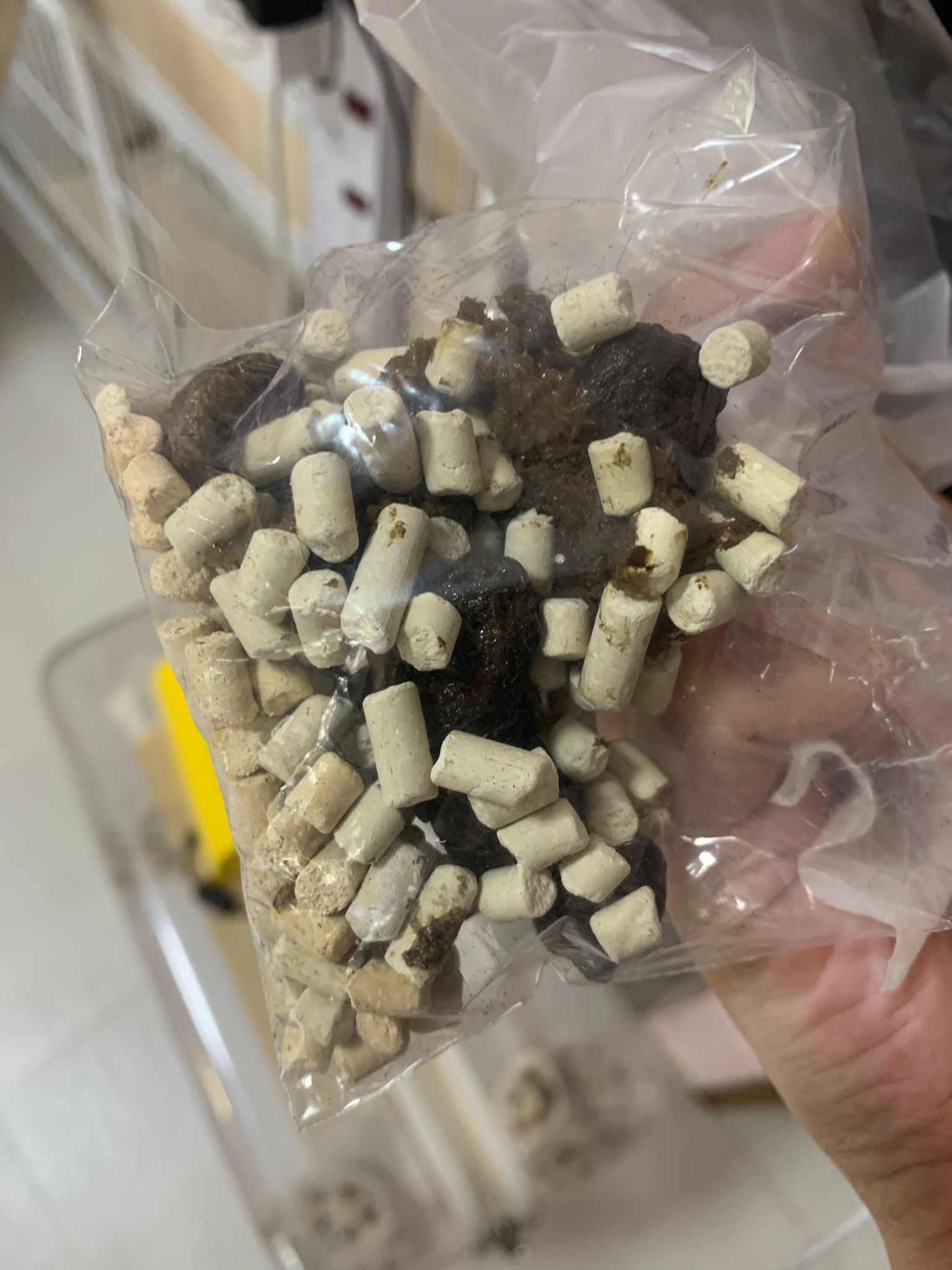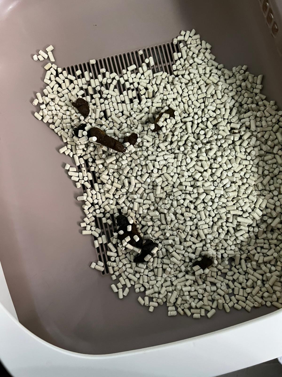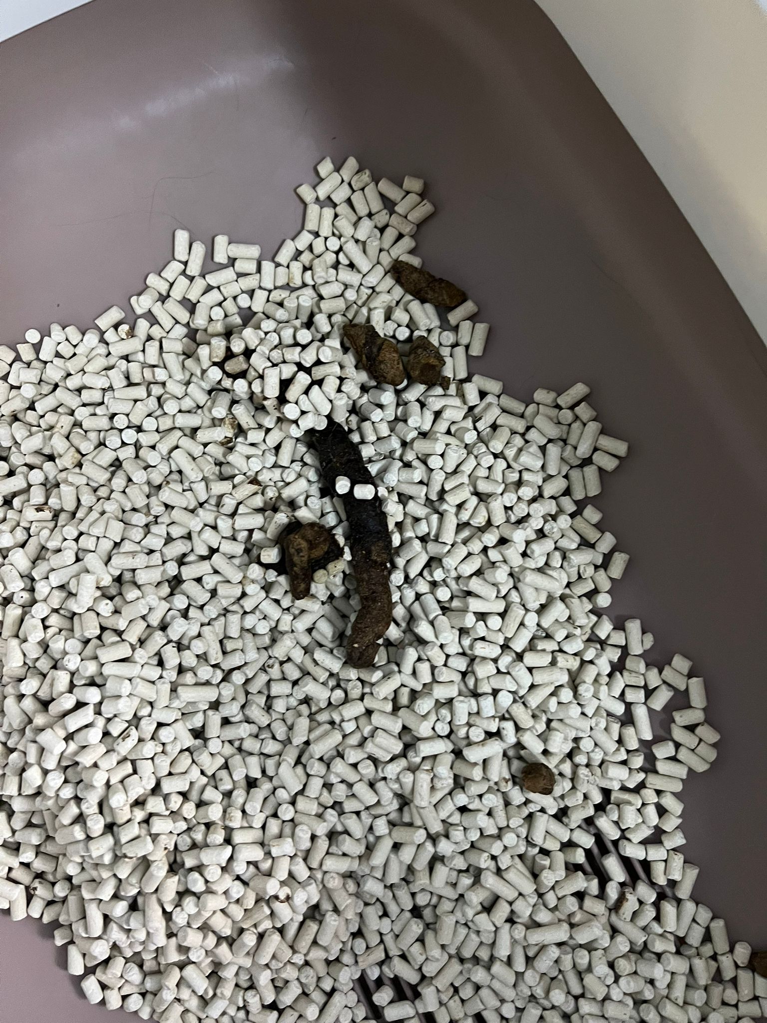Bin: got 2 sets of poo, one powdery one, both looks dry and hard but 5/10 not hard leh.