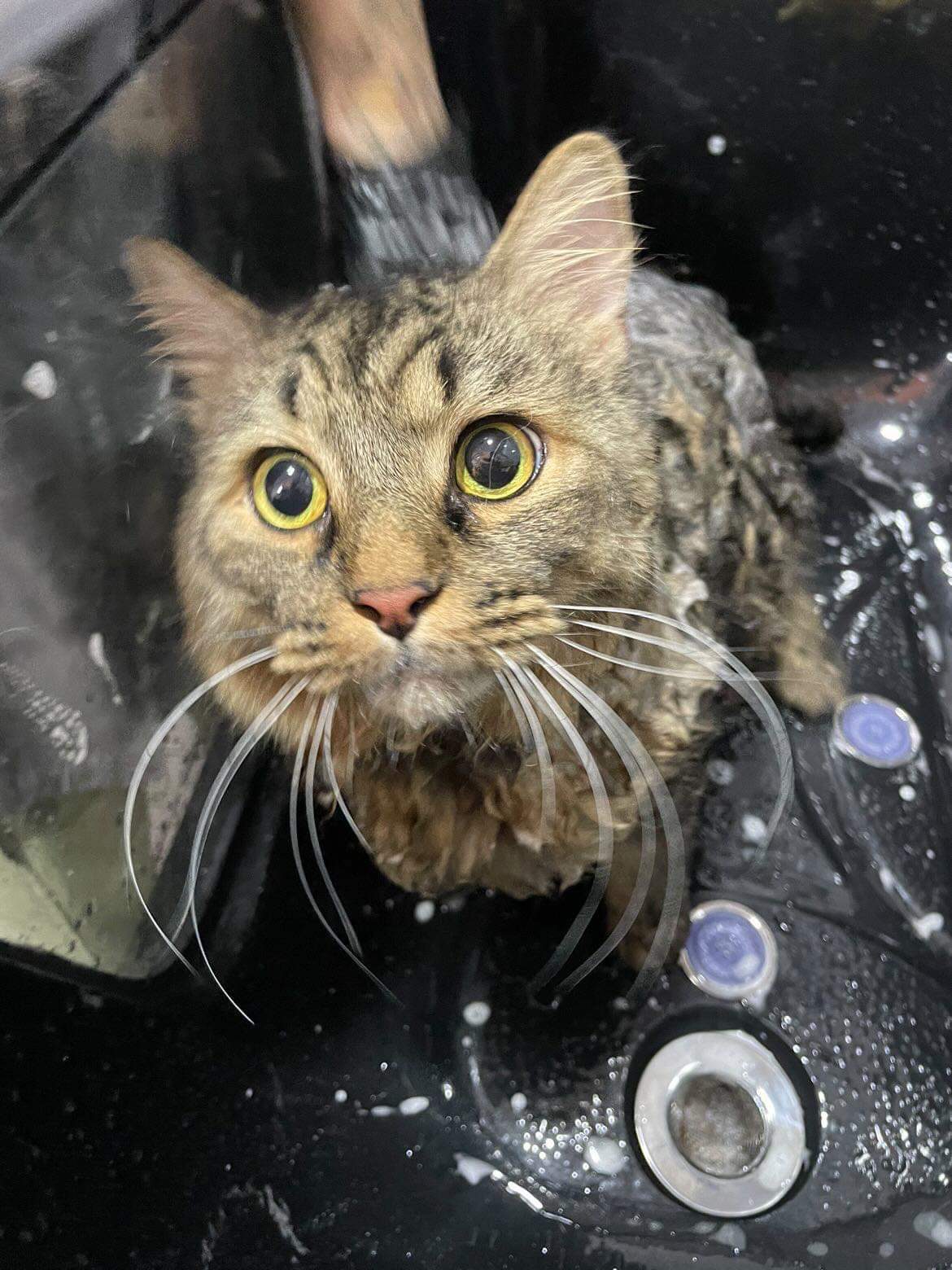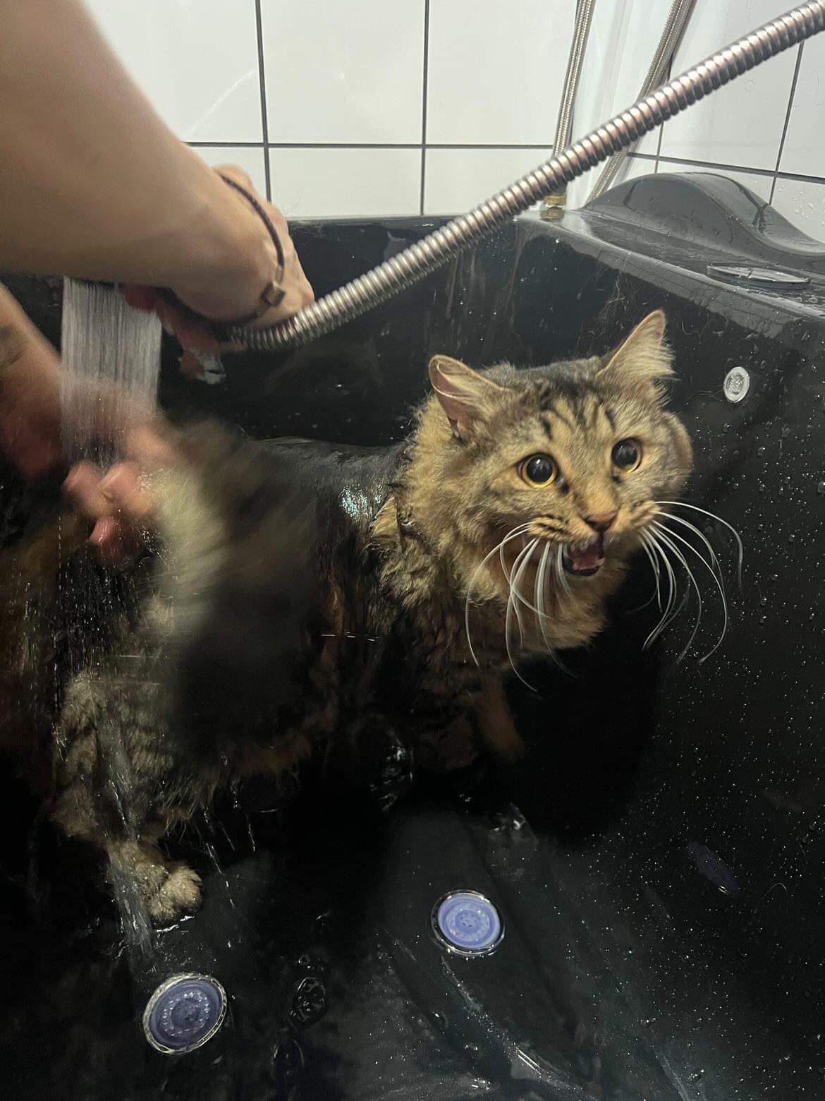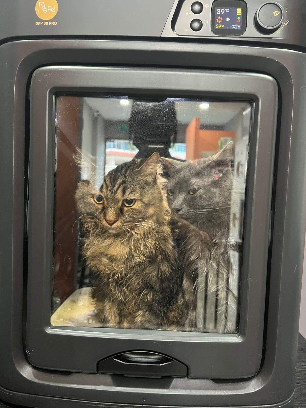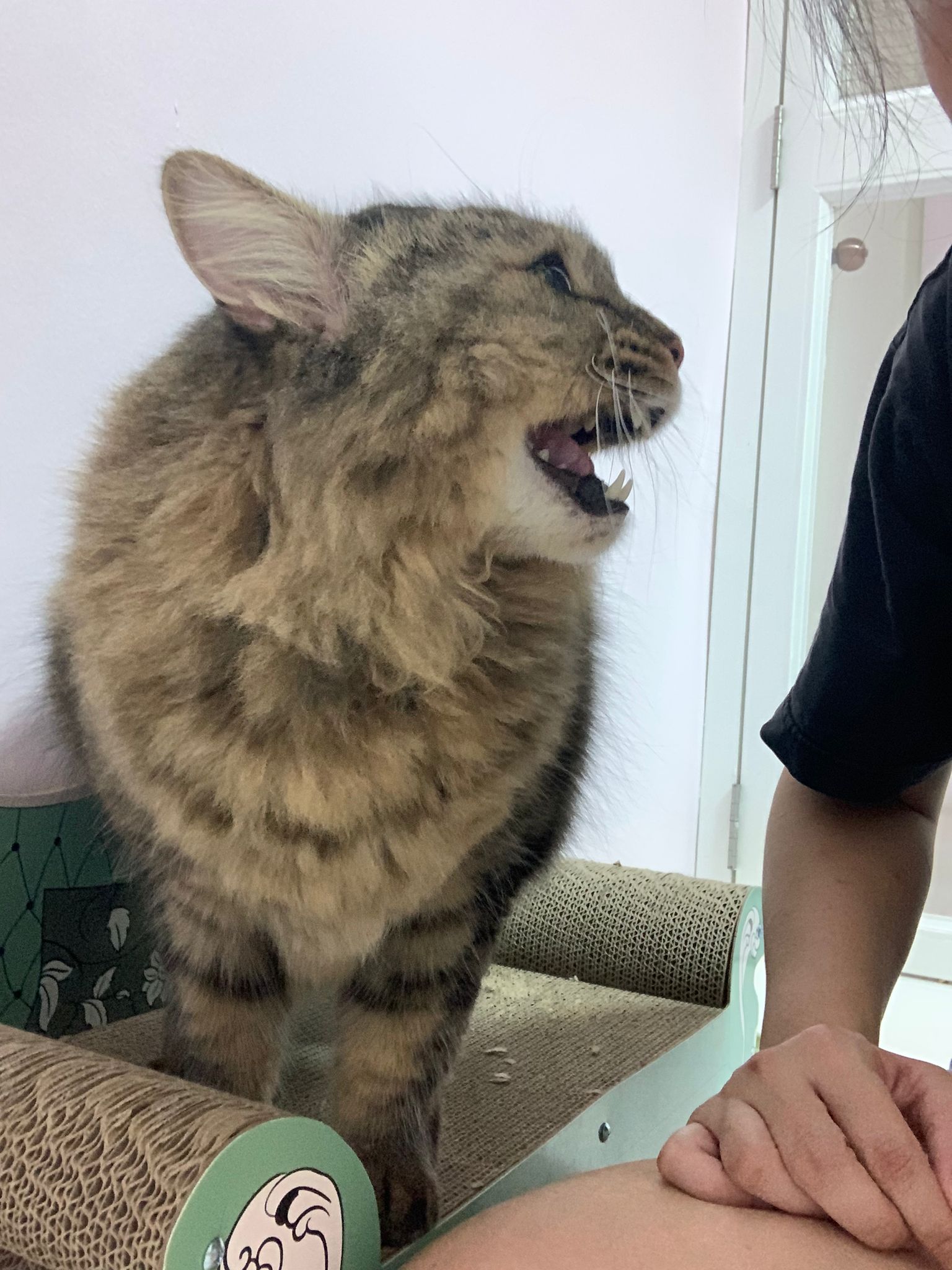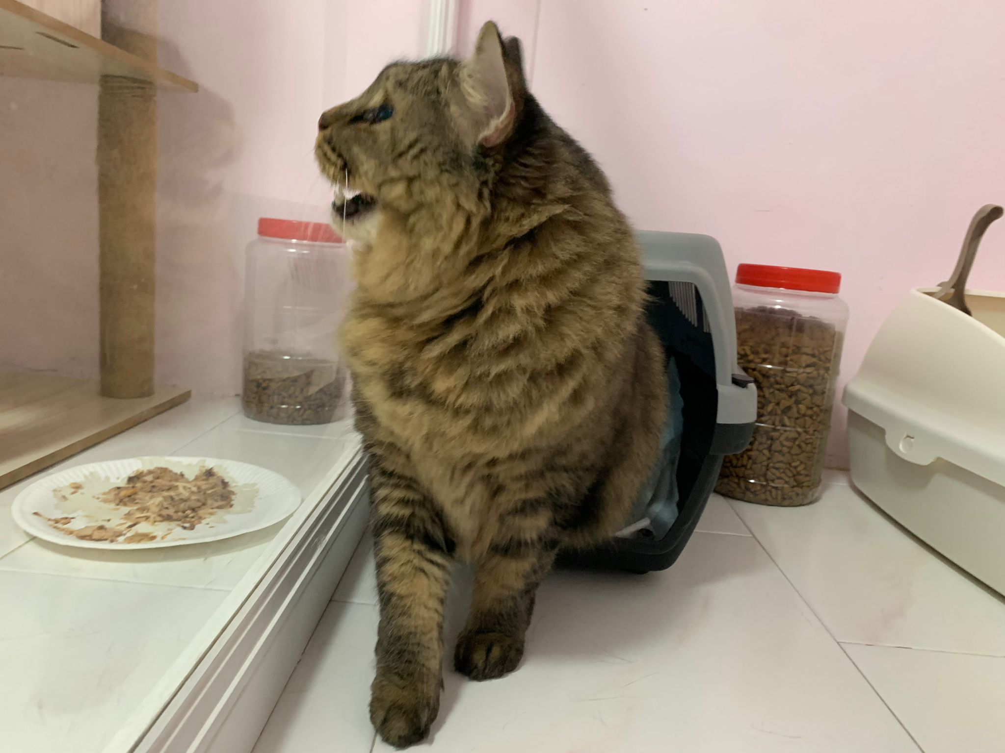 8.00pm: the carrier so dirty inside got stain and so much fur and everything w Simba sitting inside. Remove from room and clean up. Their food almost all finished. Simba not fierce but keep hissing.