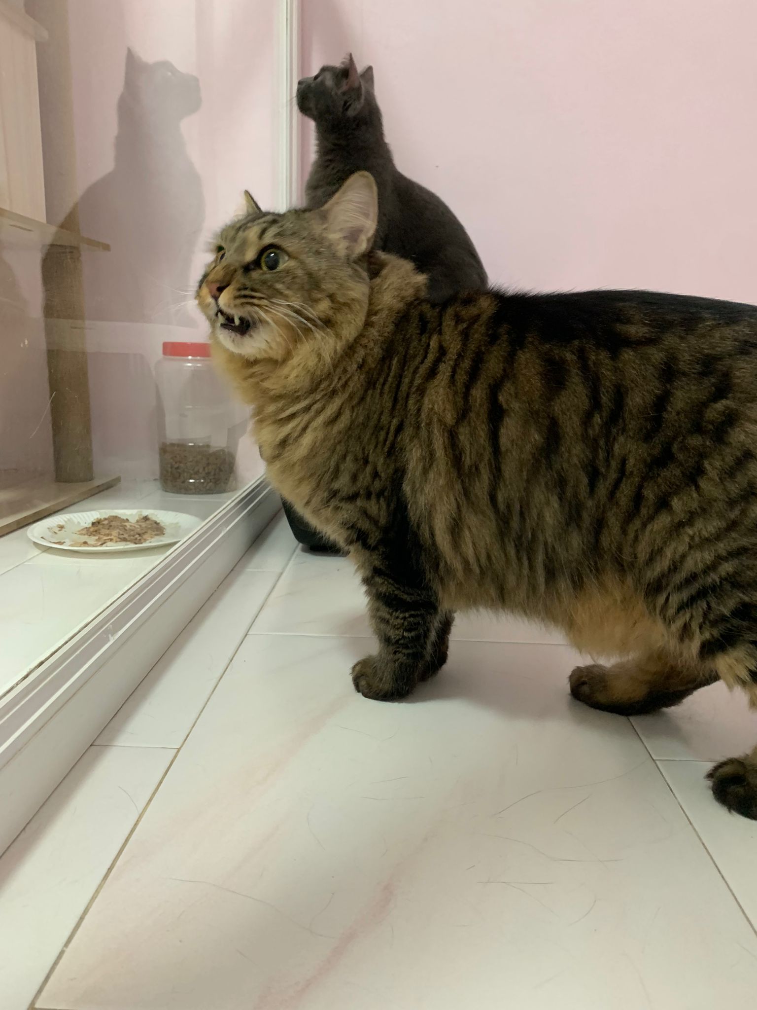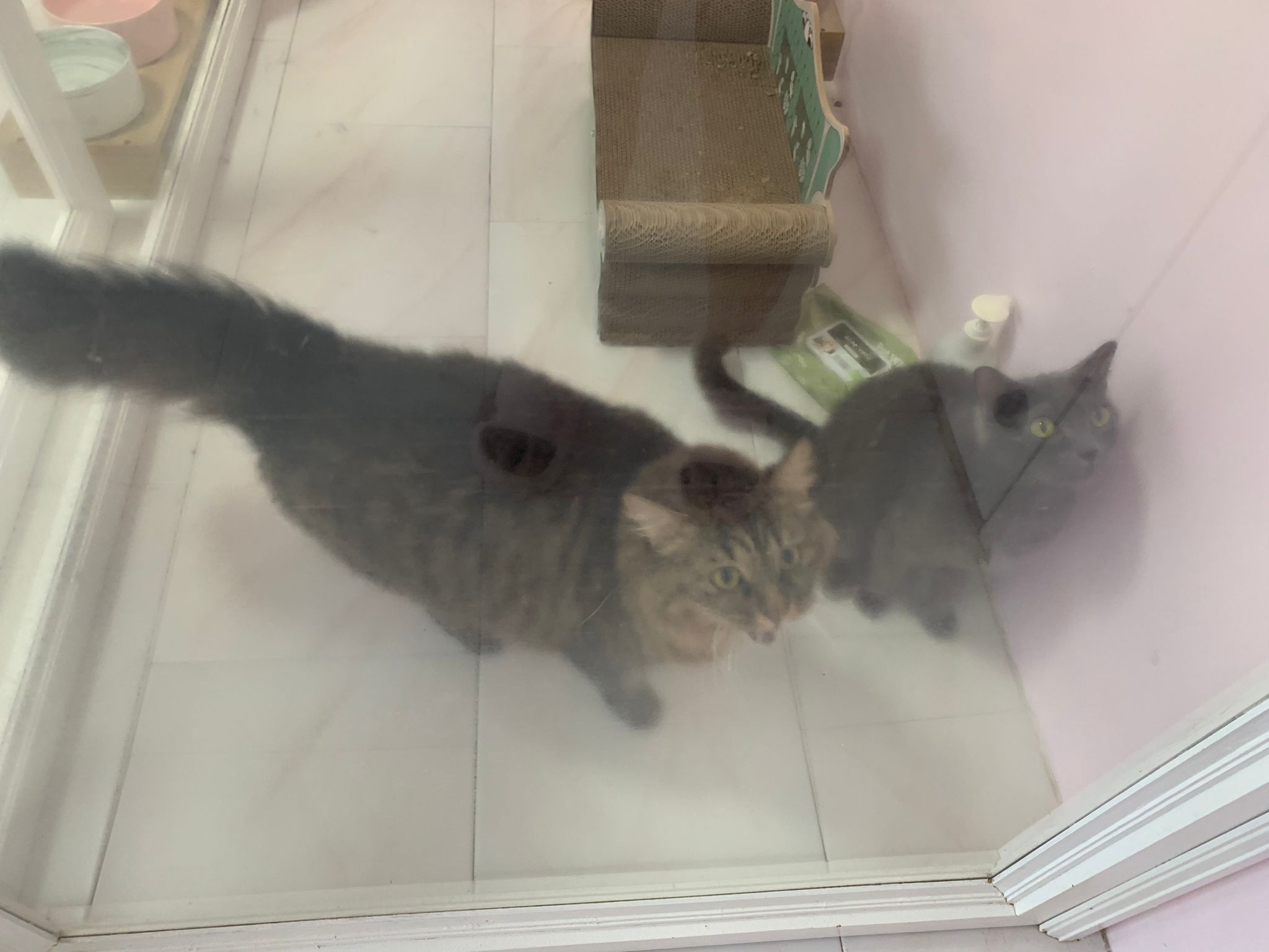 Duno why both of them didn’t meow, but sitting looking at each other like discussing something. I told them Tmr major cleaning day will let them go bear museum to play
