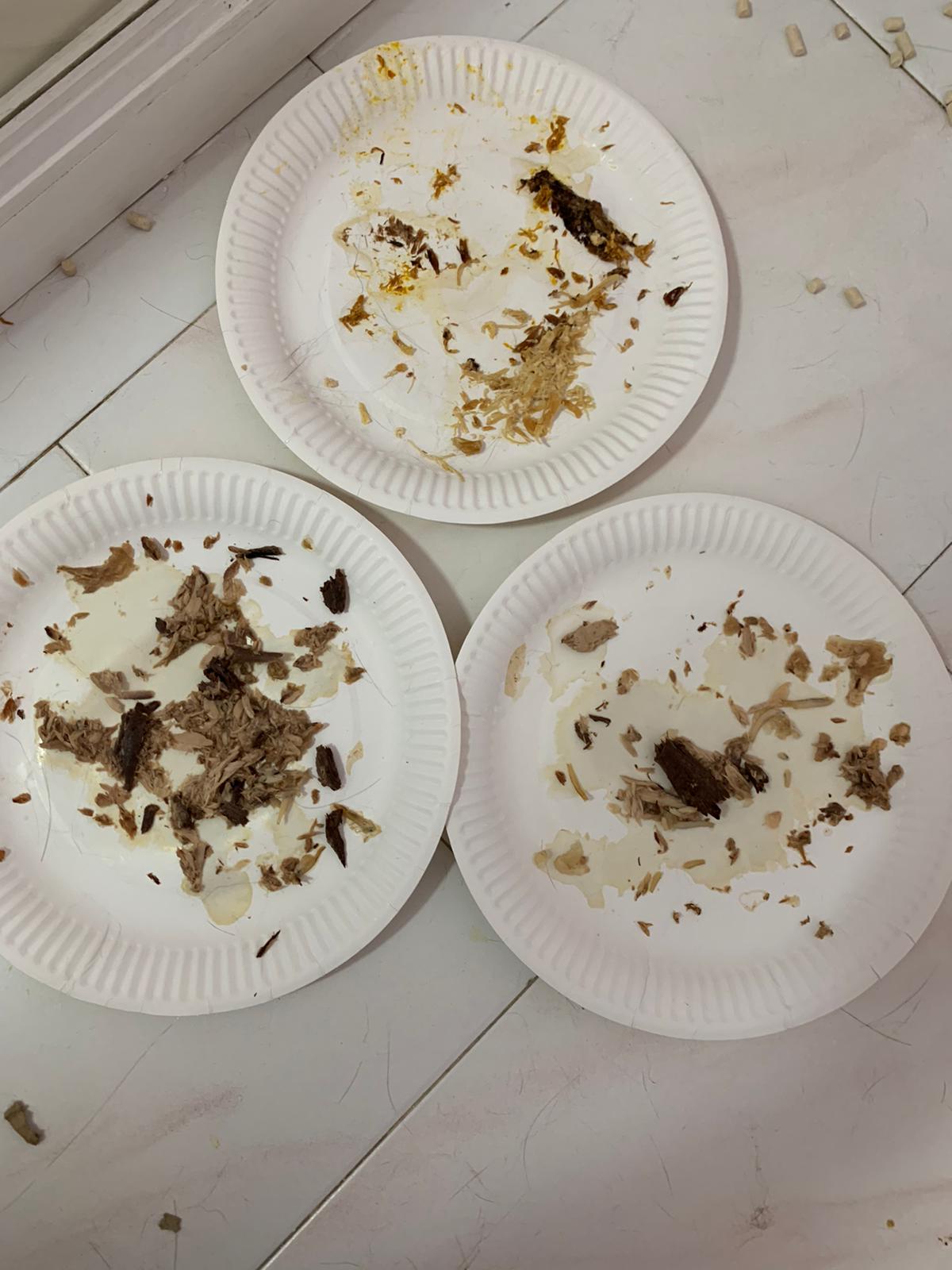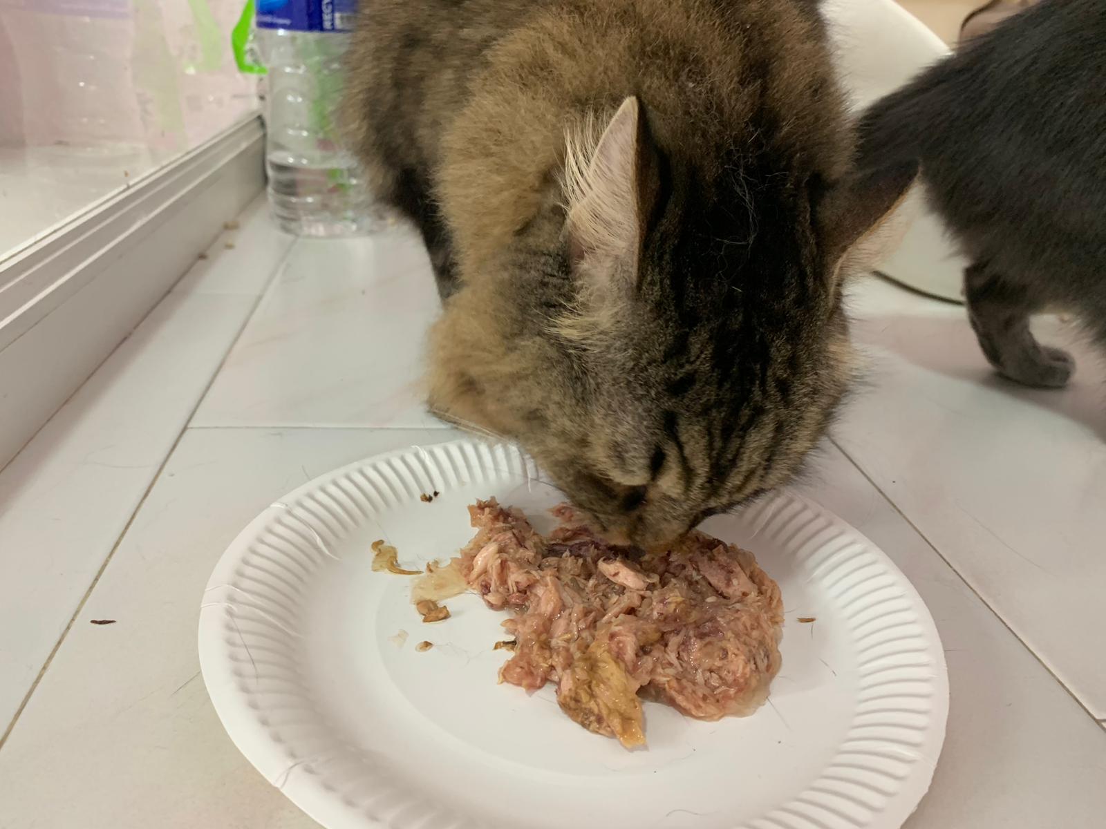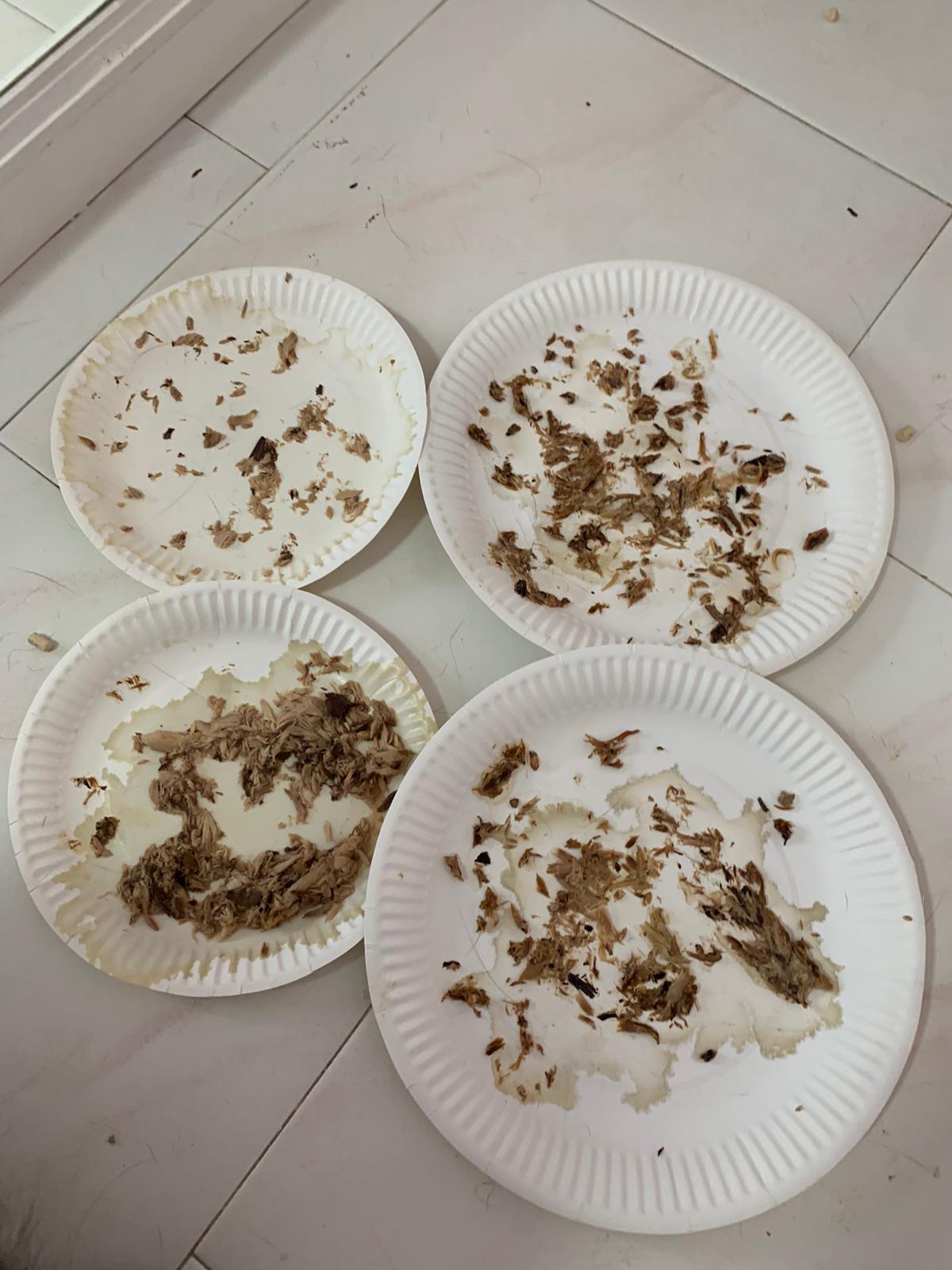 Serve a can of tuna w salmon, and a can of tuna w white fish. Not sure which plate/ flavour, but they don’t really like one of the flavour.