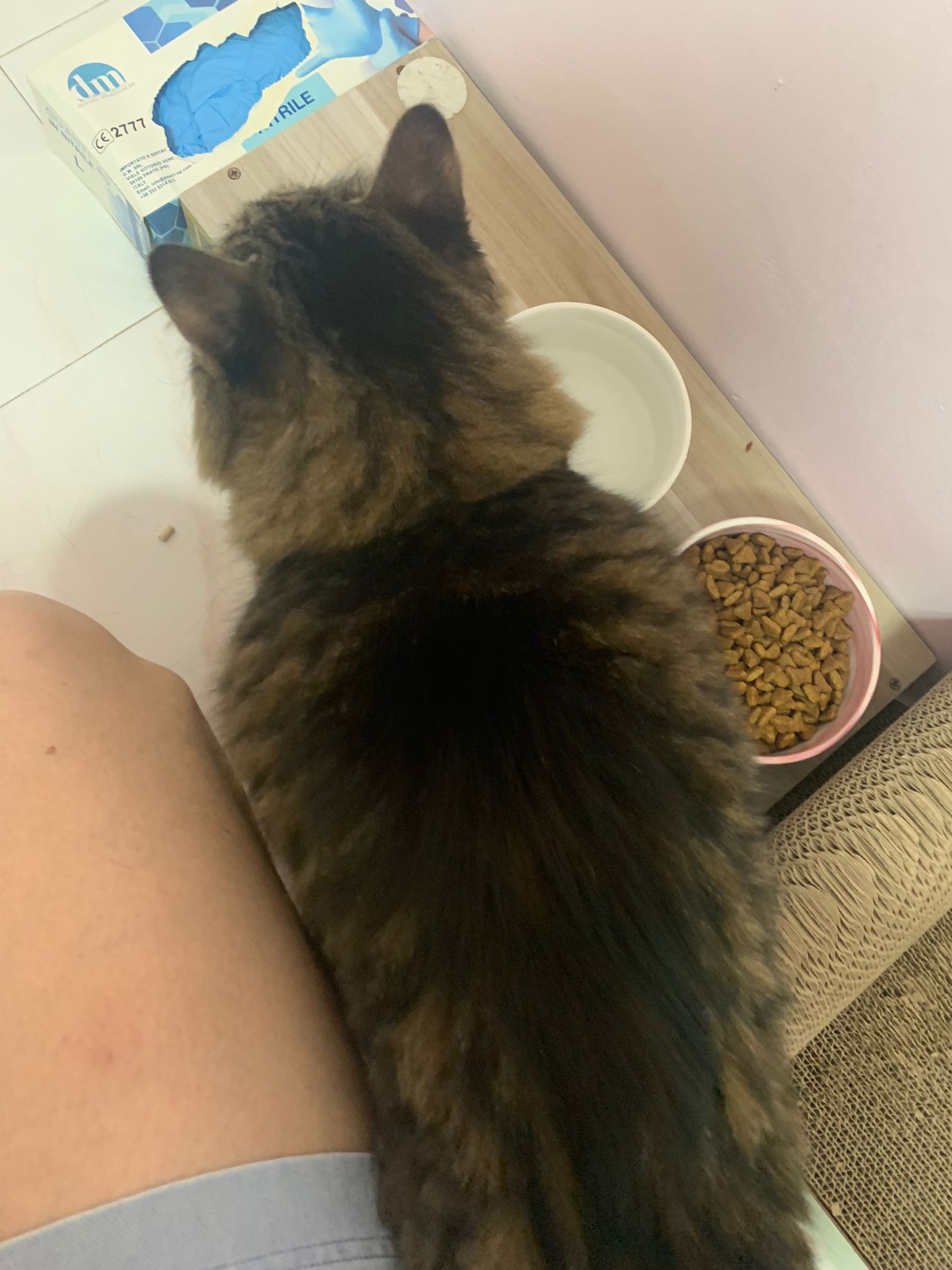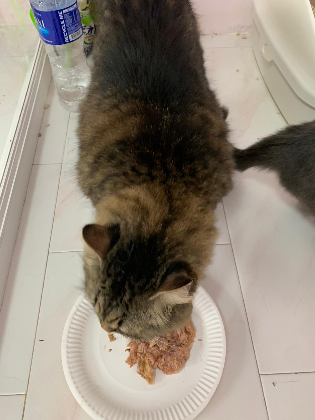 3.30pm: food got touched but maybe 50%? I serve them a aixia food. Simba will rub against me but not keen on food