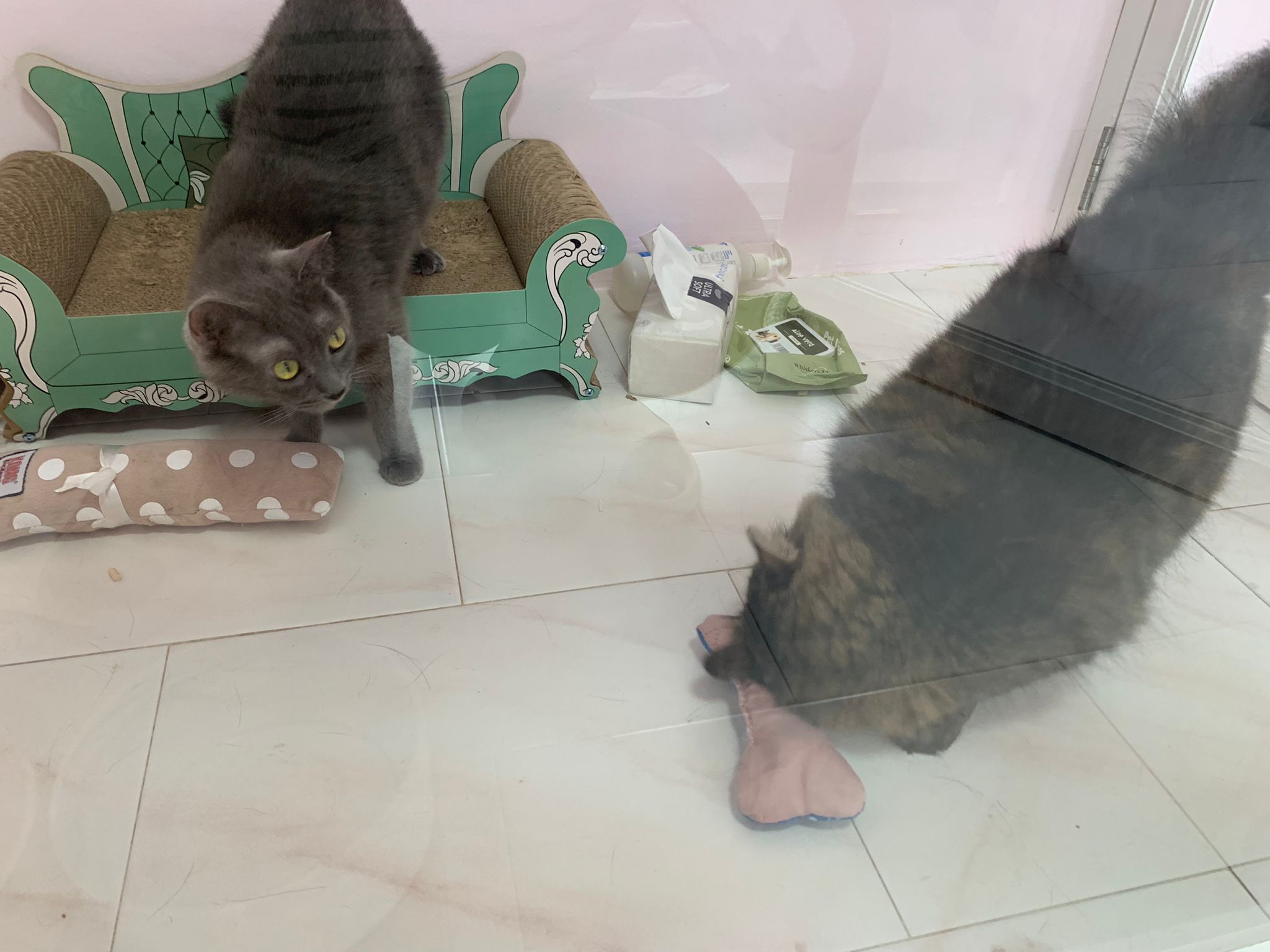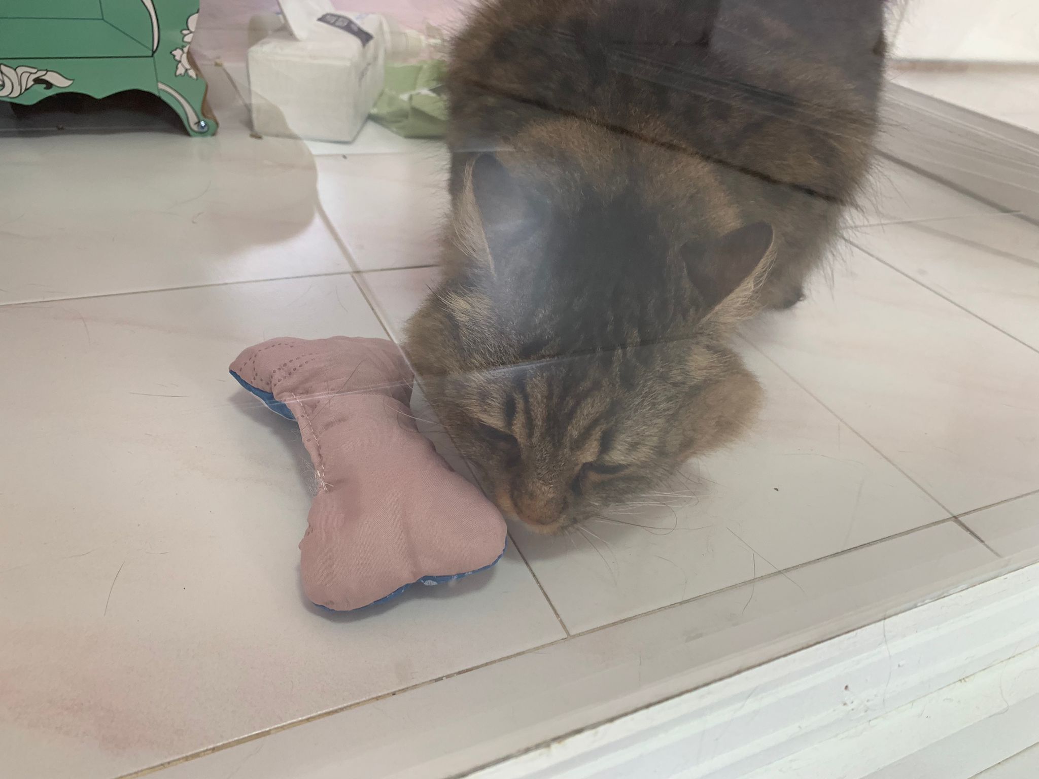 1pm+: happy kid see me back I give Simba and rumi 2 catnip toys. Simba hug the small one and roll on the floor.