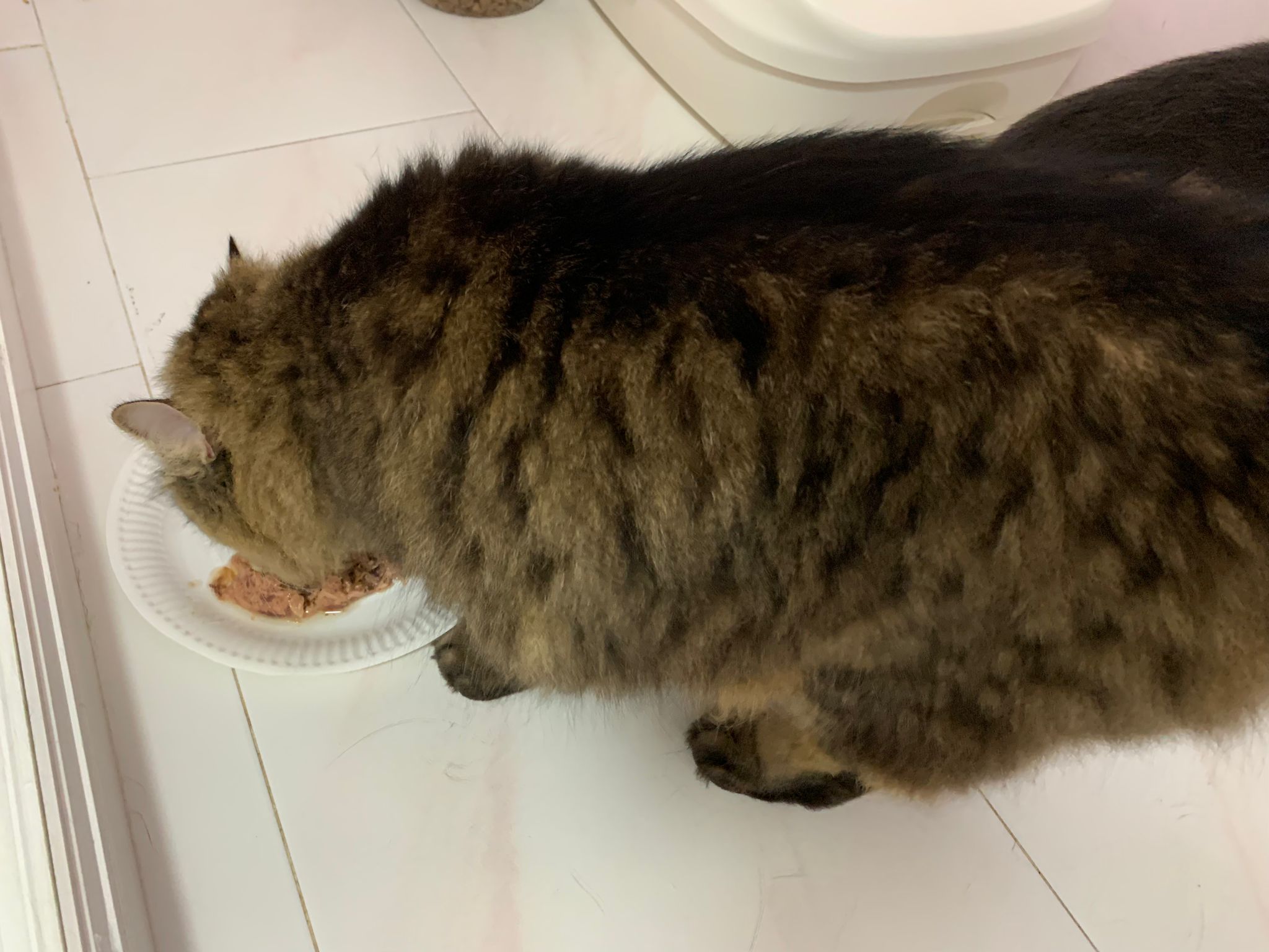 5.05am: is him loh. Keep meowing non stop. They like tuna w chicken? Cos they Polish that. Serve super early breakfast. I can’t sleep Liao