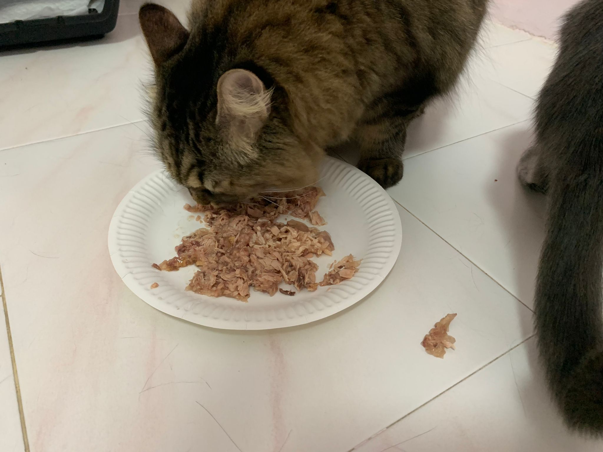 9Am+: Serve tuna w chicken w sparkles chicken food – didn’t eat as much as yesterday le. Poo 1.75/10. Think later give them the Japanese food