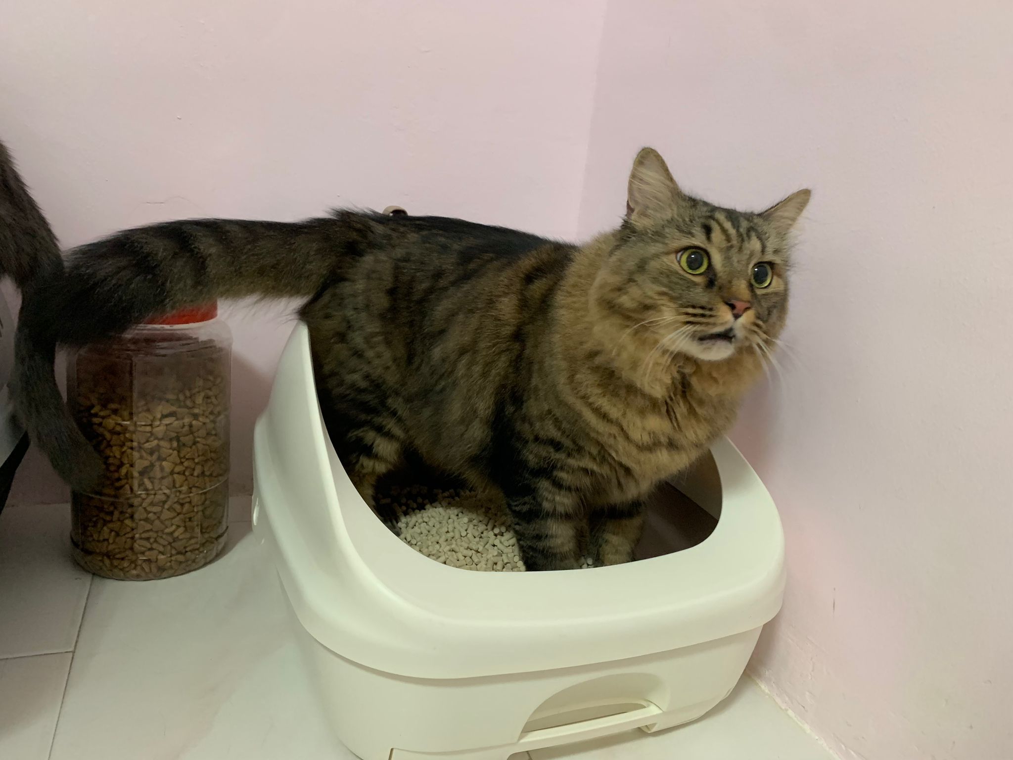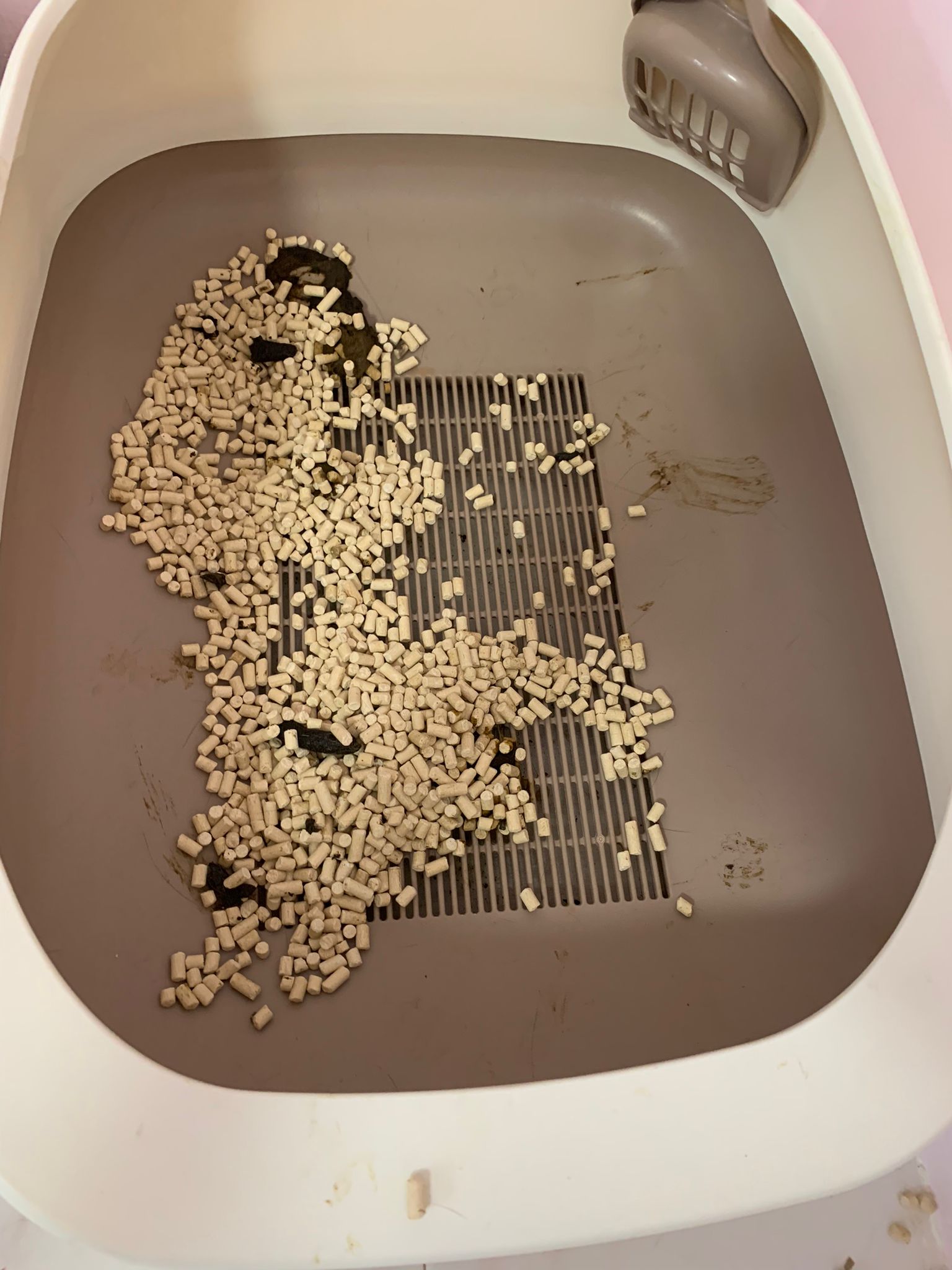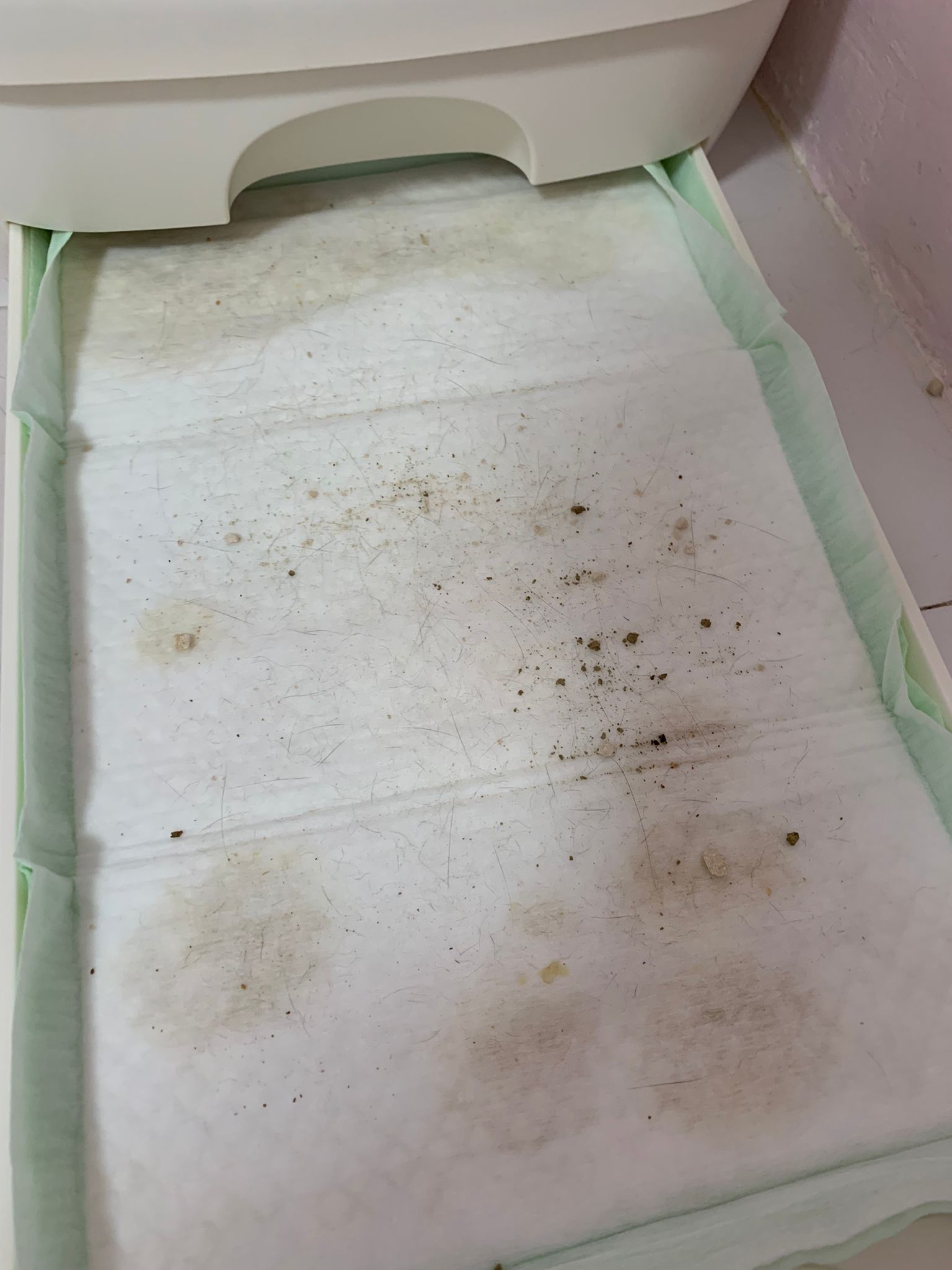 9Am+: room in a mess. Ha. The bin so dirty so everyone got to wait. Scrub all. Put a fresh pack of unicharm. Simba quickly go poo somemore? 4.75/10.