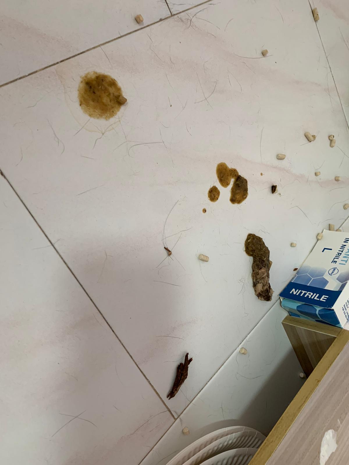 9Am+: serve usual breakfast. got poo and stuff all over the floor. Clean up and he keep running me non stop and meow non stop. I scolding him he also Duno. Still want sayang while keep meow meow meow meow