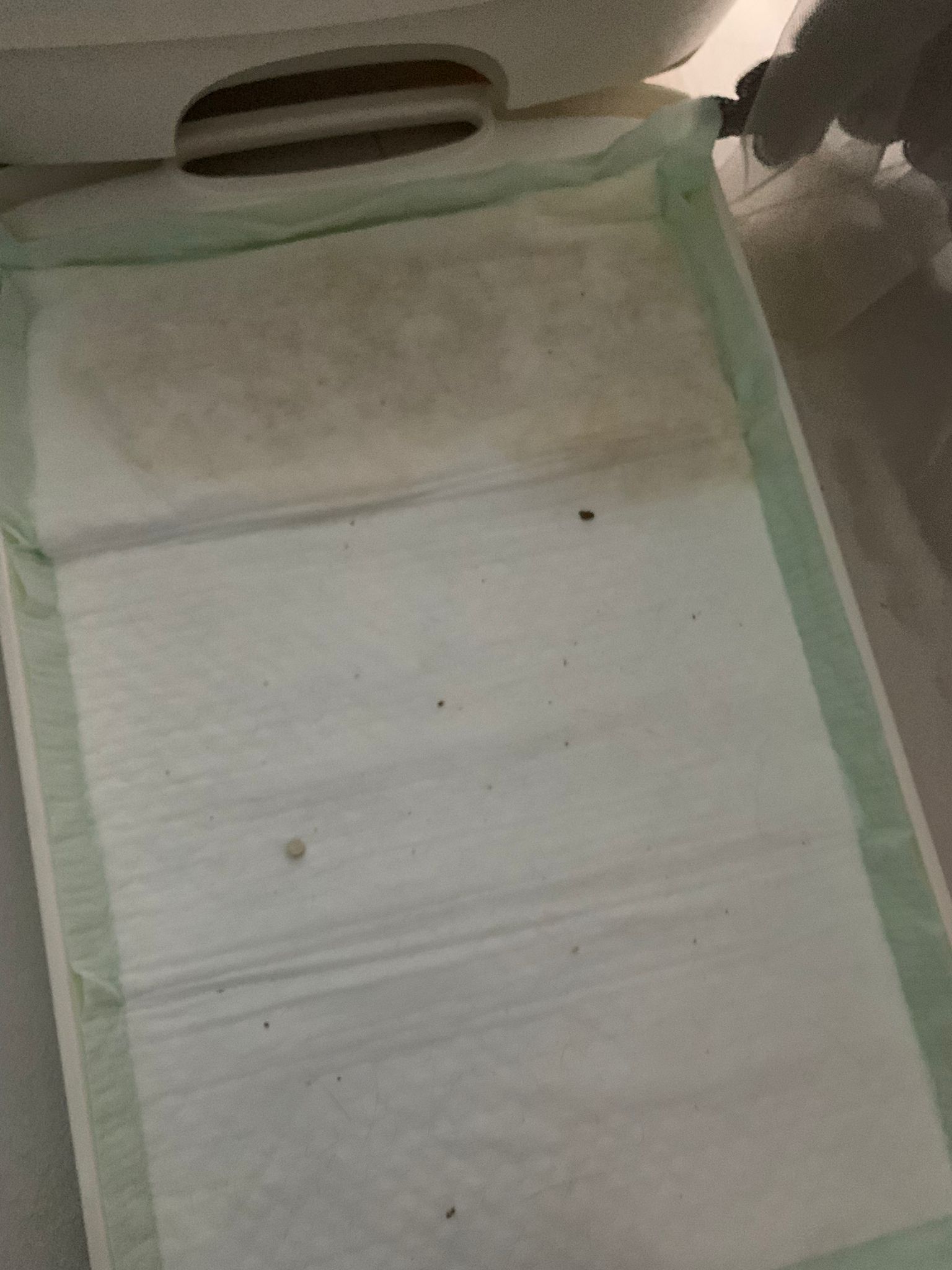 Bin: got 2 sets of poo, one powdery one, both looks dry and hard but 5/10 not hard leh.