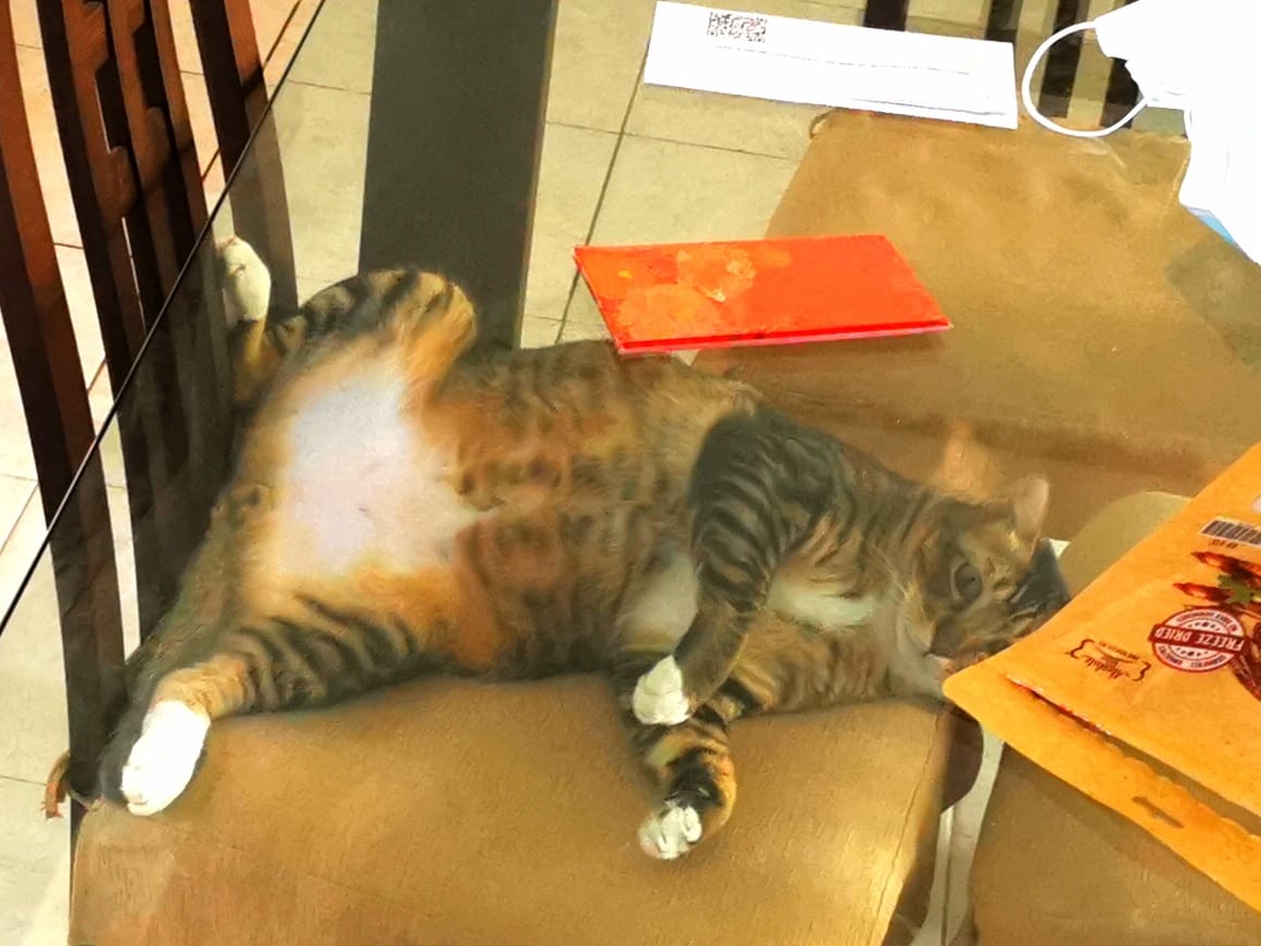 5.58pm: papa:”Hi Cat, something is wrong with Simba. I just came back from work and he didn’t chase me for dinner, he just sits at the chair and hisses when I get close. I brought the food bowl to him and he doesn’t eat. This morning he was still chasing the laser when I played with him. What should I do?” – video call n Simba just sit on chair, papa says he alr there since after lunch. so in pain? Cos think is pancreas type of pain, should be fell n in pain. tmr morning will wait for his papa confirmation whether he is getting better (sprain leg) or not better (fracture bone or other underlying reason) then I’ll go help bring him to vet. Means I can’t bring don alr. Sigh. See how