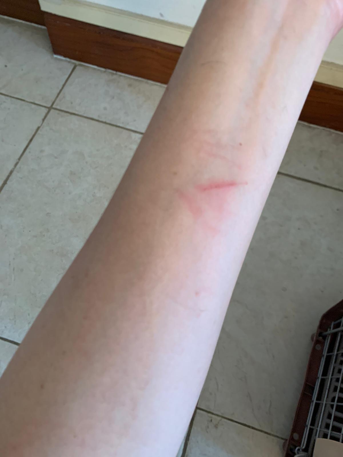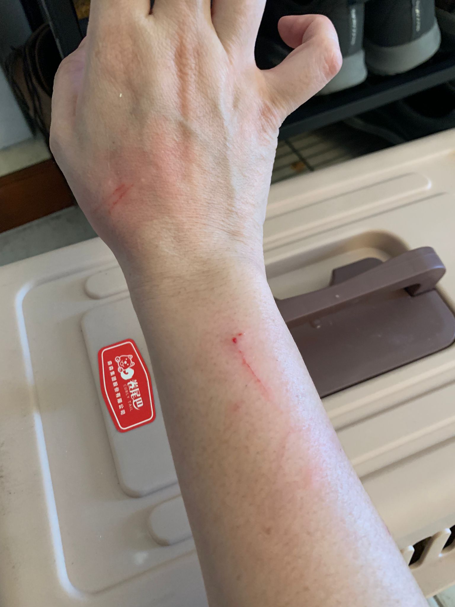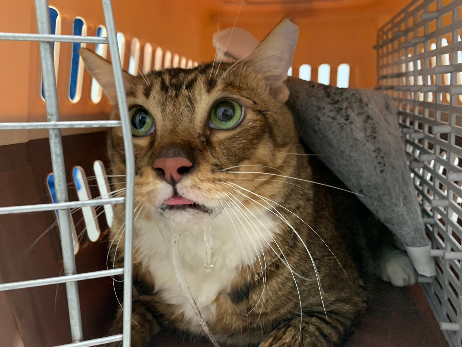 Morning: brought him to vet, his nails v long, he so scare fly about in the house hard to bring him into carrier – both my hand lots of lines. At vet, he drool a lot otw, dr Brandon clean him up, and given Cerenia jab to calm him down n make him feel better from the car ride / car sick.