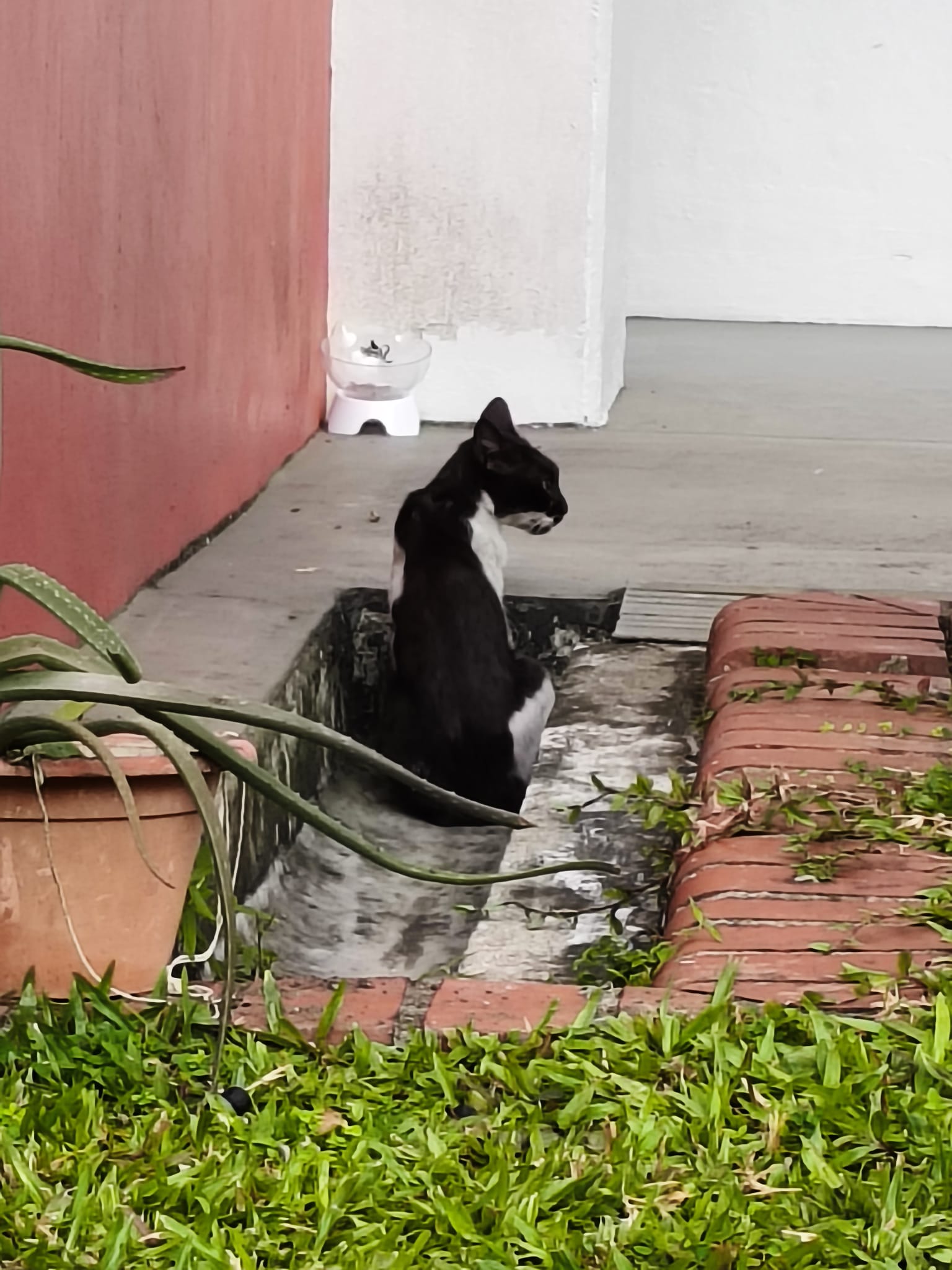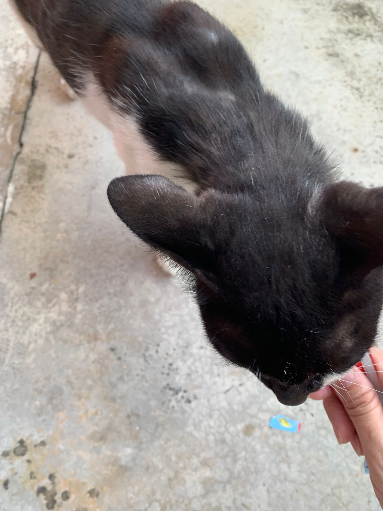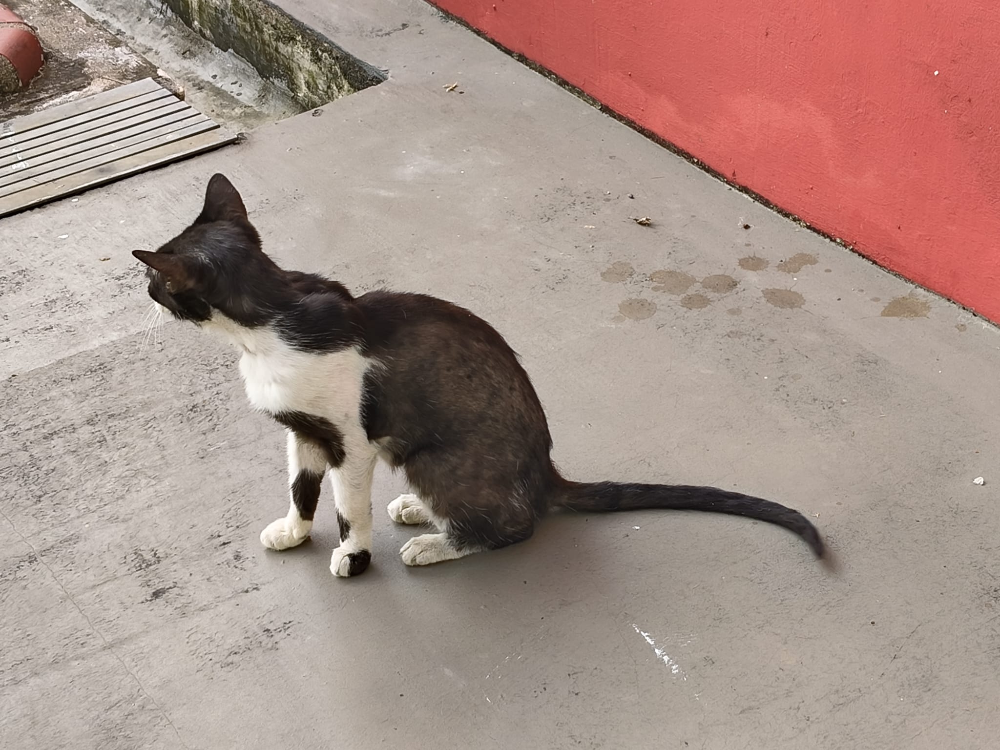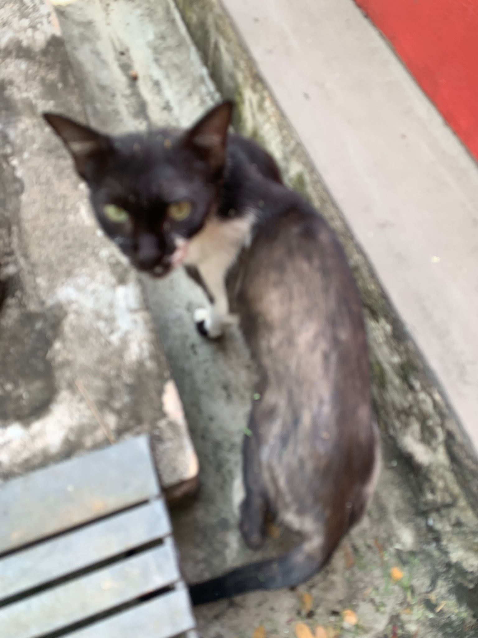 Can’t think of a name, so ask moon what name she called her: “skinny meow” so set up a page for her as this name. A cat whom I saw elyn posted b4 and i happen to see her walk out when I’m on bus. 15.7.25 is the first time I saw her face to face.