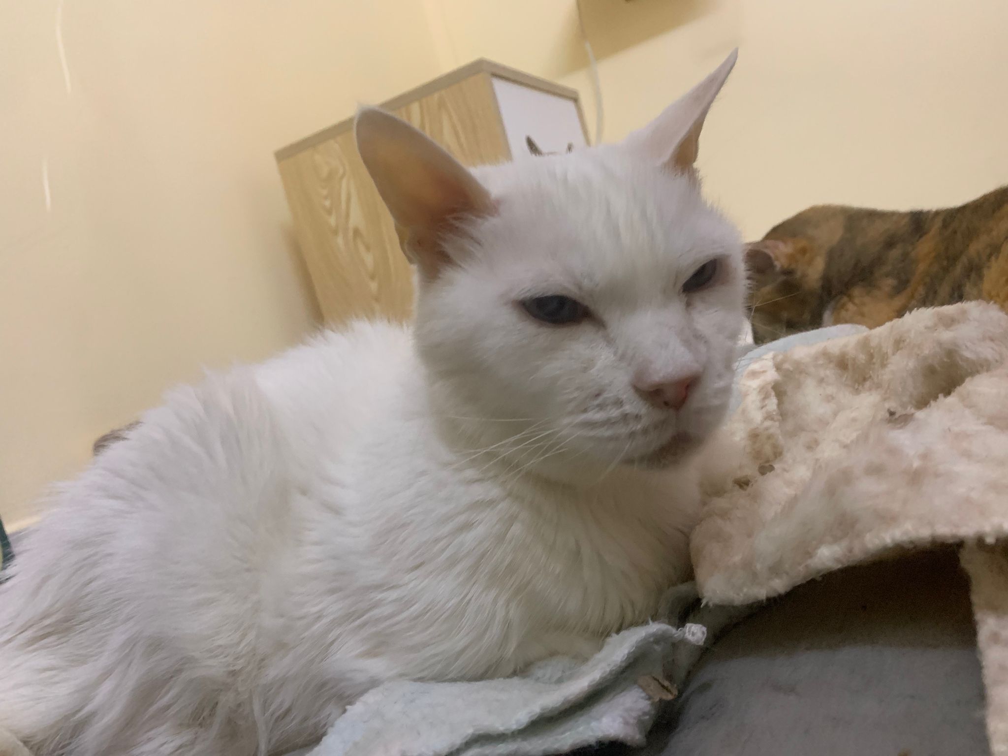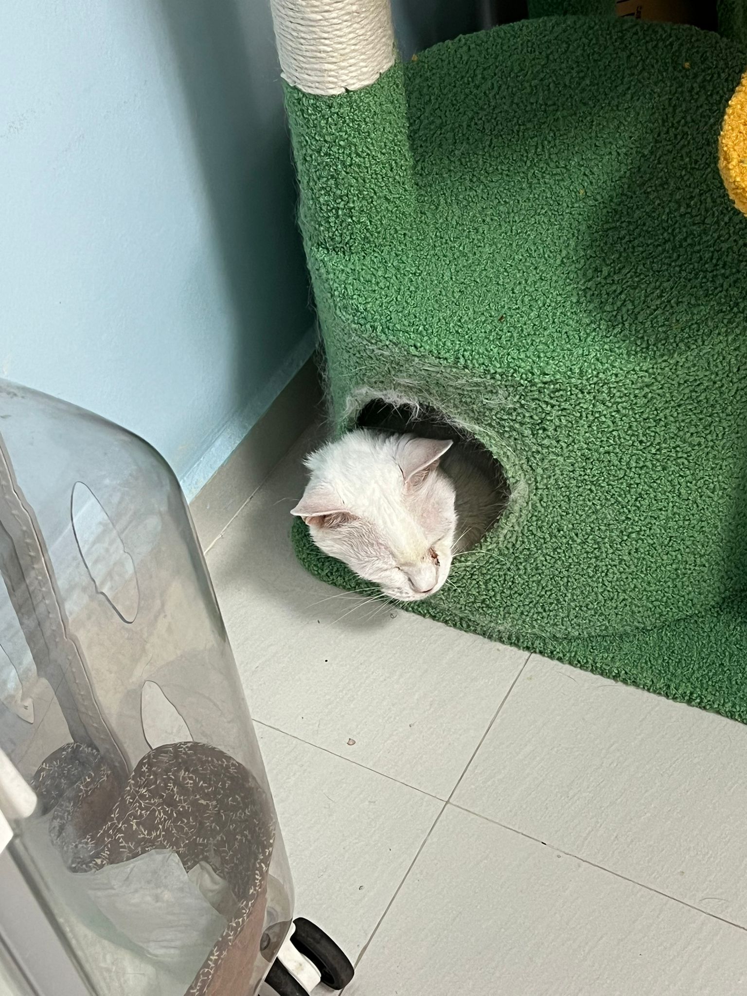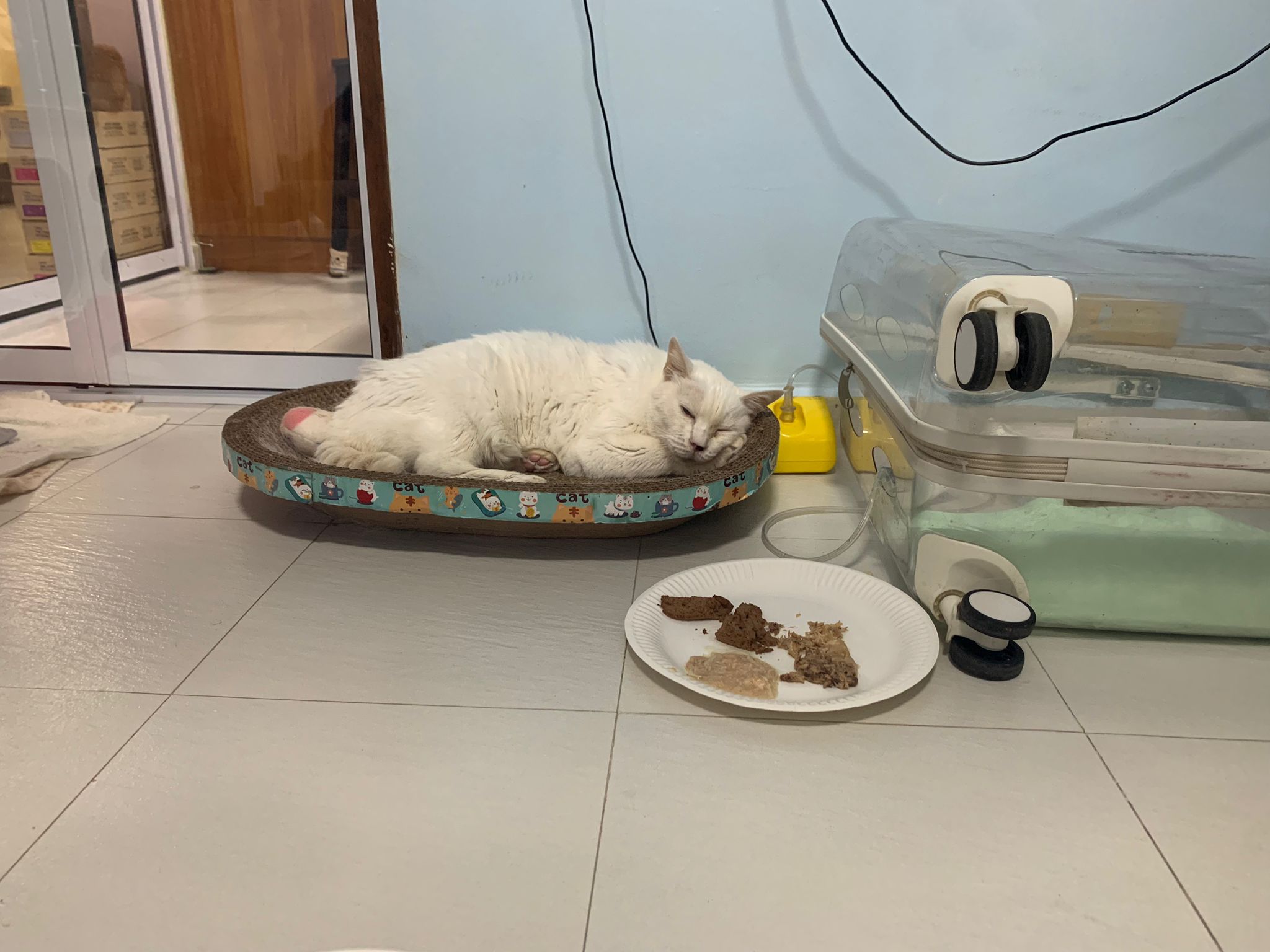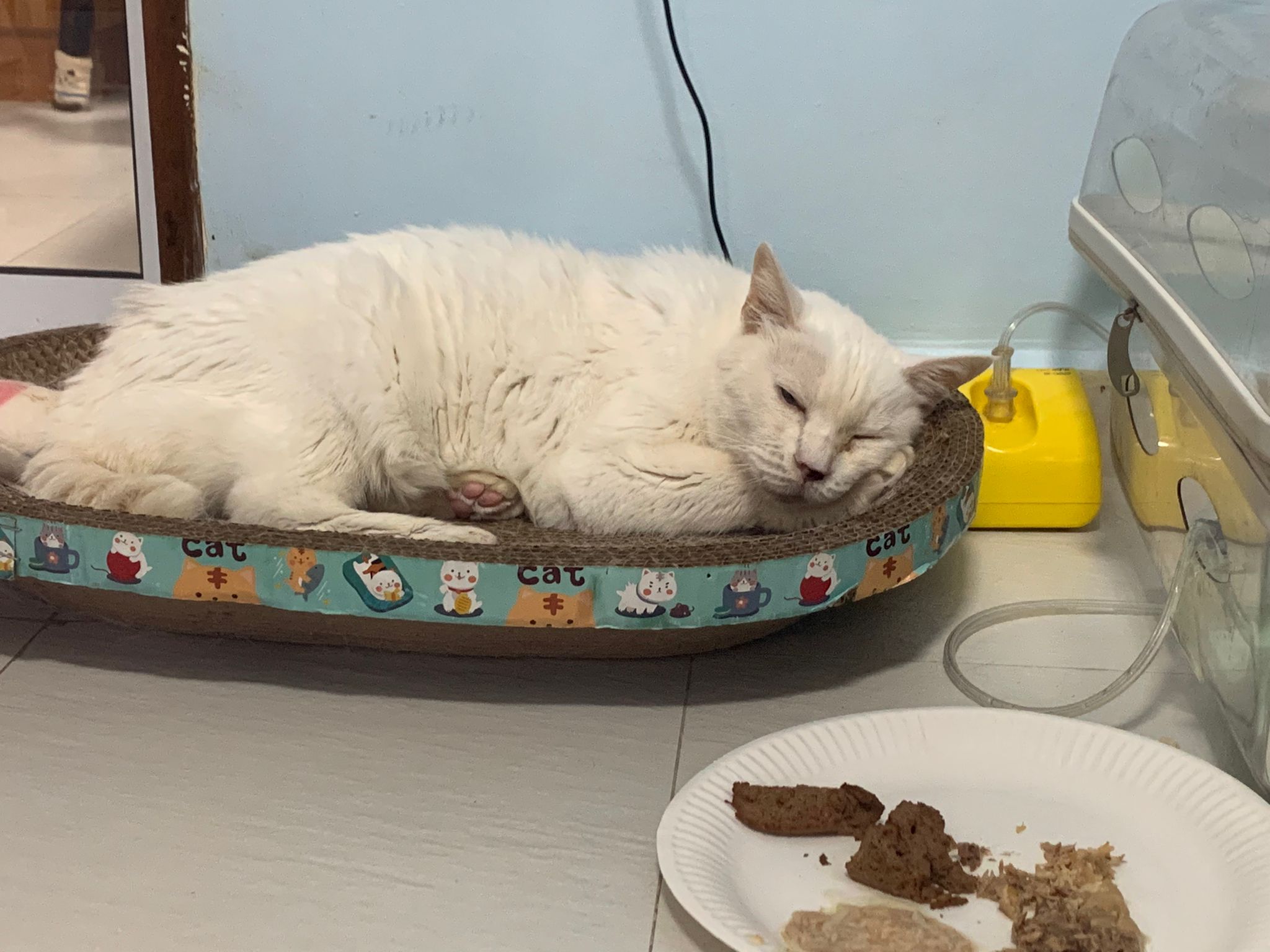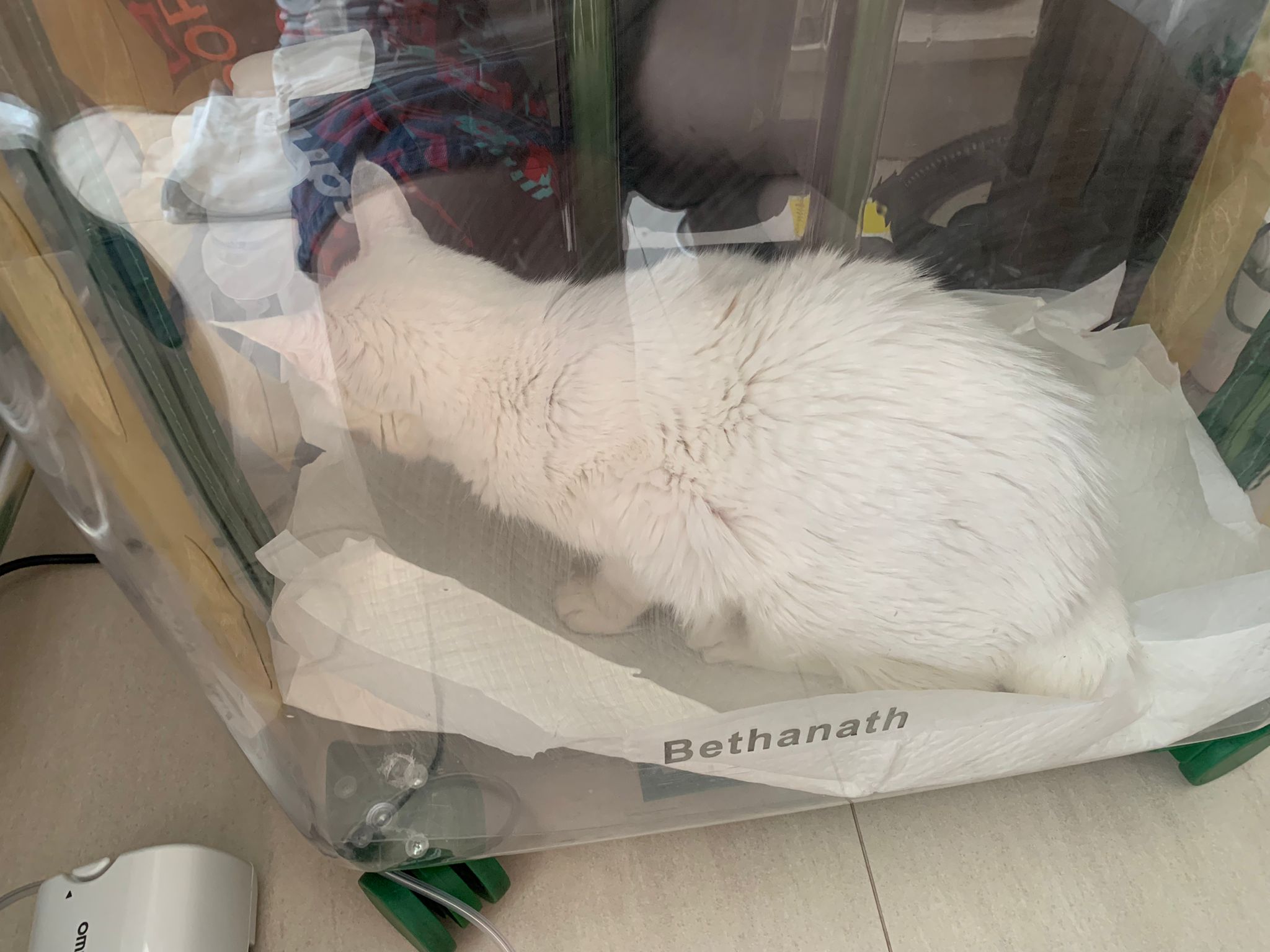 12.50pm: off nubulizing, clean her nose further. Look better. o2 remain in the room, she walk to bin again. Sayang her told her I go back to 猫房 to medicate the cats le.