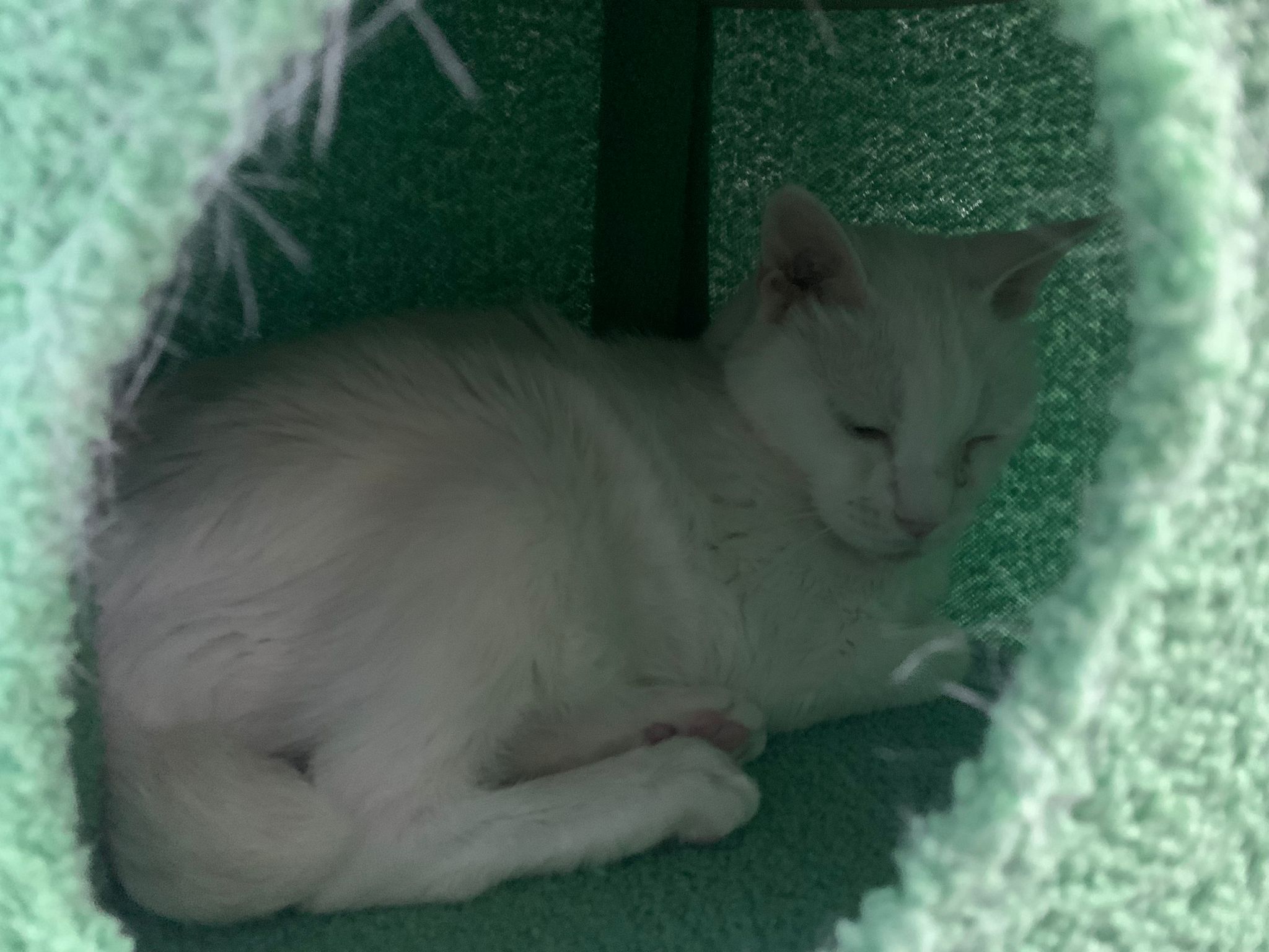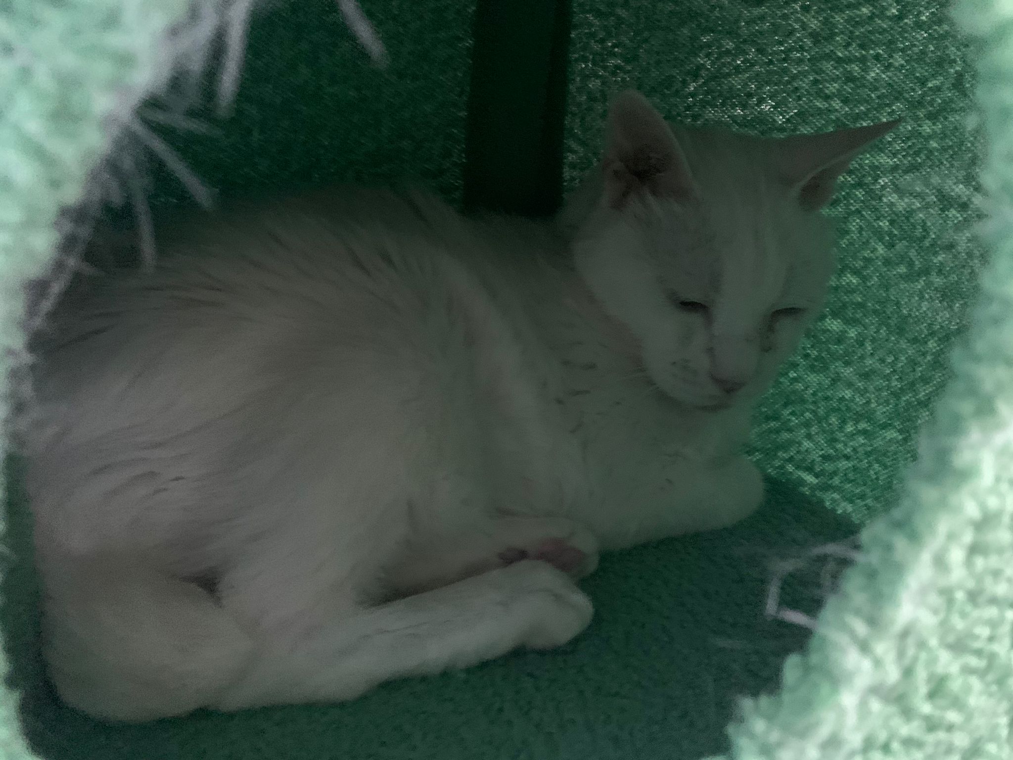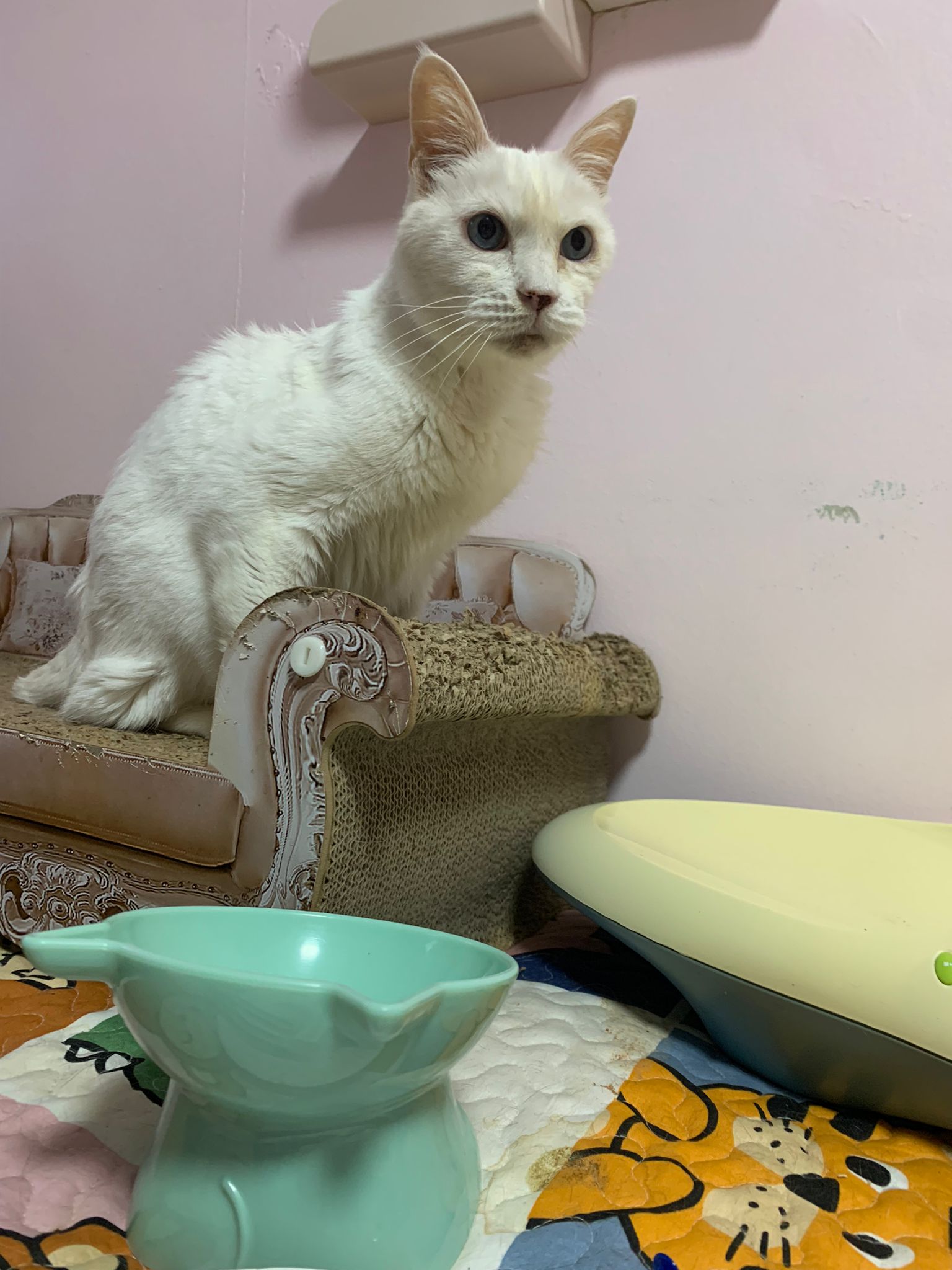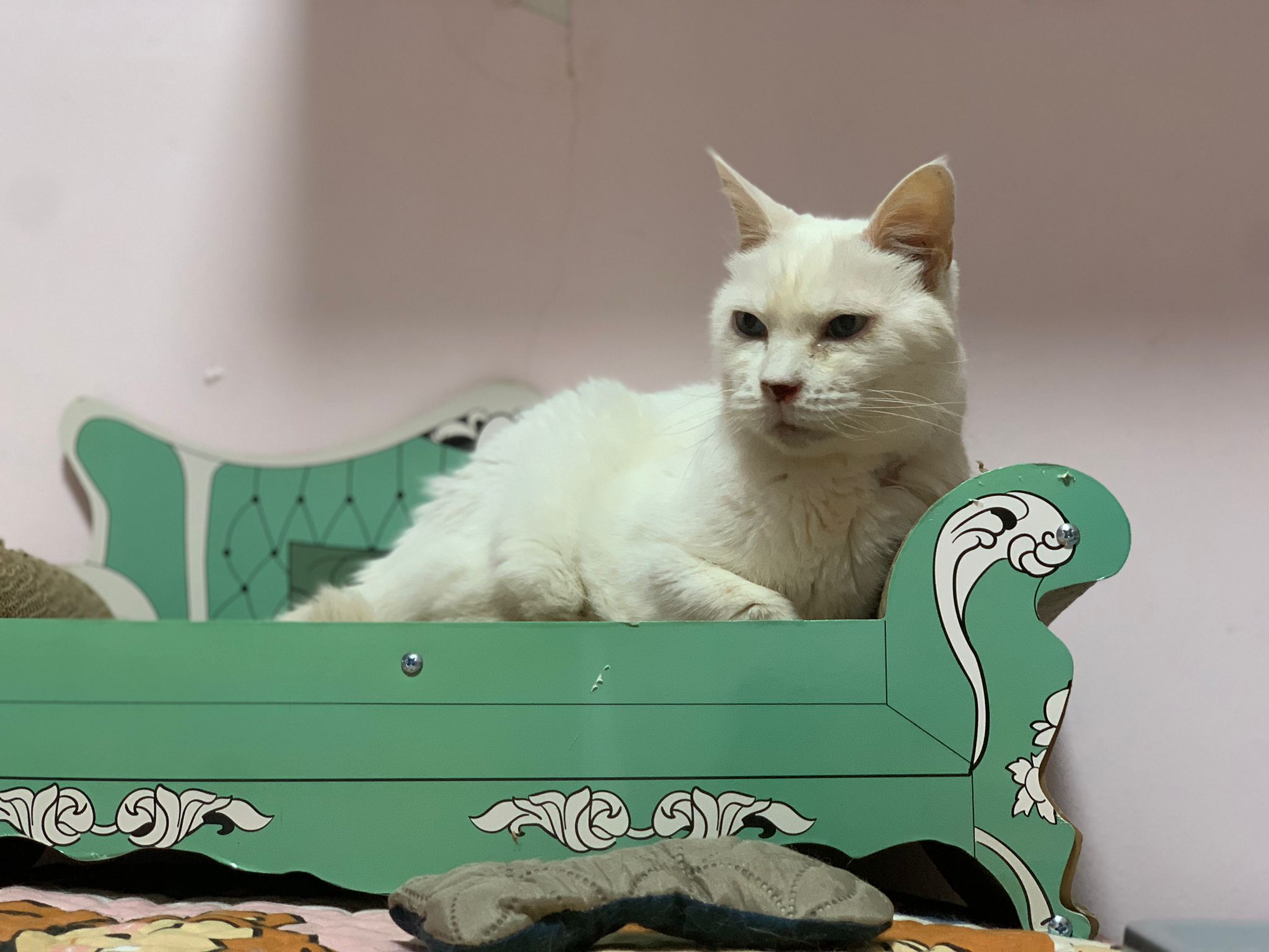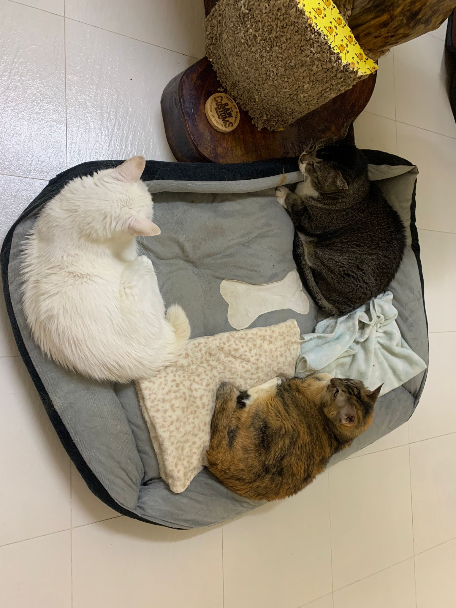 12.45pm. Go back room first time eat her salmon n indoor – oh 猫房 inside I give chicken kibble not to her liking. But I carry her to big bed she also down want. She like the old grey one that i had thrown?