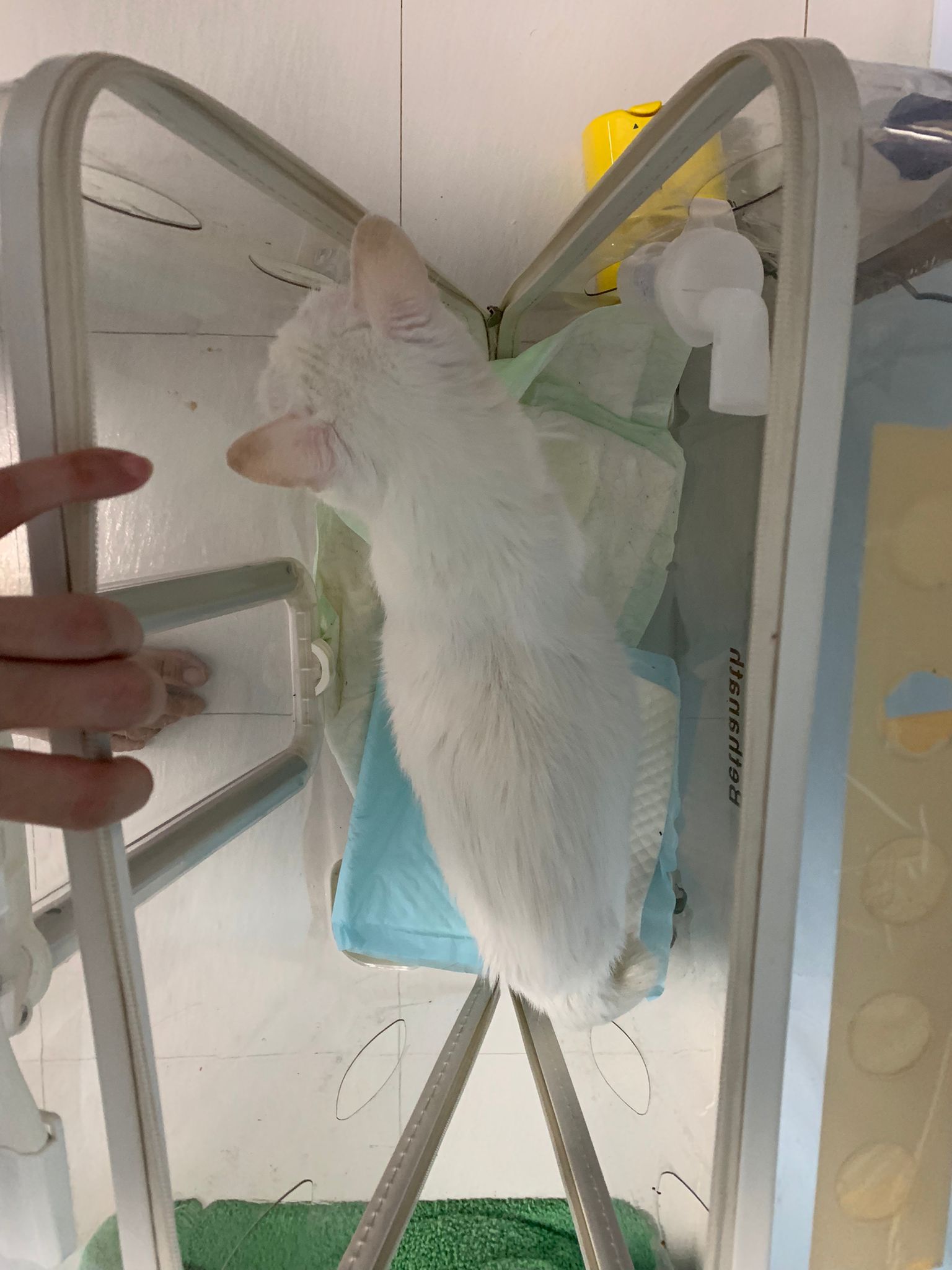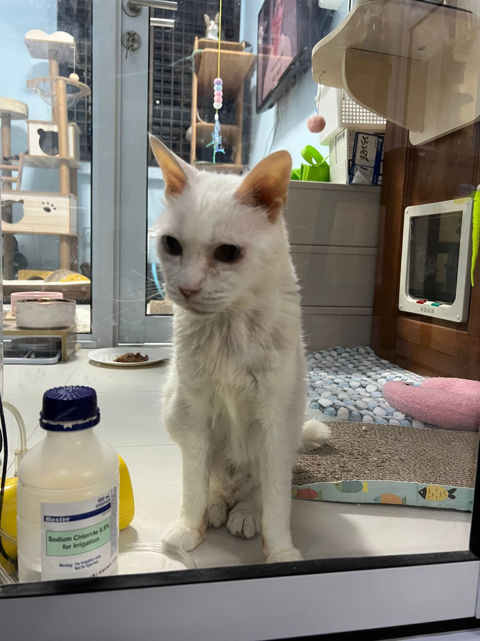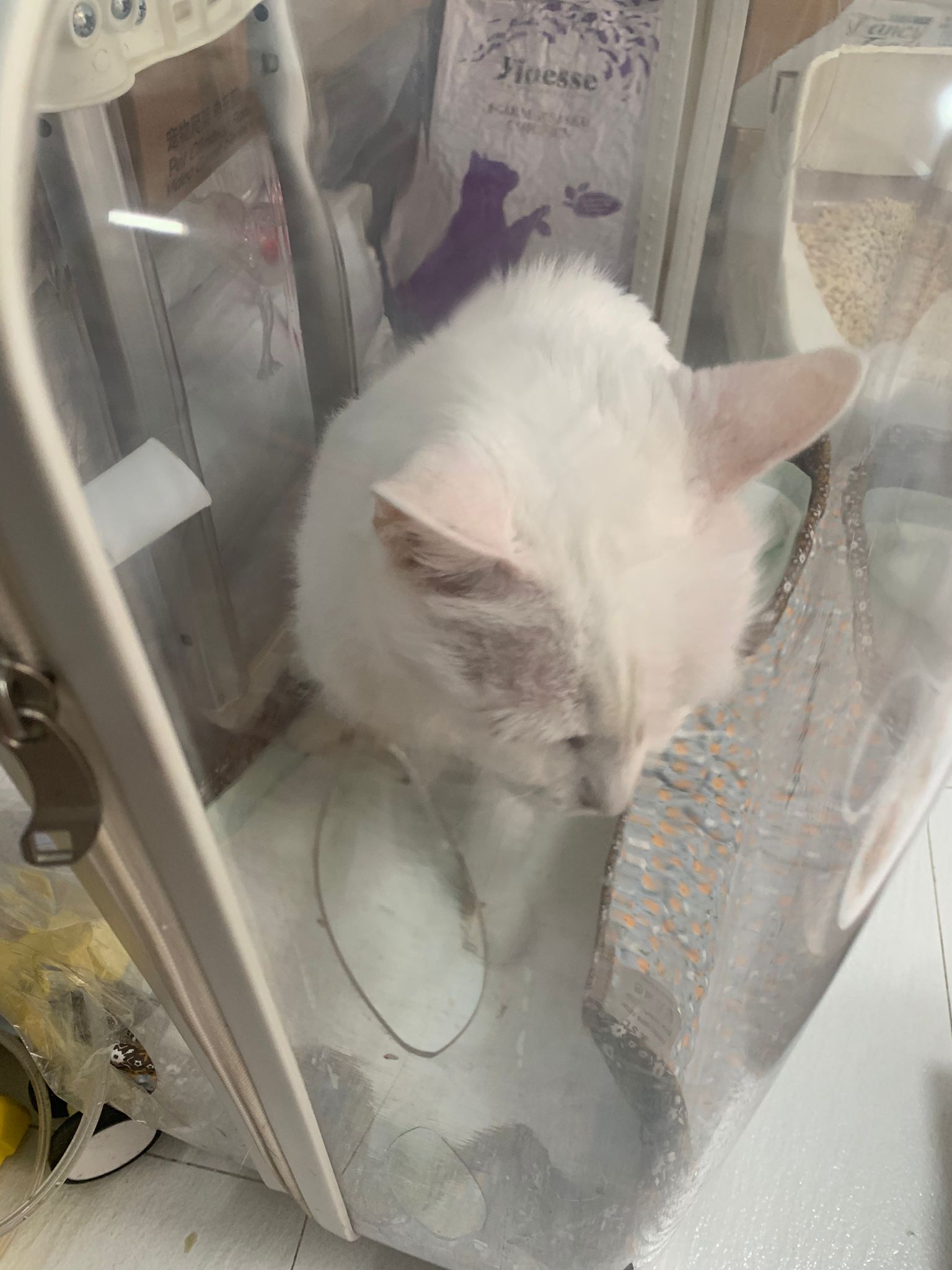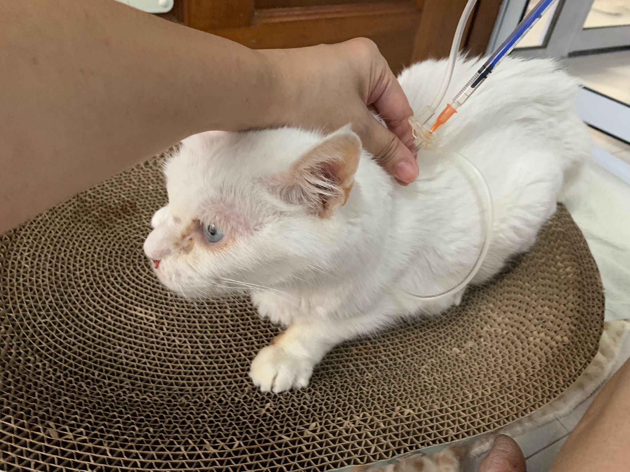 The vet put in a iv cath, so scary. Just 2 jabs time n cute baby is gone. Scary. oh ya today get to see one of the cats (like Bella Liang) and ha the 2 dogs so cute. One like to lick me so much