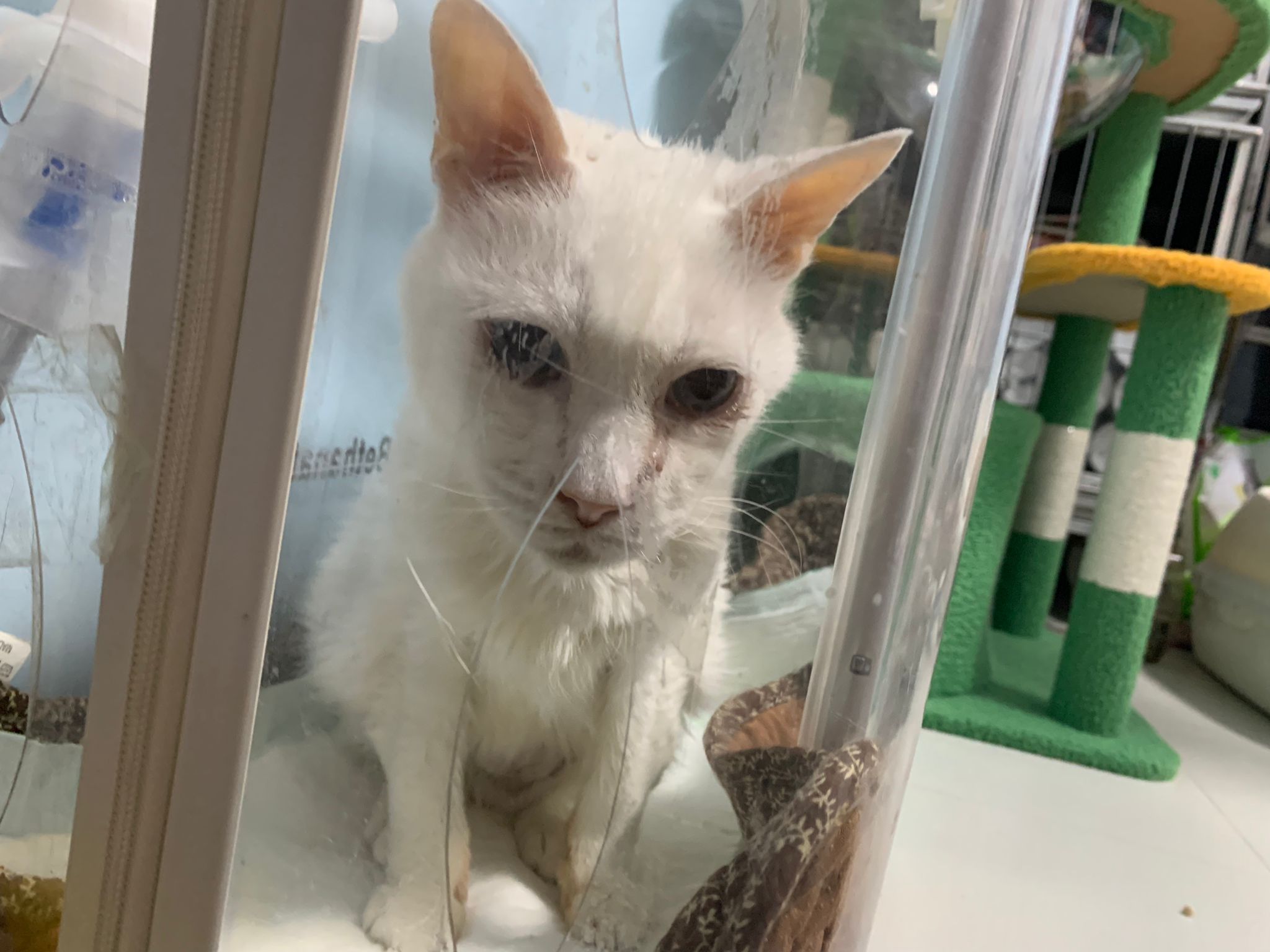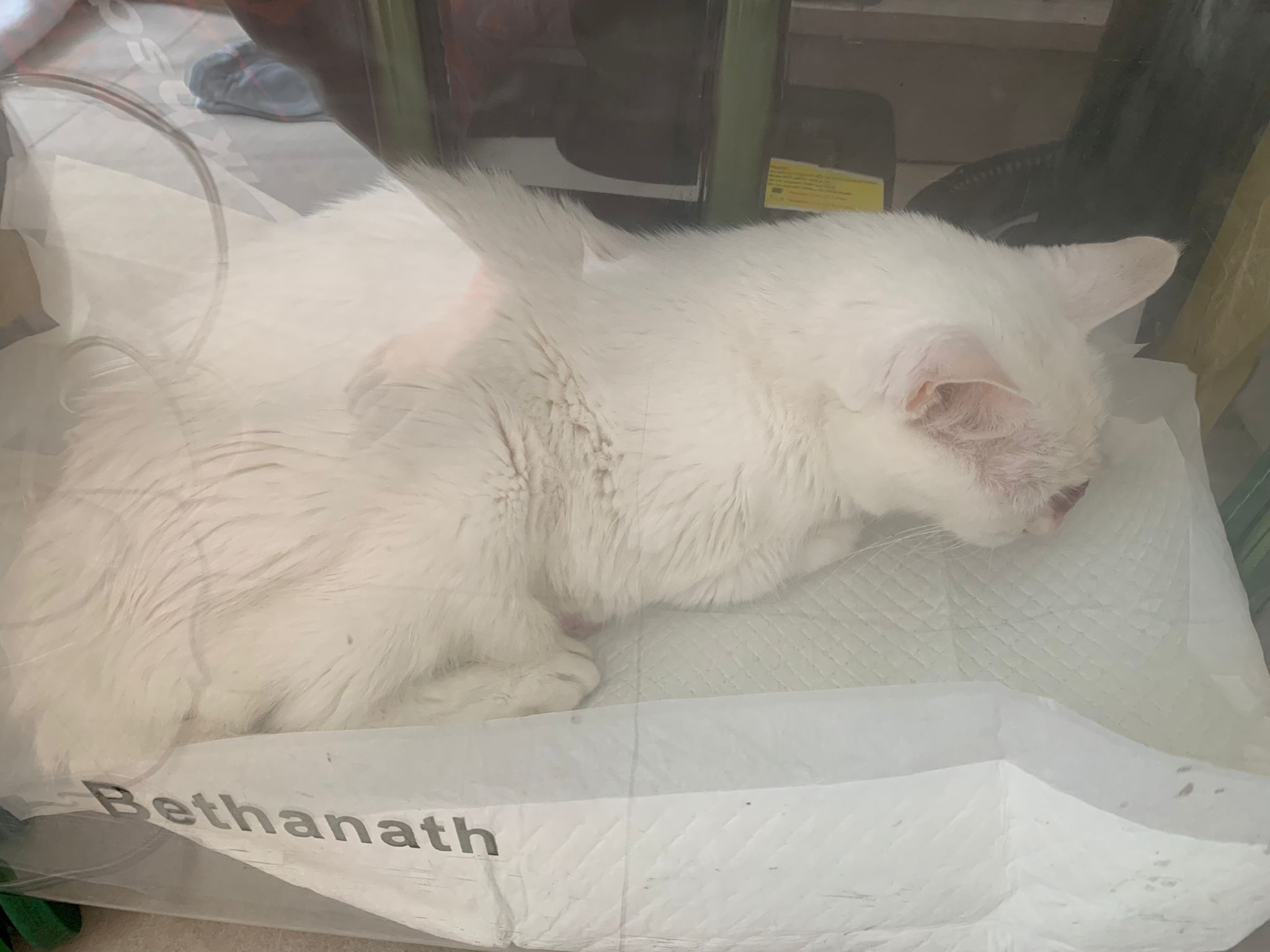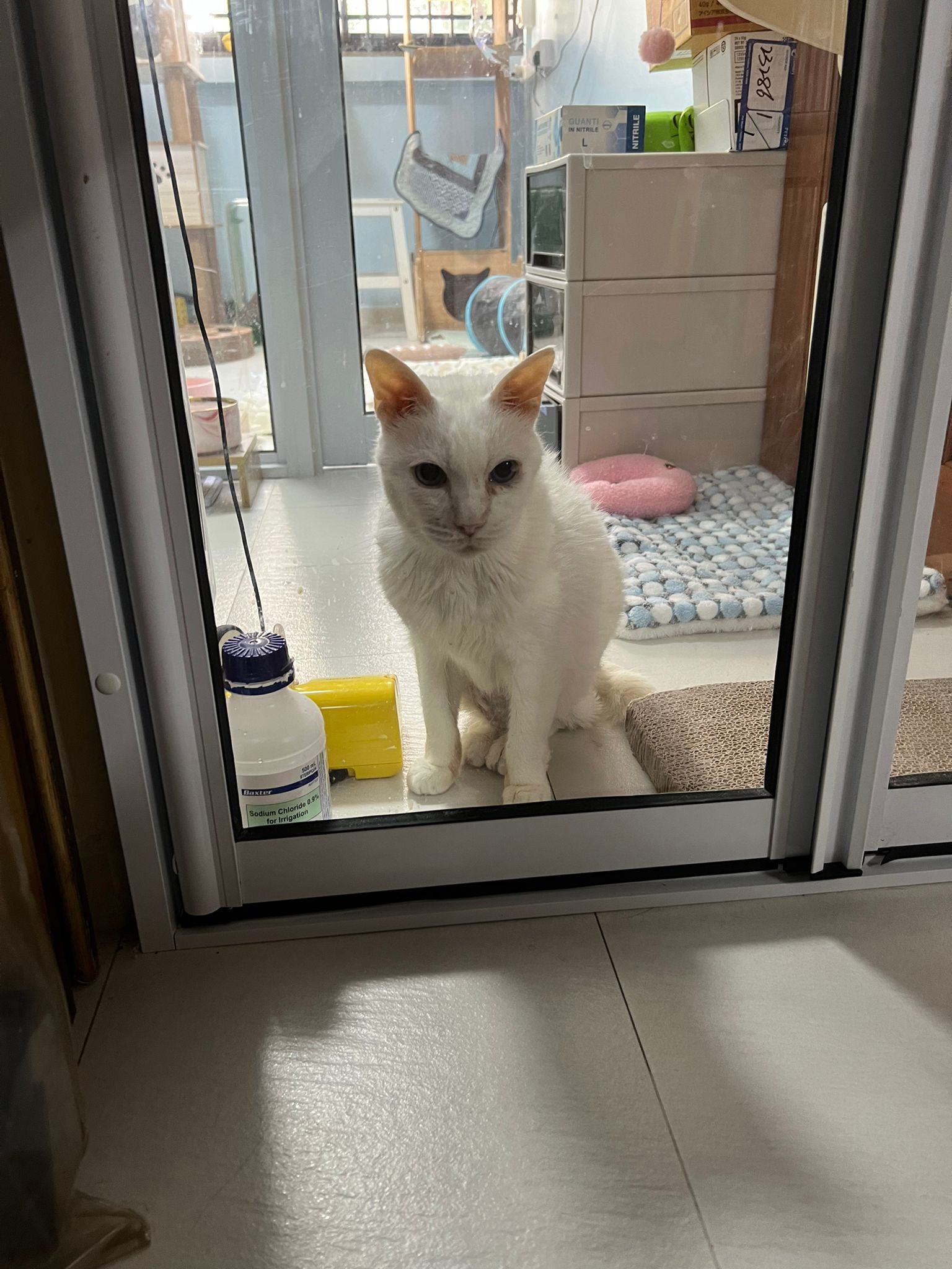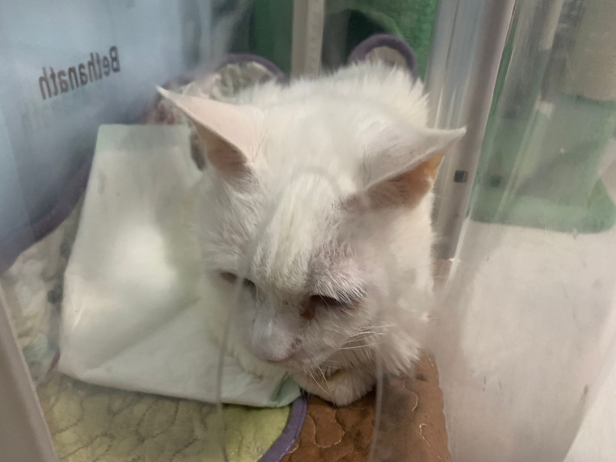 The vet put in a iv cath, so scary. Just 2 jabs time n cute baby is gone. Scary. oh ya today get to see one of the cats (like Bella Liang) and ha the 2 dogs so cute. One like to lick me so much